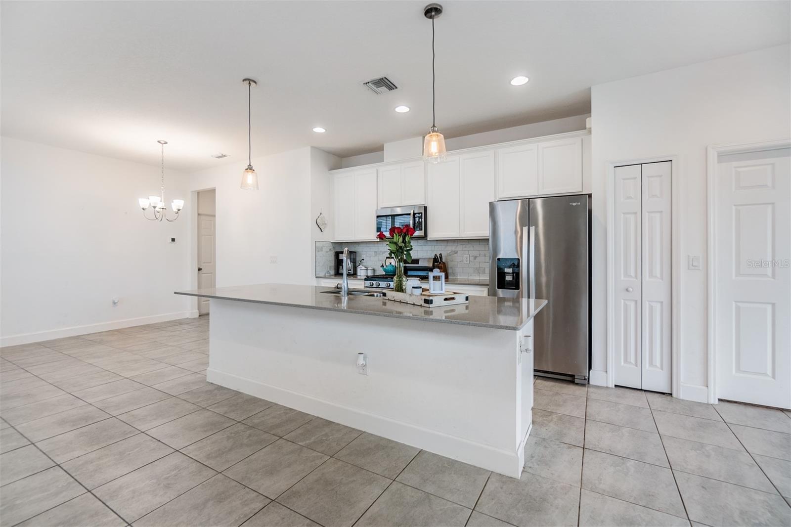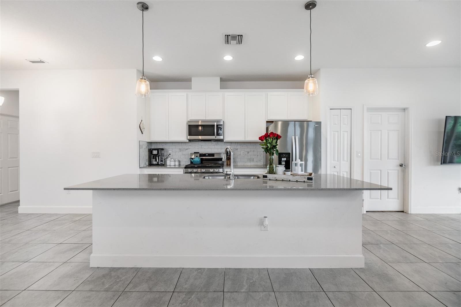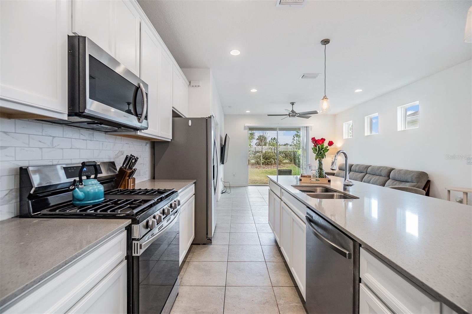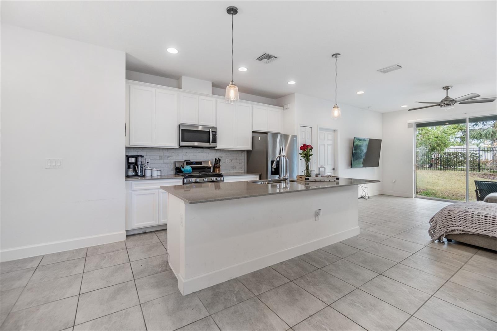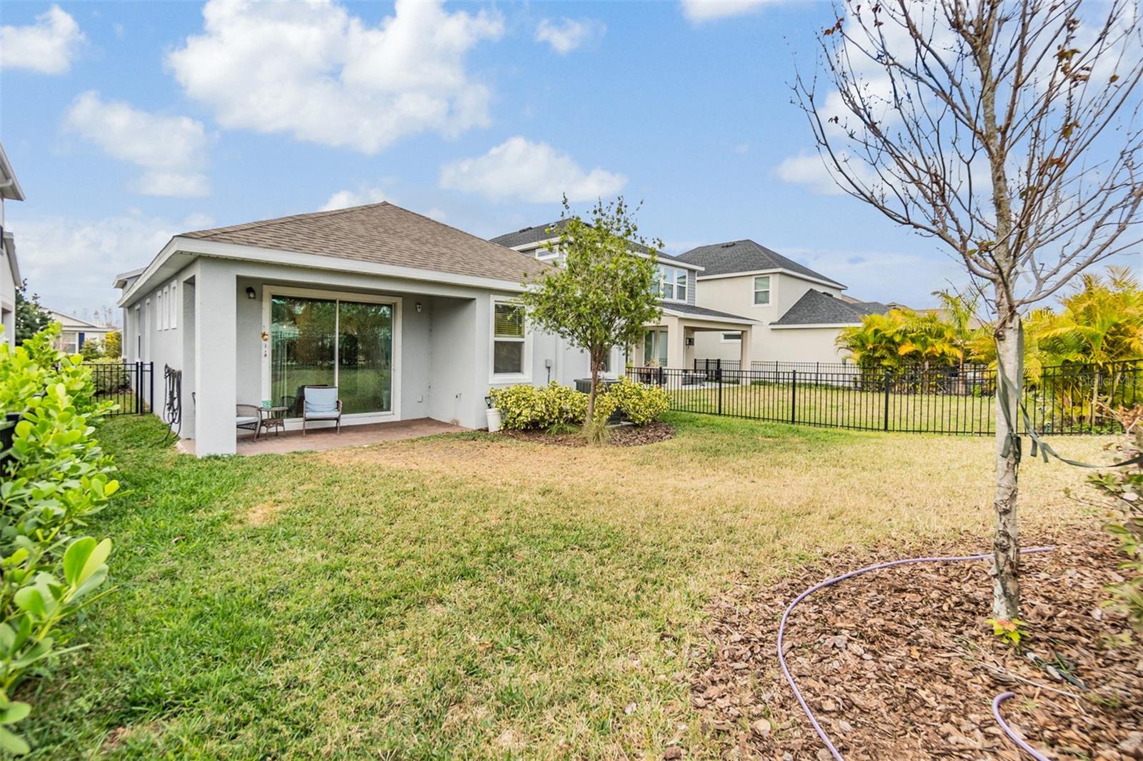 HOME SWEET HOME! WELCOME to this beautiful home in the highly sought-after Waterset Community! This home offers 3 bedrooms, 2 bathrooms, 2 car garage, fenced backyard with no back neighbors. This residence features an entertaining open concept kitchen equipped with high-end stainless-steel appliances and luxurious granite countertops, ideal for culinary enthusiasts. Upon entering, you'll be greeted by a well-designed welcoming layout that seamlessly integrates the spacious living/dining areas with a state-of-the-art kitchen. Spilt bedroom floor plan, inside laundry room and picturesque views of the landscaped private backyard. Outside, the expansive backyard includes a covered lanai, creating a picturesque outdoor retreat perfect for hosting gatherings or enjoying peaceful evenings. The property is distinguished by its exceptional amenities and unique touches, including lush landscaping that enhances its curb appeal. Waterset community offers the best of both worlds – a serene suburban atmosphere combined with convenient access to top-rated schools, fine dining, local attractions, shopping and main highways. MUST SEE! Schedule a showing TODAY!