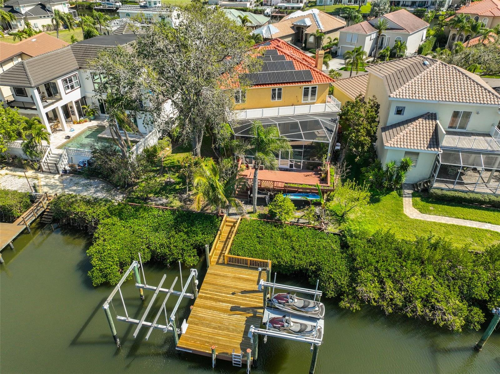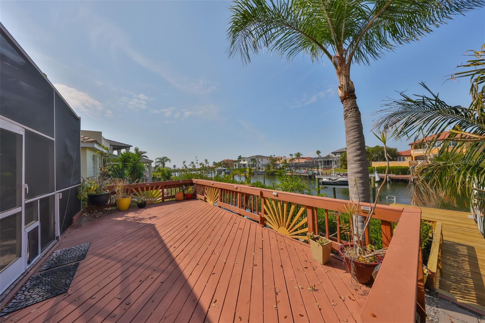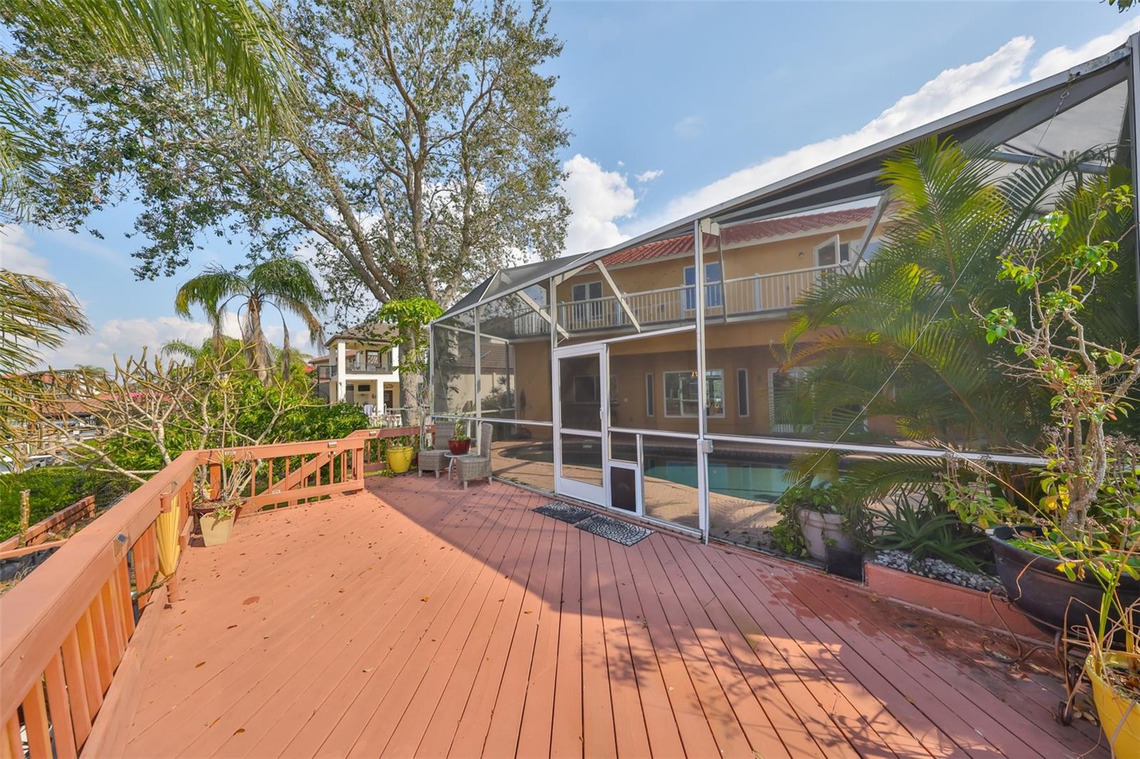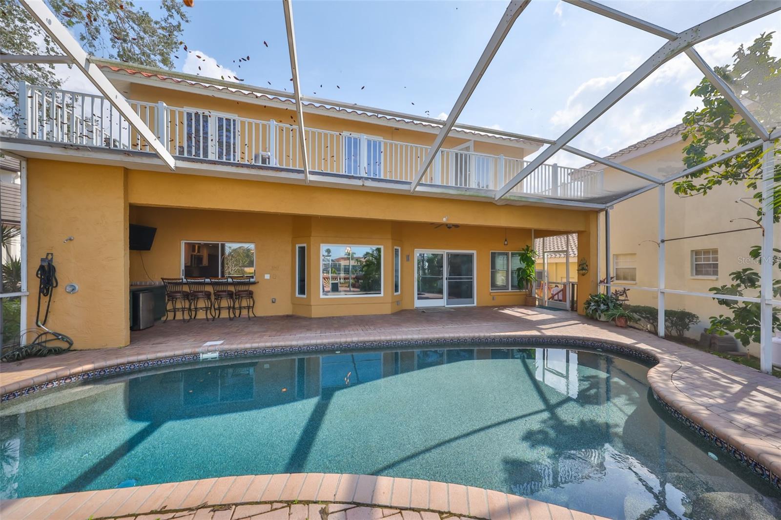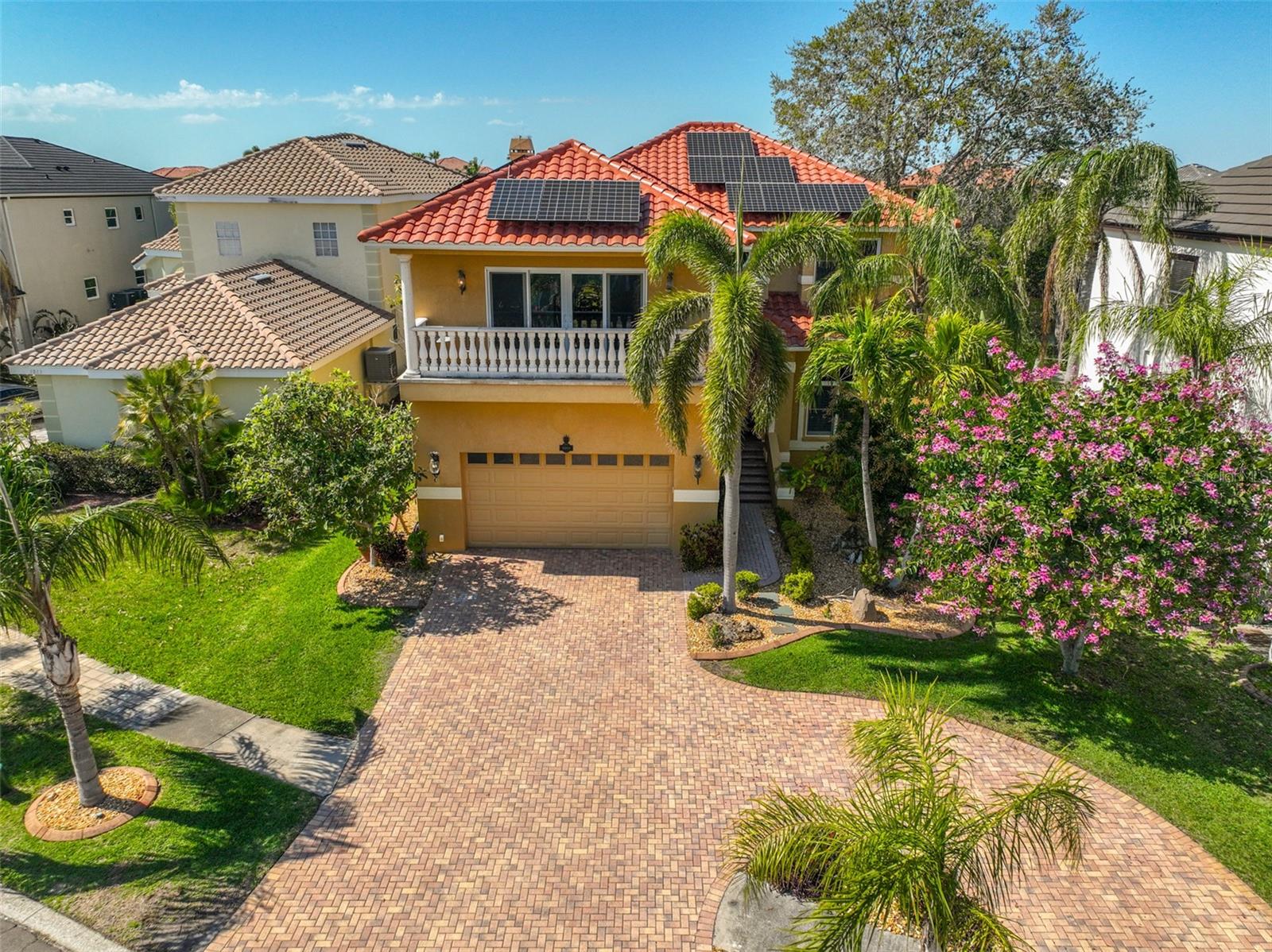 Discover your perfect oasis in the prestigious gated community of Symphony Isles! This gorgeous 5 bedrooms, 3 baths waterfront property features a brand new roof and a newly constructed wood dock, setting the stage for an idyllic lifestyle. As you approach, you'll be captivated by the circular paver driveway and lush landscaping that enhances the home's impressive curb appeal. Step through the elegant glass and wood double doors and be welcomed by a stunning iron spindle staircase, leading you into spacious formal living and dining areas. The expansive family room, complete with a cozy wood-burning fireplace and rich hand-scraped wood floors, is perfect for gatherings. The open-concept kitchen is a chef's delight, showcasing white cabinetry with pull-out drawers, stainless steel appliances, and an exquisite granite countertop. Enjoy casual meals at the breakfast bar or utilize the large pantry for all your culinary needs. Sliding glass doors provide seamless access to the beautiful salt-chlorinated pool and deck, making it easy to enjoy sunny days outdoors. The luxurious master suite boasts two generous walk-in California closets and a spa-like bathroom featuring a jetted tub, a marble-tiled shower, dual sinks, and a private balcony that offers breathtaking views of the bay. An additional bonus room over the garage includes custom cabinetry, a wet bar, and space for a pool table, perfect for entertaining! This home is equipped with upgraded Anderson double-pane windows, crown molding in formal areas, and stylish lighting throughout. Additional features include an electric car charger, ample garage storage, two laundry rooms (one upstairs and one downstairs), and energy-efficient tankless water heaters. The downstairs guest suite provides convenient pool bath access, while outdoor amenities include a large wood deck for gatherings, two boat lifts (14,000 lbs and 10,000 lbs), and plenty of side yard space for your furry friends. Enjoy the benefits of an irrigation system fed by a well, along with a variety of fruit trees including mango, banana, avocado, lychee, peach, and orange. With solar panels, you'll save significantly on energy costs! Residents of Symphony Isles enjoy 24-hour manned security, a private beach, community pool, volleyball court, clubhouse for events, and numerous social activities, all just minutes from the bay. Don't miss out on the best boating experiences this community has to offer! Schedule your tour today!