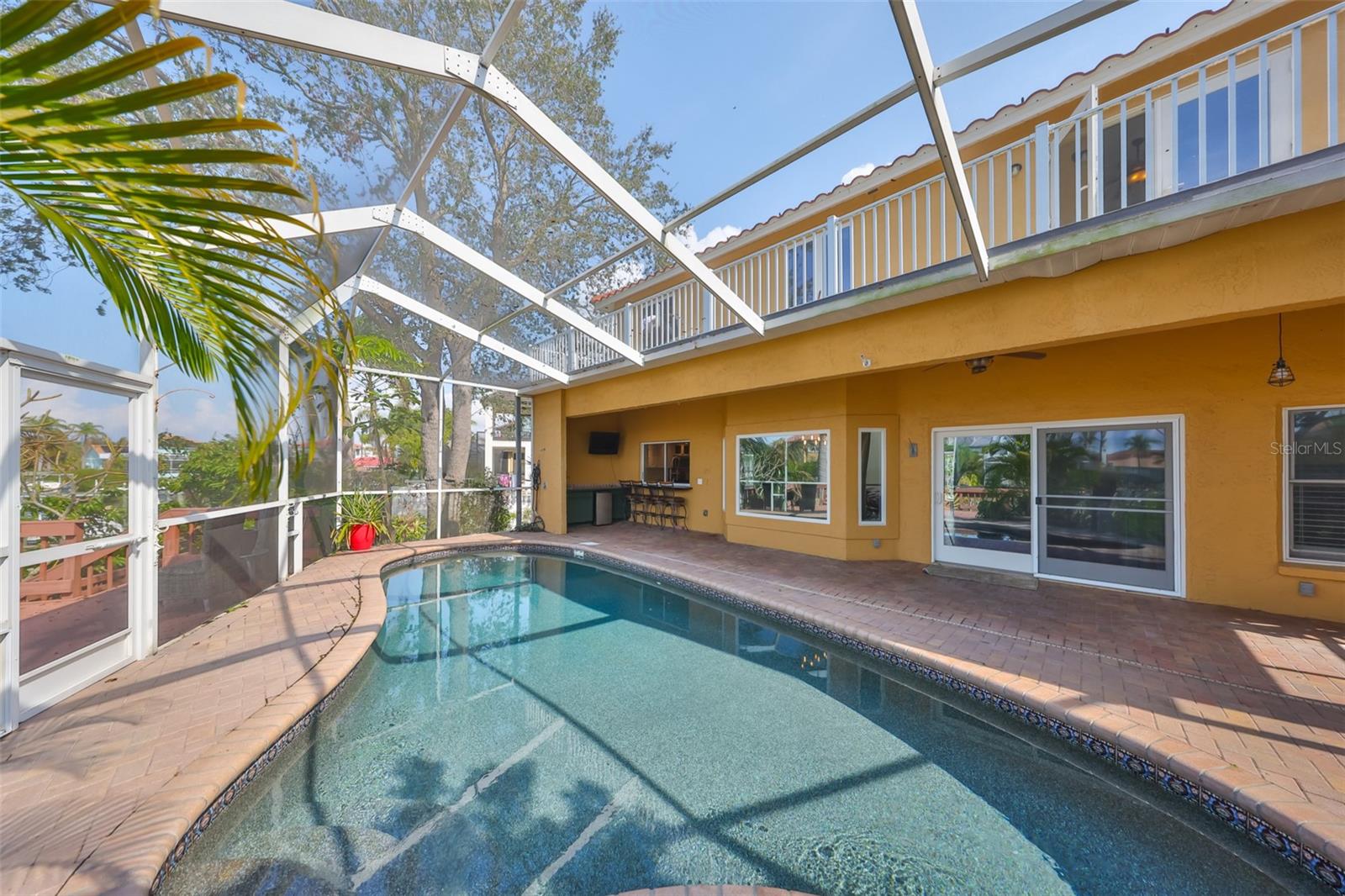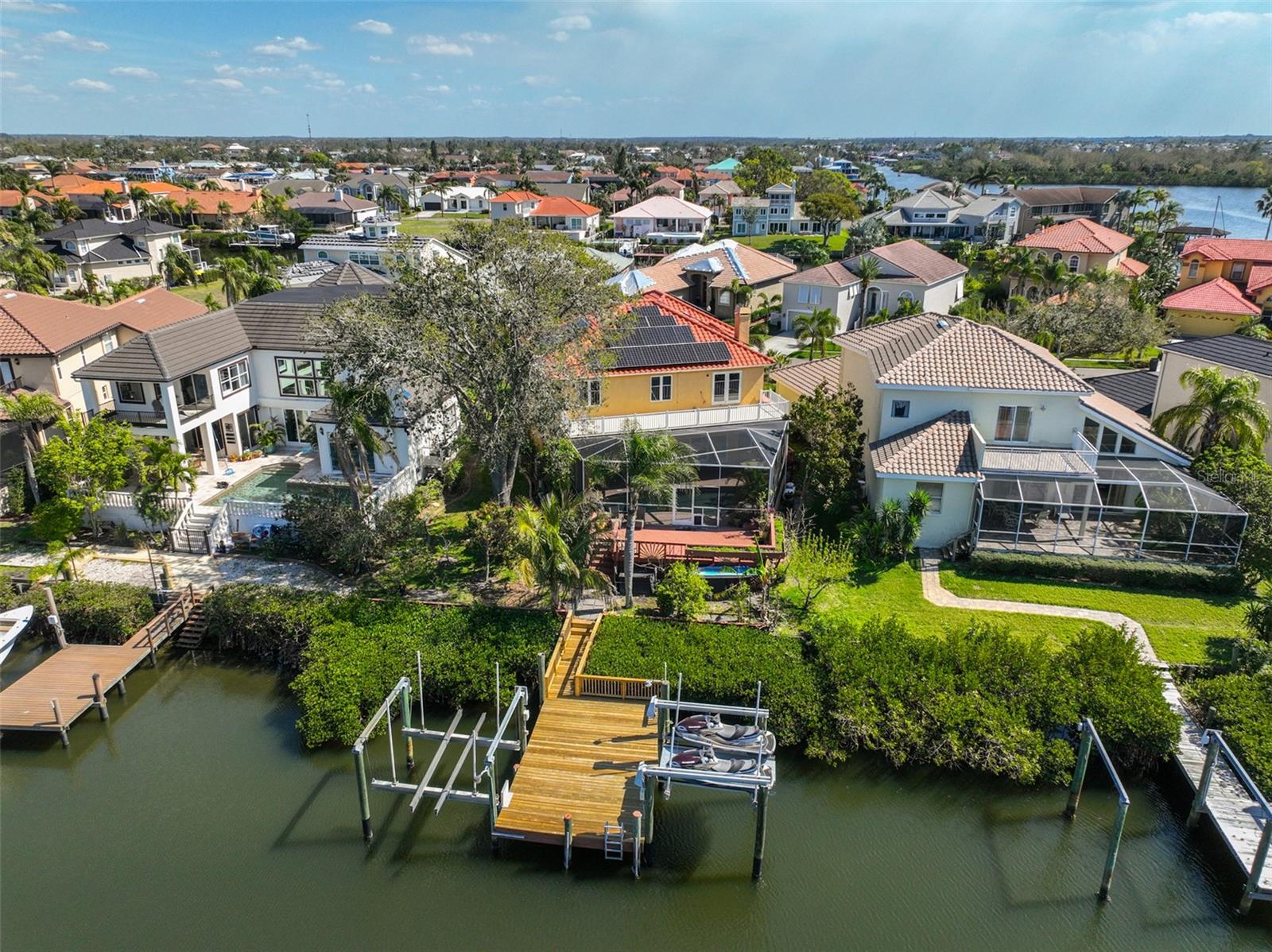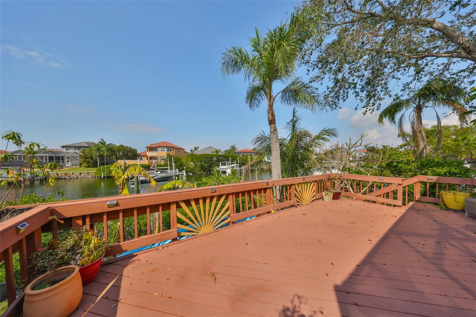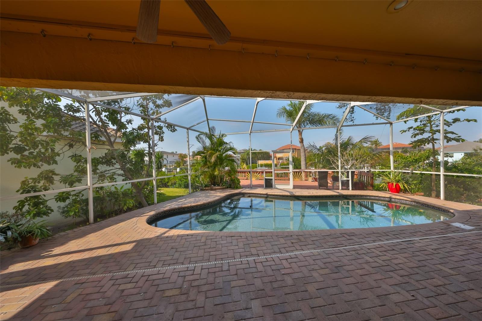 Discover your perfect oasis in the prestigious gated community of Symphony Isles! This gorgeous 5 bedrooms, 3 baths waterfront property features a brand new roof and a newly constructed wood dock, setting the stage for an idyllic lifestyle. As you approach, you'll be captivated by the circular paver driveway and lush landscaping that enhances the home's impressive curb appeal. Step through the elegant glass and wood double doors and be welcomed by a stunning iron spindle staircase, leading you into spacious formal living and dining areas. The expansive family room, complete with a cozy wood-burning fireplace and rich hand-scraped wood floors, is perfect for gatherings. The open-concept kitchen is a chef's delight, showcasing white cabinetry with pull-out drawers, stainless steel appliances, and an exquisite granite countertop. Enjoy casual meals at the breakfast bar or utilize the large pantry for all your culinary needs. Sliding glass doors provide seamless access to the beautiful salt-chlorinated pool and deck, making it easy to enjoy sunny days outdoors. The luxurious master suite boasts two generous walk-in California closets and a spa-like bathroom featuring a jetted tub, a marble-tiled shower, dual sinks, and a private balcony that offers breathtaking views of the bay. An additional bonus room over the garage includes custom cabinetry, a wet bar, and space for a pool table, perfect for entertaining! This home is equipped with upgraded Anderson double-pane windows, crown molding in formal areas, and stylish lighting throughout. Additional features include an electric car charger, ample garage storage, two laundry rooms (one upstairs and one downstairs), and energy-efficient tankless water heaters. The downstairs guest suite provides convenient pool bath access, while outdoor amenities include a large wood deck for gatherings, two boat lifts (14,000 lbs and 10,000 lbs), and plenty of side yard space for your furry friends. Enjoy the benefits of an irrigation system fed by a well, along with a variety of fruit trees including mango, banana, avocado, lychee, peach, and orange. With solar panels, you'll save significantly on energy costs! Residents of Symphony Isles enjoy 24-hour manned security, a private beach, community pool, volleyball court, clubhouse for events, and numerous social activities, all just minutes from the bay. Don't miss out on the best boating experiences this community has to offer! Schedule your tour today!