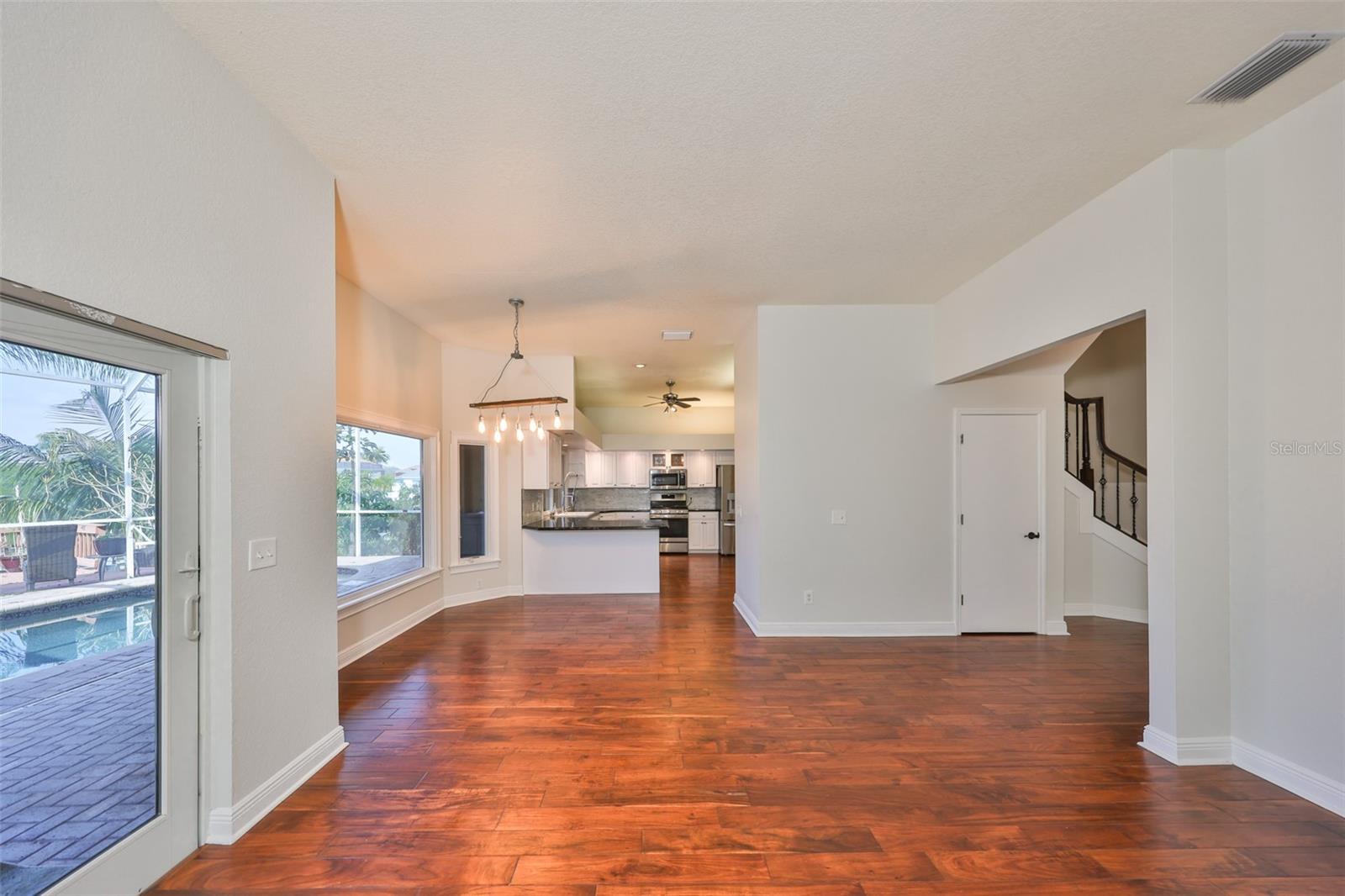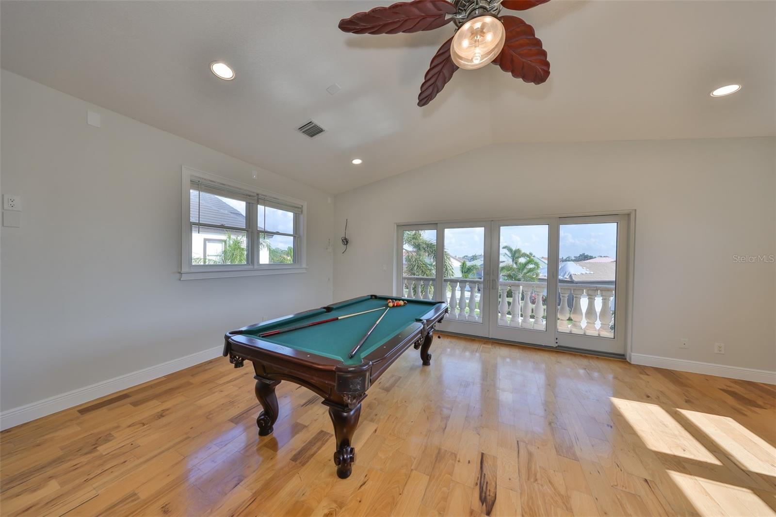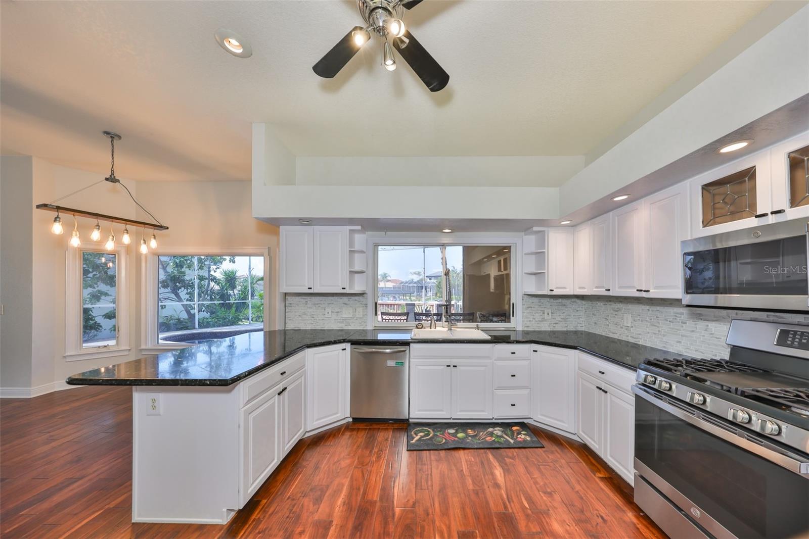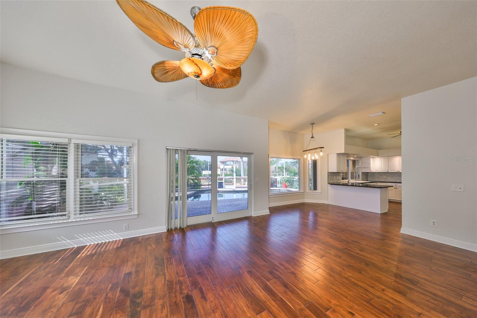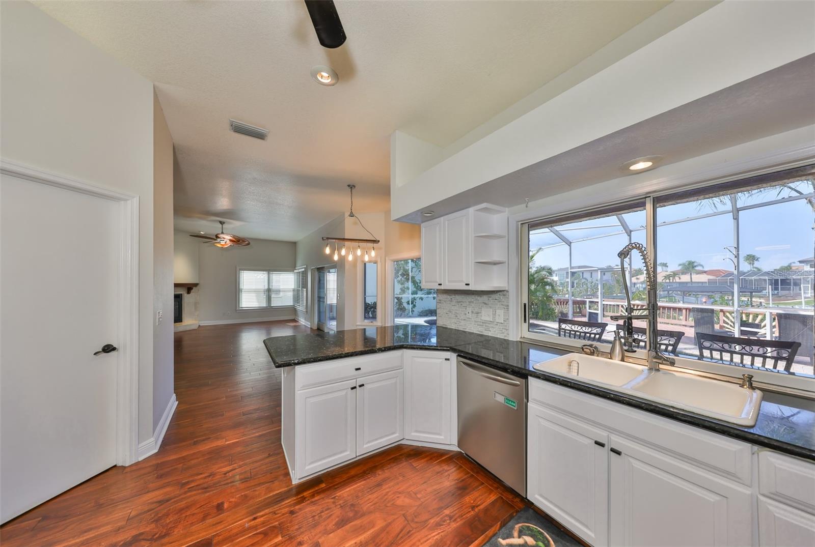 Discover your perfect oasis in the prestigious gated community of Symphony Isles! This gorgeous 5 bedrooms, 3 baths waterfront property features a brand new roof and a newly constructed wood dock, setting the stage for an idyllic lifestyle. As you approach, you'll be captivated by the circular paver driveway and lush landscaping that enhances the home's impressive curb appeal. Step through the elegant glass and wood double doors and be welcomed by a stunning iron spindle staircase, leading you into spacious formal living and dining areas. The expansive family room, complete with a cozy wood-burning fireplace and rich hand-scraped wood floors, is perfect for gatherings. The open-concept kitchen is a chef's delight, showcasing white cabinetry with pull-out drawers, stainless steel appliances, and an exquisite granite countertop. Enjoy casual meals at the breakfast bar or utilize the large pantry for all your culinary needs. Sliding glass doors provide seamless access to the beautiful salt-chlorinated pool and deck, making it easy to enjoy sunny days outdoors. The luxurious master suite boasts two generous walk-in California closets and a spa-like bathroom featuring a jetted tub, a marble-tiled shower, dual sinks, and a private balcony that offers breathtaking views of the bay. An additional bonus room over the garage includes custom cabinetry, a wet bar, and space for a pool table, perfect for entertaining! This home is equipped with upgraded Anderson double-pane windows, crown molding in formal areas, and stylish lighting throughout. Additional features include an electric car charger, ample garage storage, two laundry rooms (one upstairs and one downstairs), and energy-efficient tankless water heaters. The downstairs guest suite provides convenient pool bath access, while outdoor amenities include a large wood deck for gatherings, two boat lifts (14,000 lbs and 10,000 lbs), and plenty of side yard space for your furry friends. Enjoy the benefits of an irrigation system fed by a well, along with a variety of fruit trees including mango, banana, avocado, lychee, peach, and orange. With solar panels, you'll save significantly on energy costs! Residents of Symphony Isles enjoy 24-hour manned security, a private beach, community pool, volleyball court, clubhouse for events, and numerous social activities, all just minutes from the bay. Don't miss out on the best boating experiences this community has to offer! Schedule your tour today!