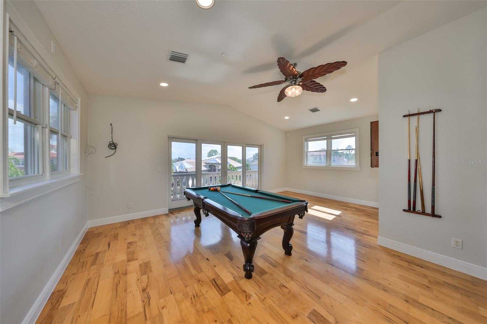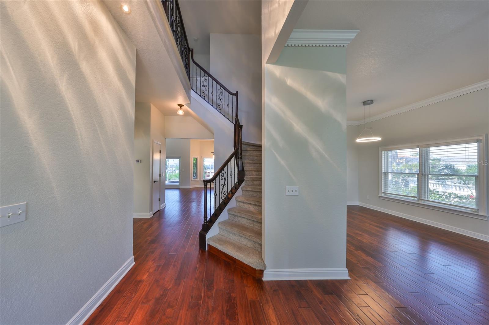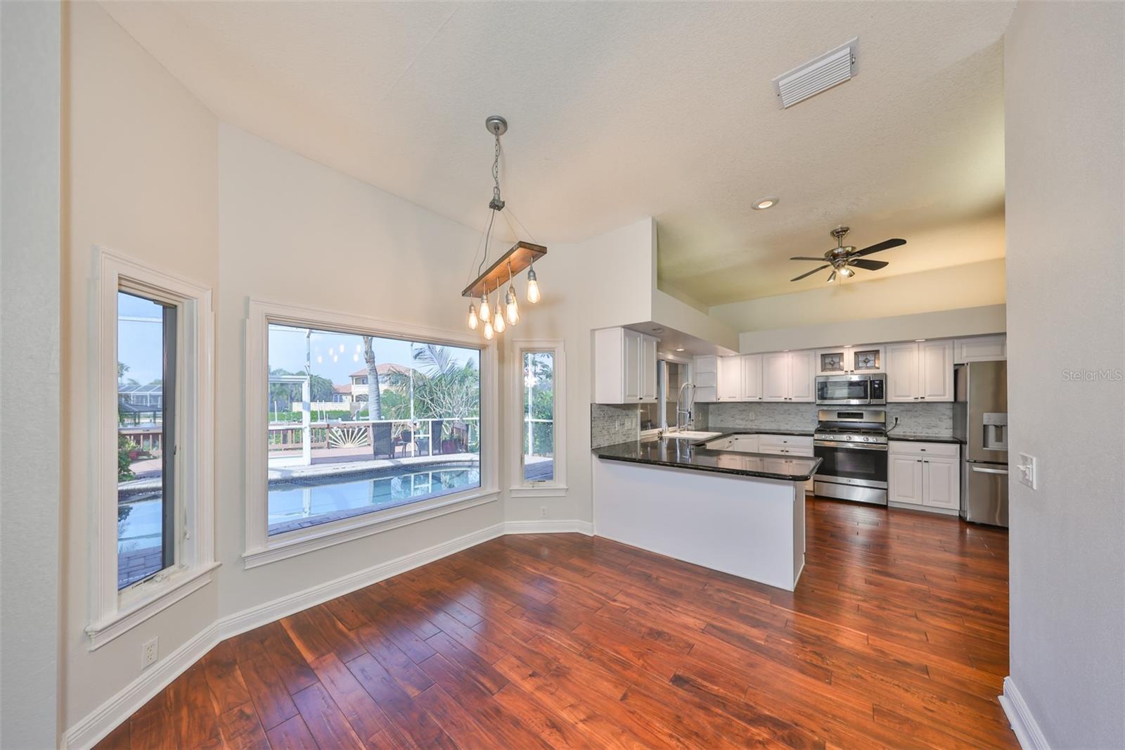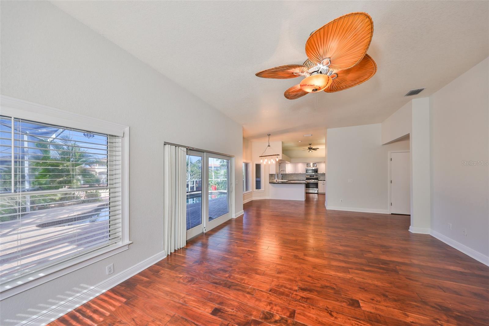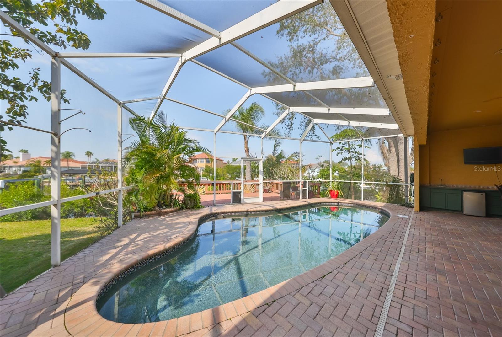 Discover your perfect oasis in the prestigious gated community of Symphony Isles! This gorgeous 5 bedrooms, 3 baths waterfront property features a brand new roof and a newly constructed wood dock, setting the stage for an idyllic lifestyle. As you approach, you'll be captivated by the circular paver driveway and lush landscaping that enhances the home's impressive curb appeal. Step through the elegant glass and wood double doors and be welcomed by a stunning iron spindle staircase, leading you into spacious formal living and dining areas. The expansive family room, complete with a cozy wood-burning fireplace and rich hand-scraped wood floors, is perfect for gatherings. The open-concept kitchen is a chef's delight, showcasing white cabinetry with pull-out drawers, stainless steel appliances, and an exquisite granite countertop. Enjoy casual meals at the breakfast bar or utilize the large pantry for all your culinary needs. Sliding glass doors provide seamless access to the beautiful salt-chlorinated pool and deck, making it easy to enjoy sunny days outdoors. The luxurious master suite boasts two generous walk-in California closets and a spa-like bathroom featuring a jetted tub, a marble-tiled shower, dual sinks, and a private balcony that offers breathtaking views of the bay. An additional bonus room over the garage includes custom cabinetry, a wet bar, and space for a pool table, perfect for entertaining! This home is equipped with upgraded Anderson double-pane windows, crown molding in formal areas, and stylish lighting throughout. Additional features include an electric car charger, ample garage storage, two laundry rooms (one upstairs and one downstairs), and energy-efficient tankless water heaters. The downstairs guest suite provides convenient pool bath access, while outdoor amenities include a large wood deck for gatherings, two boat lifts (14,000 lbs and 10,000 lbs), and plenty of side yard space for your furry friends. Enjoy the benefits of an irrigation system fed by a well, along with a variety of fruit trees including mango, banana, avocado, lychee, peach, and orange. With solar panels, you'll save significantly on energy costs! Residents of Symphony Isles enjoy 24-hour manned security, a private beach, community pool, volleyball court, clubhouse for events, and numerous social activities, all just minutes from the bay. Don't miss out on the best boating experiences this community has to offer! Schedule your tour today!
