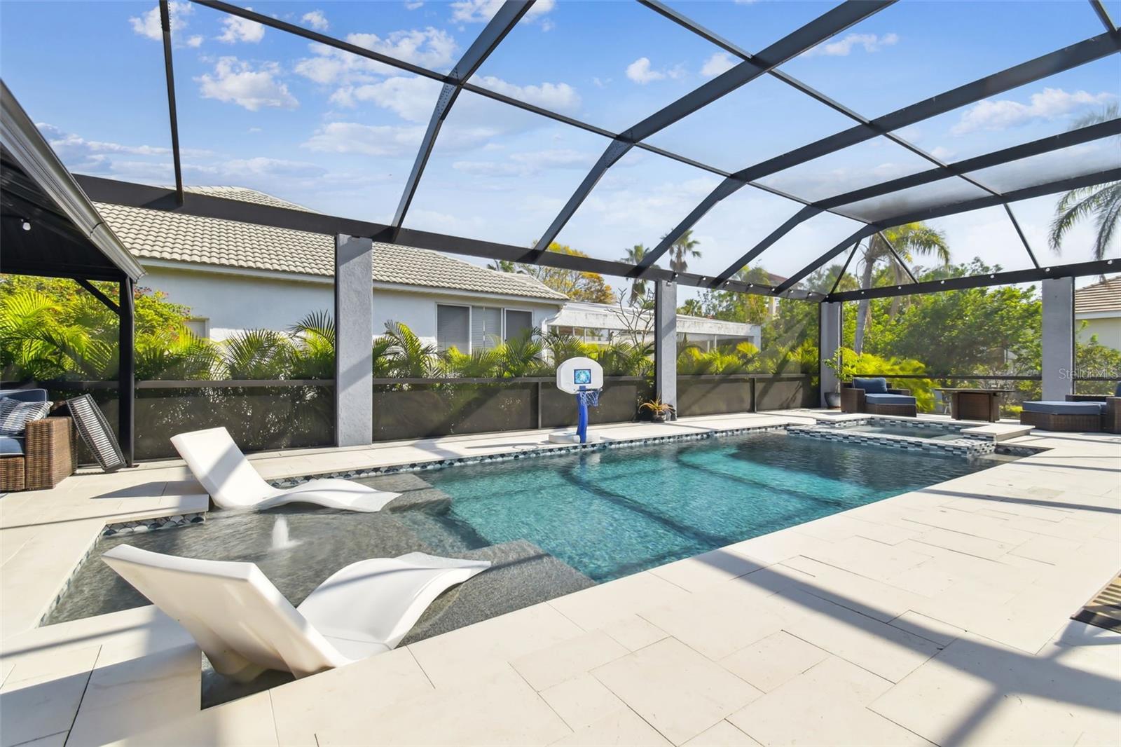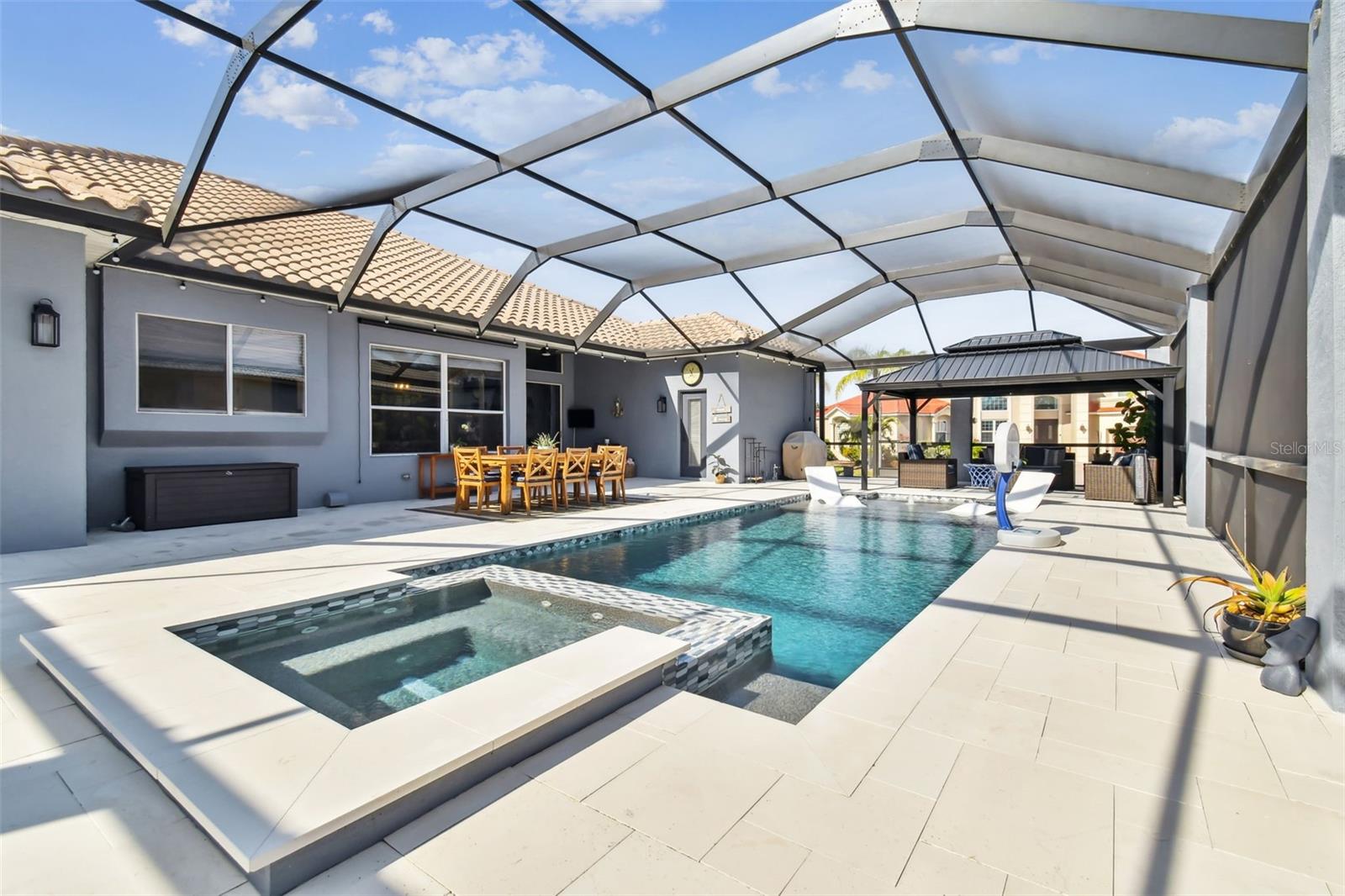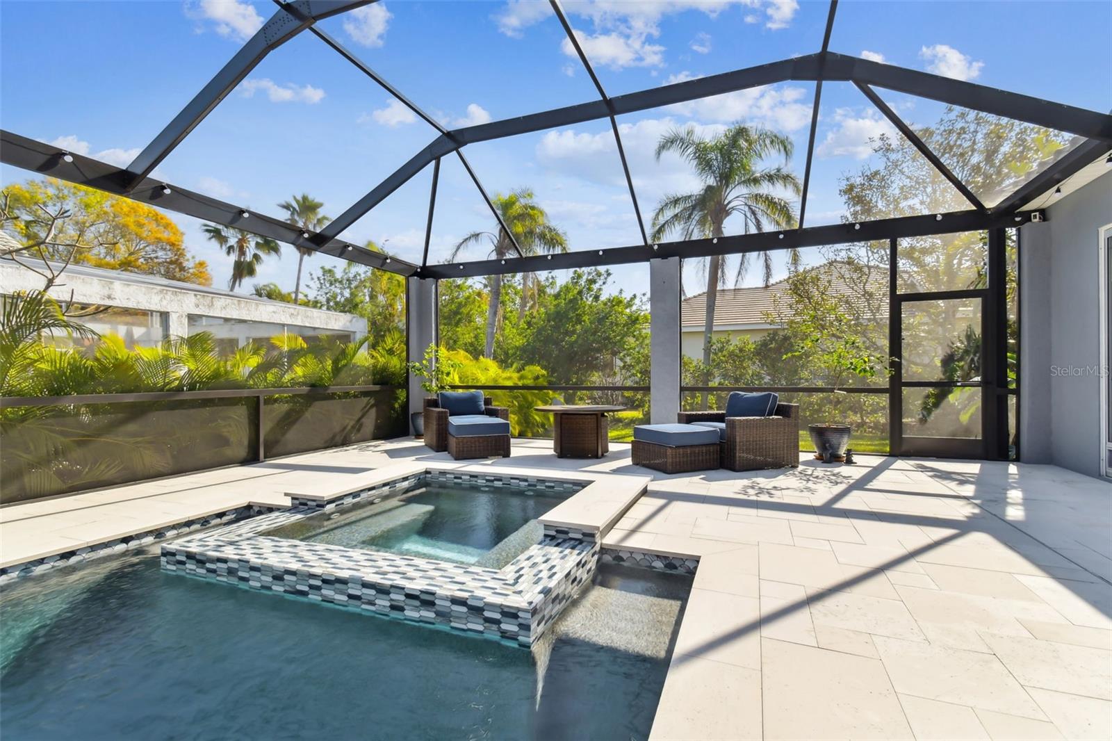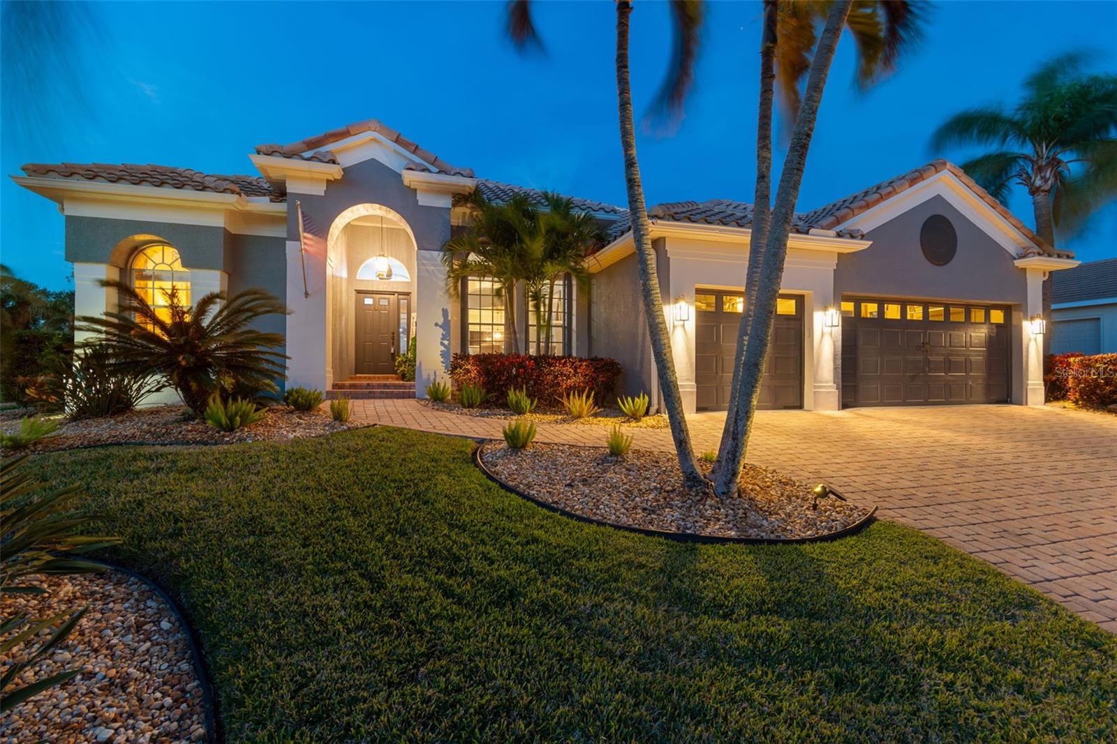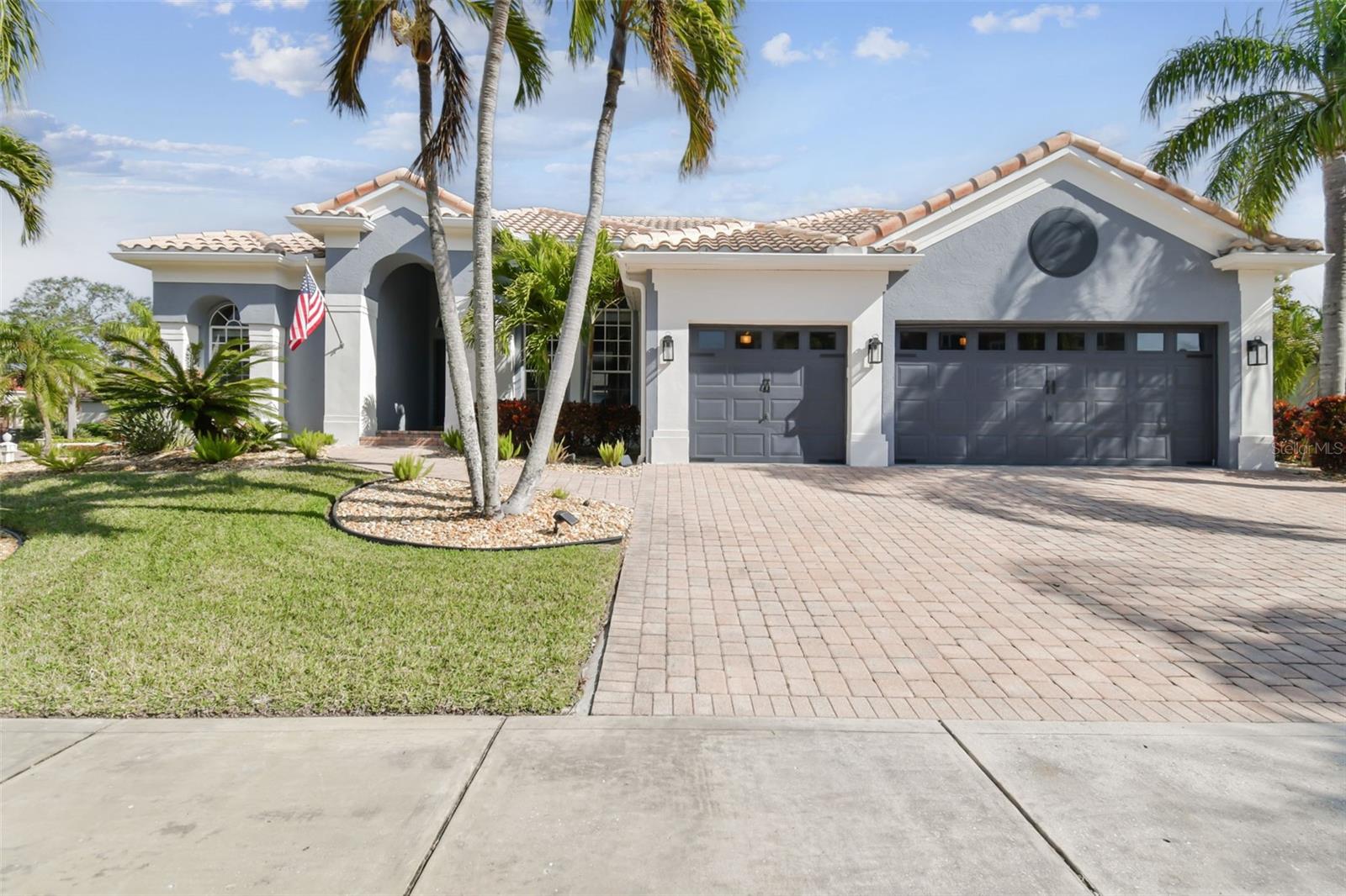 Welcome to your Florida dream home, which the owners have transformed from a blank canvas to a work of art. The newest addition is the backyard oasis with a spectacular caged pool area. The heated saltwater pool features a spillover hot tub, sun shelf with bubbler and limestone pavers that stay cool to the touch in the sun. Part of the lanai is already under the roof line so you could enjoy it even during a summertime rain shower. There’s also a new pergola that you can relax under and catch sunsets over the bay. The description doesn’t do it justice and you need to see it to appreciate just how great it is. Inside, the 4-bedroom, 3-bathroom home has just over 2,700 sq. ft. of living space that has been immaculately cared for and beautifully decorated, with design features like decorative arches, double tray ceilings and crown molding. Engineered hardwood floors run throughout the main living areas – which include a living room, family room and dining room. The living room features a dry bar, mini fridge and electric fireplace and the family room has a large, built-in entertainment center. The kitchen has wood cabinetry with dovetail drawers, soft-close hinges, granite countertops, stainless steel appliances, eat-in area opposite the breakfast bar, walk-in pantry, plus a butler’s pantry with desk nook and a perfect spot for a coffee bar. This home has a split floor plan with two guest bedrooms and a guest bathroom toward the front of the house, the third guest bedroom complete with ensuite bathroom (it’s also the pool bathroom) to the rear of the home, and the master suite on the opposite side of the home. The expansive master bedroom has access to the pool area and more than enough room for an additional seating area. There’s his and hers walk-in closets and the master bathroom has a double vanity plus an additional make-up vanity and a large walk-in shower. The laundry room has cabinetry and a sink and leads to the three-car garage. Other updates include a new irrigation well, new exterior paint and new water softener system. This home had no water intrusion during Hurricanes Helene or Milton. This home is located in the gated waterfront community of Andalucia, which has a community clubhouse, pool, tennis courts, playground and a marina with assignable slips for purchase (there’s a waiting list) as well as slips for rent from other owners. Walk through the 3D model from the comfort of your own home by clicking this link: https://my.matterport.com/show/?m=XGTNFzZc18f&mls=1, then make your appointment to see this house today!