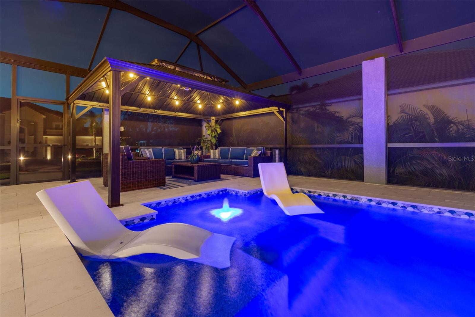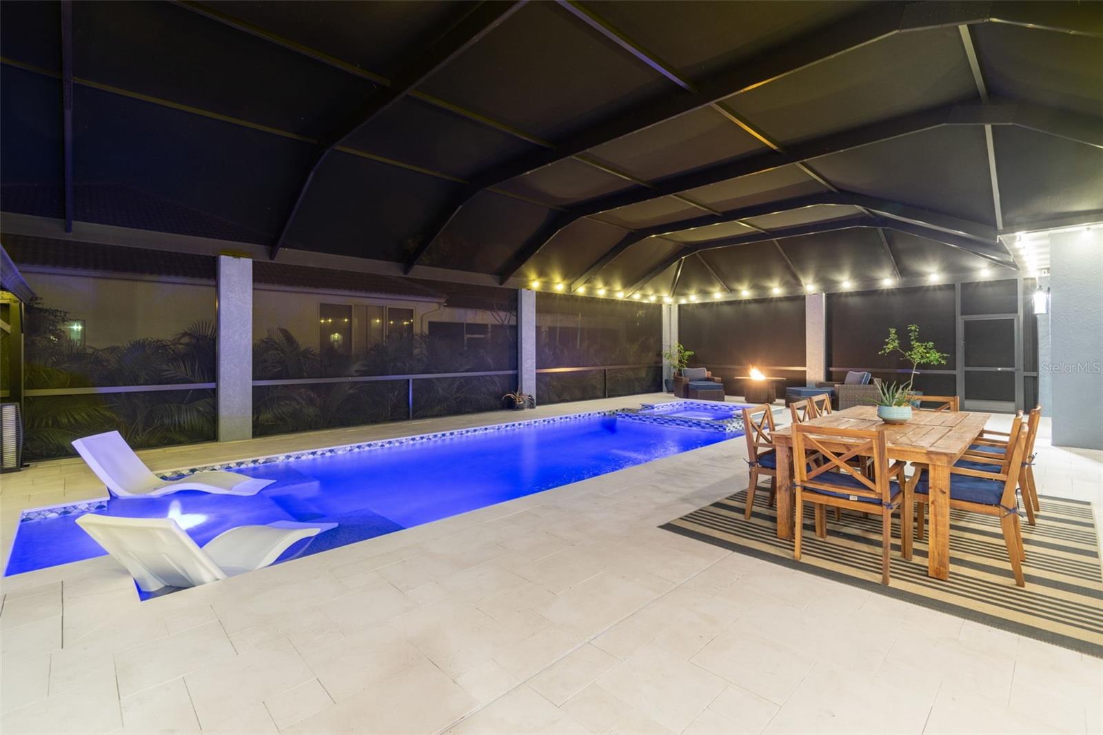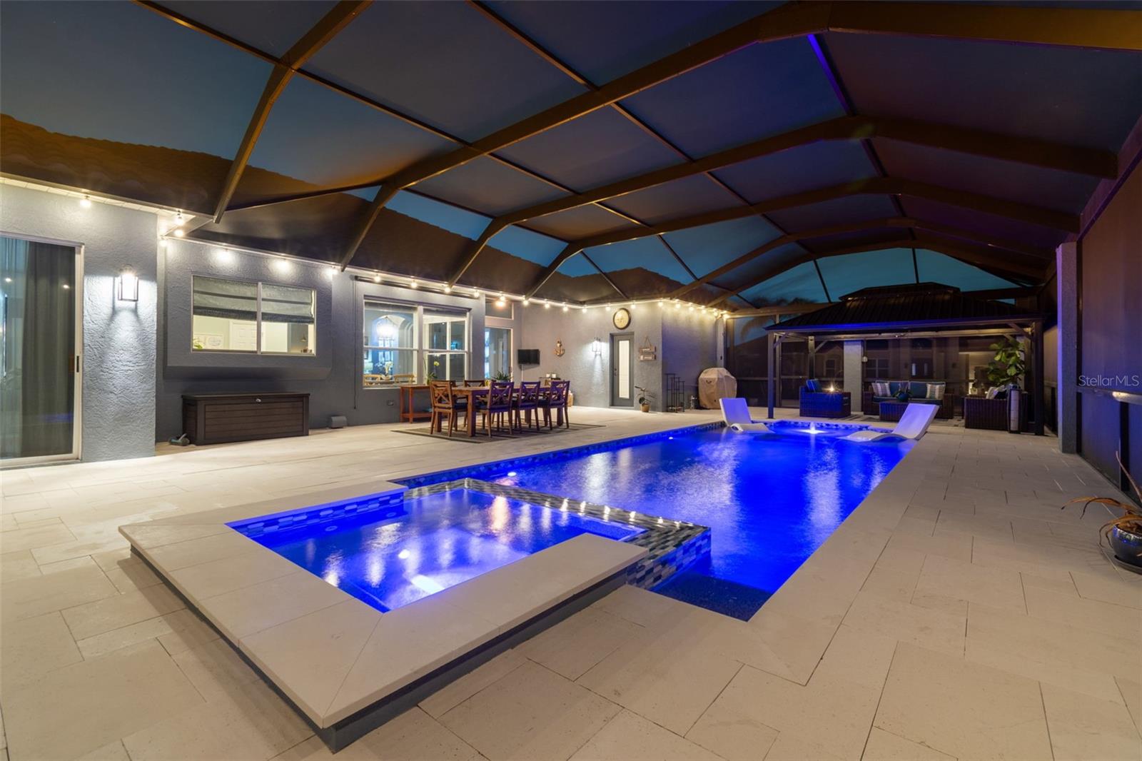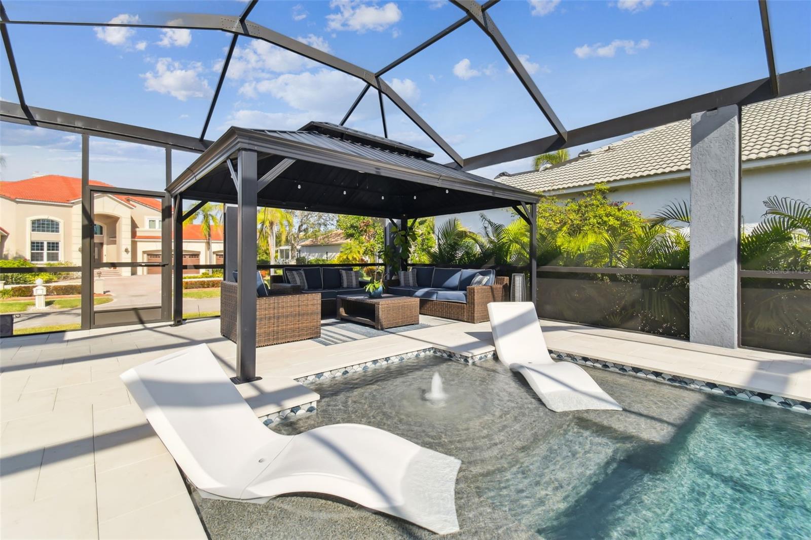 Welcome to your Florida dream home, which the owners have transformed from a blank canvas to a work of art. The newest addition is the backyard oasis with a spectacular caged pool area. The heated saltwater pool features a spillover hot tub, sun shelf with bubbler and limestone pavers that stay cool to the touch in the sun. Part of the lanai is already under the roof line so you could enjoy it even during a summertime rain shower. There’s also a new pergola that you can relax under and catch sunsets over the bay. The description doesn’t do it justice and you need to see it to appreciate just how great it is. Inside, the 4-bedroom, 3-bathroom home has just over 2,700 sq. ft. of living space that has been immaculately cared for and beautifully decorated, with design features like decorative arches, double tray ceilings and crown molding. Engineered hardwood floors run throughout the main living areas – which include a living room, family room and dining room. The living room features a dry bar, mini fridge and electric fireplace and the family room has a large, built-in entertainment center. The kitchen has wood cabinetry with dovetail drawers, soft-close hinges, granite countertops, stainless steel appliances, eat-in area opposite the breakfast bar, walk-in pantry, plus a butler’s pantry with desk nook and a perfect spot for a coffee bar. This home has a split floor plan with two guest bedrooms and a guest bathroom toward the front of the house, the third guest bedroom complete with ensuite bathroom (it’s also the pool bathroom) to the rear of the home, and the master suite on the opposite side of the home. The expansive master bedroom has access to the pool area and more than enough room for an additional seating area. There’s his and hers walk-in closets and the master bathroom has a double vanity plus an additional make-up vanity and a large walk-in shower. The laundry room has cabinetry and a sink and leads to the three-car garage. Other updates include a new irrigation well, new exterior paint and new water softener system. This home had no water intrusion during Hurricanes Helene or Milton. This home is located in the gated waterfront community of Andalucia, which has a community clubhouse, pool, tennis courts, playground and a marina with assignable slips for purchase (there’s a waiting list) as well as slips for rent from other owners. Walk through the 3D model from the comfort of your own home by clicking this link: https://my.matterport.com/show/?m=XGTNFzZc18f&mls=1, then make your appointment to see this house today!