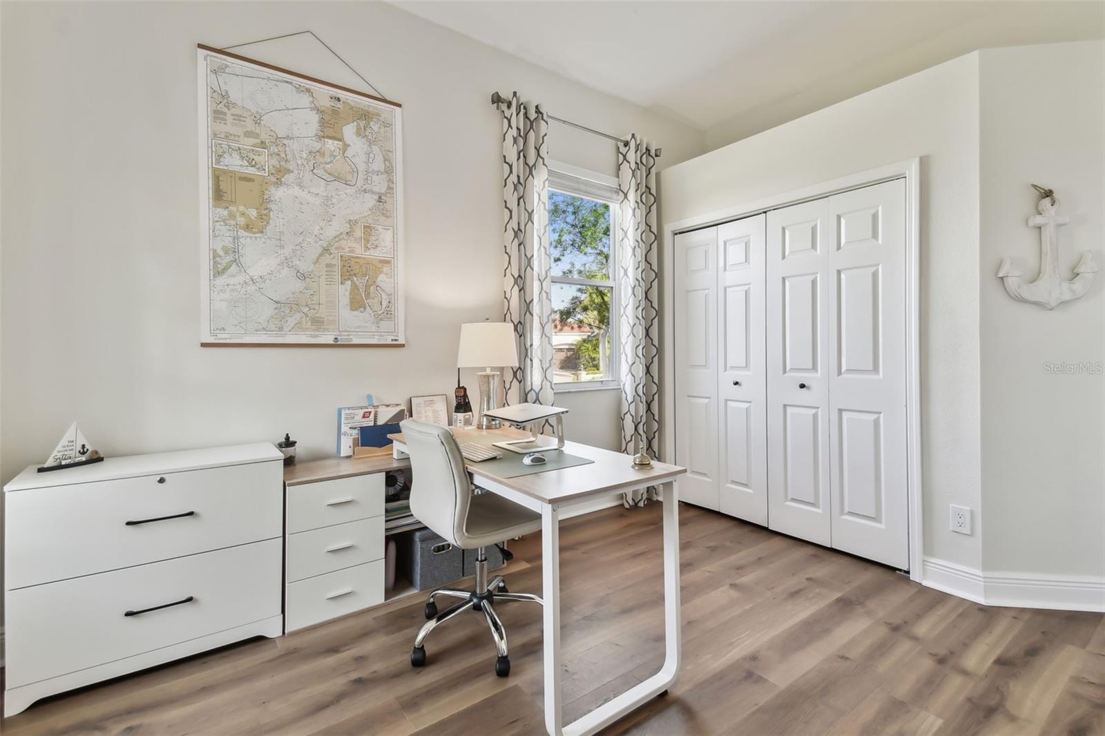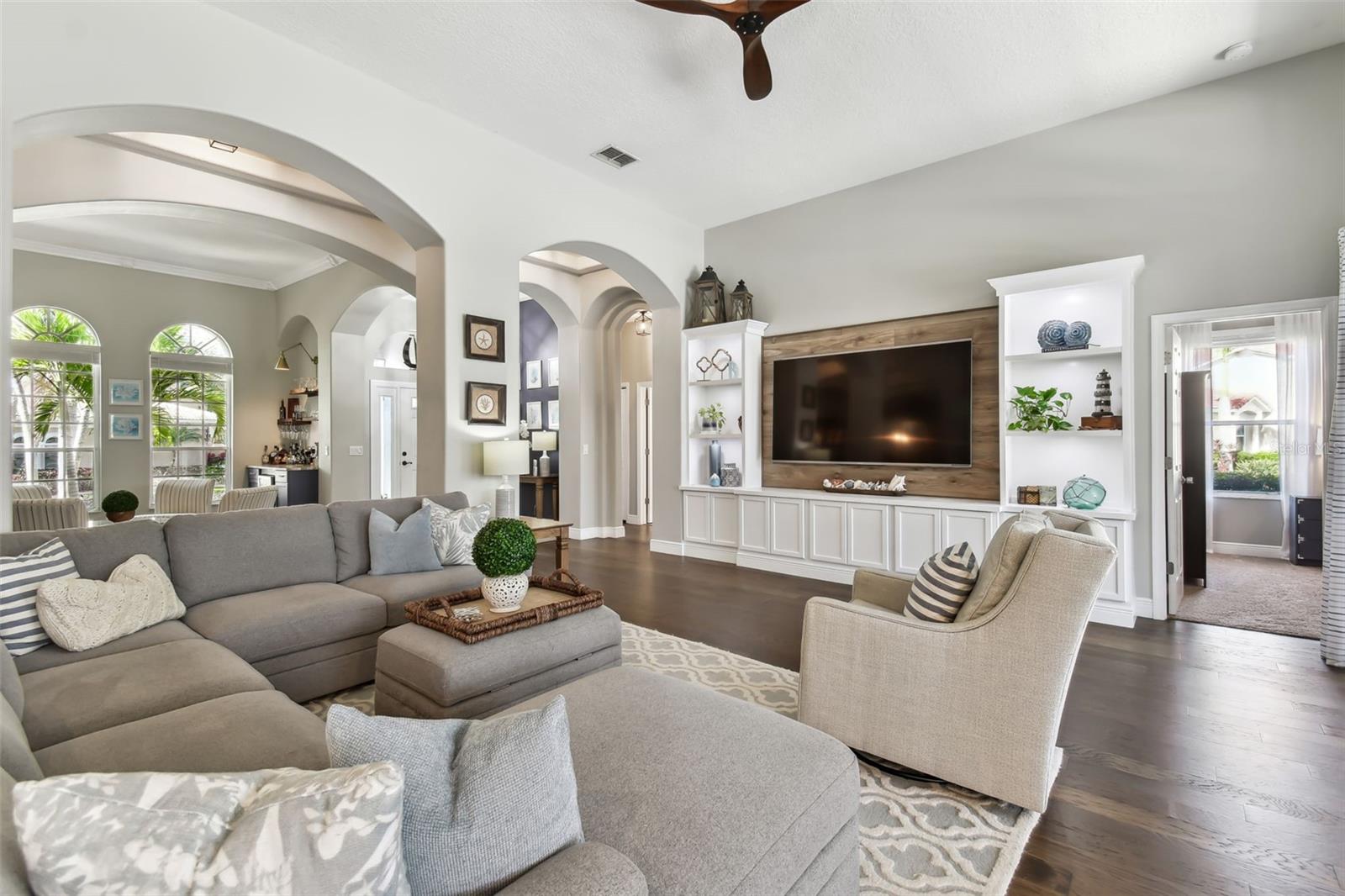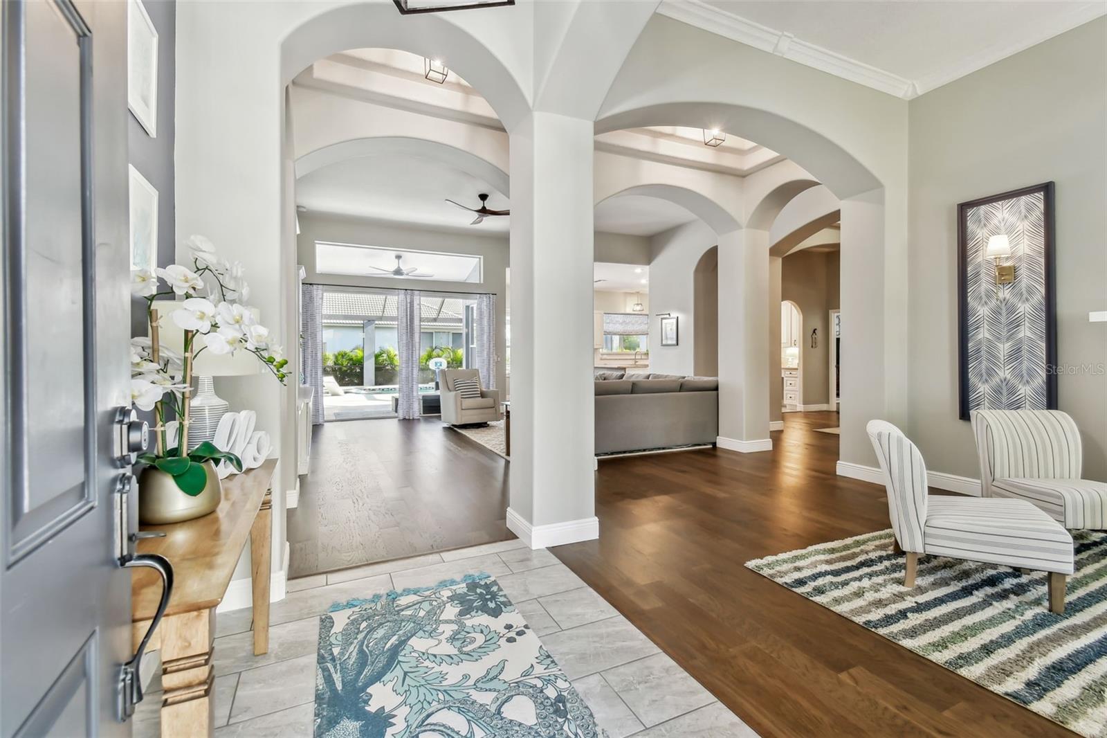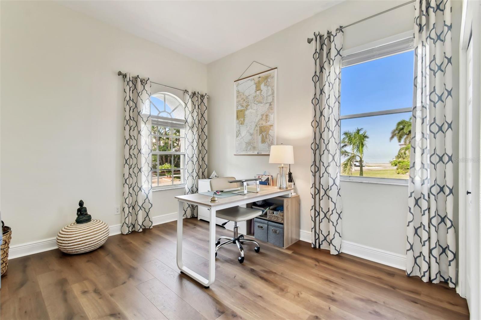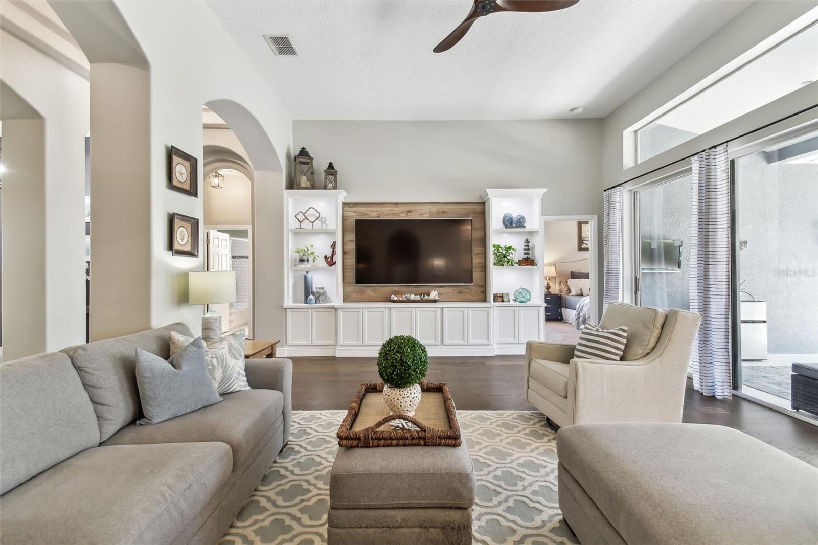 Welcome to your Florida dream home, which the owners have transformed from a blank canvas to a work of art. The newest addition is the backyard oasis with a spectacular caged pool area. The heated saltwater pool features a spillover hot tub, sun shelf with bubbler and limestone pavers that stay cool to the touch in the sun. Part of the lanai is already under the roof line so you could enjoy it even during a summertime rain shower. There’s also a new pergola that you can relax under and catch sunsets over the bay. The description doesn’t do it justice and you need to see it to appreciate just how great it is. Inside, the 4-bedroom, 3-bathroom home has just over 2,700 sq. ft. of living space that has been immaculately cared for and beautifully decorated, with design features like decorative arches, double tray ceilings and crown molding. Engineered hardwood floors run throughout the main living areas – which include a living room, family room and dining room. The living room features a dry bar, mini fridge and electric fireplace and the family room has a large, built-in entertainment center. The kitchen has wood cabinetry with dovetail drawers, soft-close hinges, granite countertops, stainless steel appliances, eat-in area opposite the breakfast bar, walk-in pantry, plus a butler’s pantry with desk nook and a perfect spot for a coffee bar. This home has a split floor plan with two guest bedrooms and a guest bathroom toward the front of the house, the third guest bedroom complete with ensuite bathroom (it’s also the pool bathroom) to the rear of the home, and the master suite on the opposite side of the home. The expansive master bedroom has access to the pool area and more than enough room for an additional seating area. There’s his and hers walk-in closets and the master bathroom has a double vanity plus an additional make-up vanity and a large walk-in shower. The laundry room has cabinetry and a sink and leads to the three-car garage. Other updates include a new irrigation well, new exterior paint and new water softener system. This home had no water intrusion during Hurricanes Helene or Milton. This home is located in the gated waterfront community of Andalucia, which has a community clubhouse, pool, tennis courts, playground and a marina with assignable slips for purchase (there’s a waiting list) as well as slips for rent from other owners. Walk through the 3D model from the comfort of your own home by clicking this link: https://my.matterport.com/show/?m=XGTNFzZc18f&mls=1, then make your appointment to see this house today!
