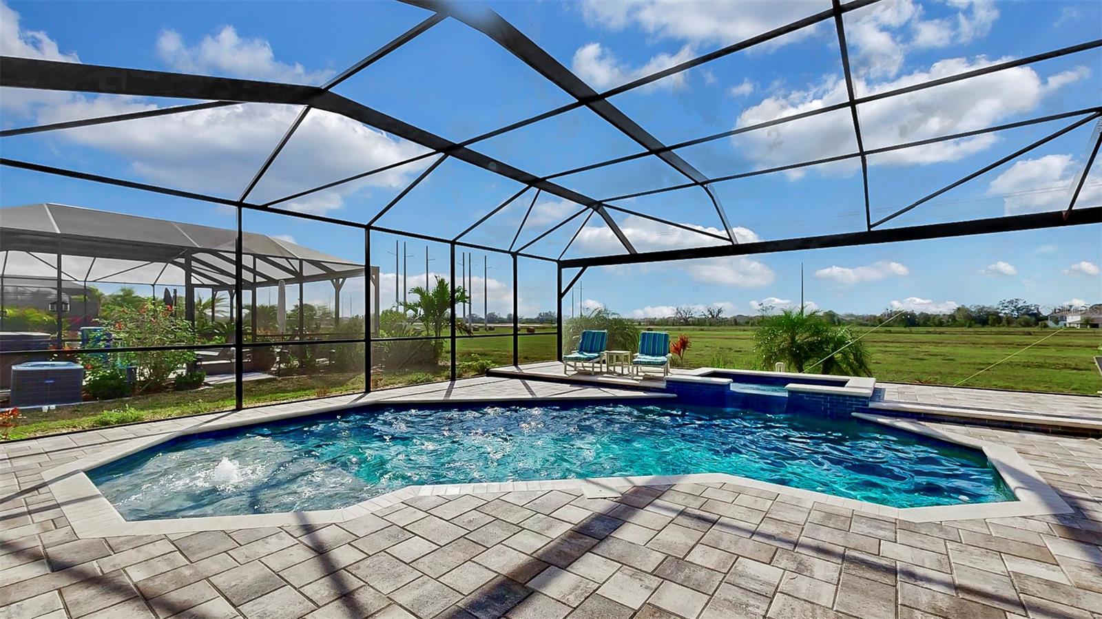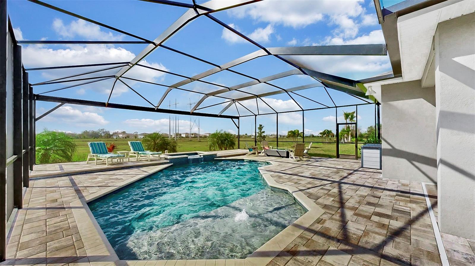 *Seller is now offering a $10,000 credit for closing costs or rate buydown*This stunning oasis in the heart of Apollo Beach offers the perfect blend of luxury and comfort. Step inside to an open, light-filled floor plan with beautiful luxury vinyl floors that lead seamlessly into a gourmet kitchen, featuring stainless steel appliances, a stylish range hood, and a spacious island ideal for entertaining. The master suite is a true retreat, with two generous walk-in closets and a spa-like en-suite bathroom, complete with dual vanities, a soaking tub, and an oversized walk-in shower. Each additional bedroom is spacious and inviting, making guests and family feel right at home. The breathtaking outdoor retreat features a spacious panoramic screened-in pool, perfect for swimming and lounging year-round, protected from the elements. Unwind in the relaxing hot tub, offering a peaceful escape under the stars. The beautifully appointed seating area invites you to relax and enjoy the tranquility of your surroundings while taking in beautiful sunsets, complete with a cozy gas firepit for cooler Florida evenings. The luxury patio furniture stays, and a retractable awning keeps you cool on those warm summer days. Plus, with no one able to build behind you, your privacy and view are guaranteed. Whether you're hosting gatherings or enjoying quiet moments, this outdoor space is an entertainer’s dream, blending comfort and luxury with seamless indoor-outdoor living. Located in a sought-after community with easy access to parks, shops, and dining, this home provides everything you need just moments away. Surrounded by natural beauty, it’s your own slice of paradise in Apollo Beach!