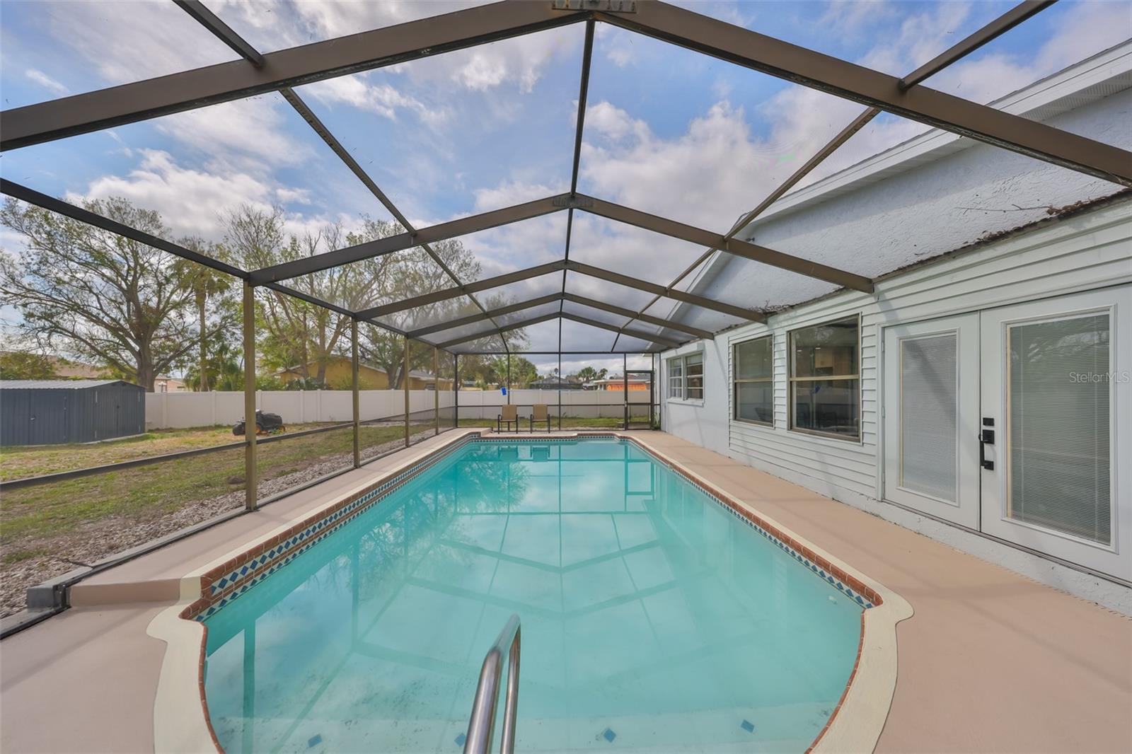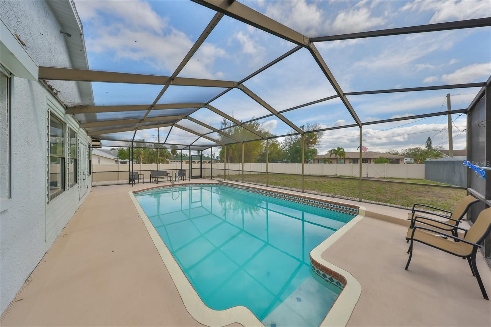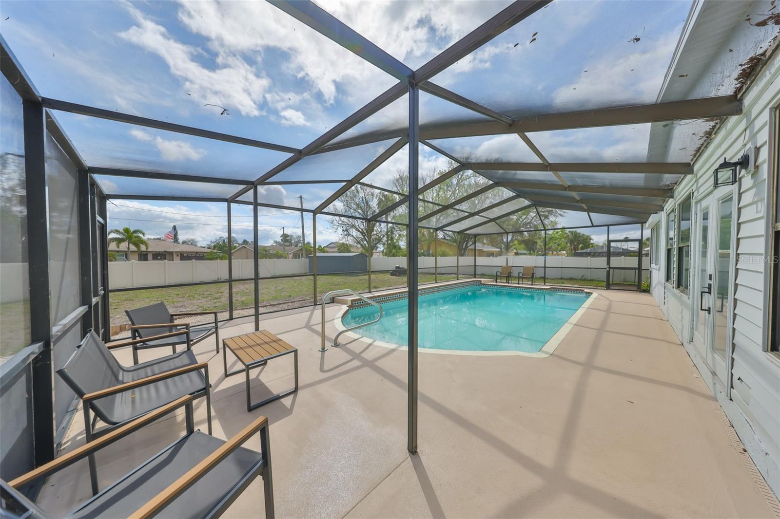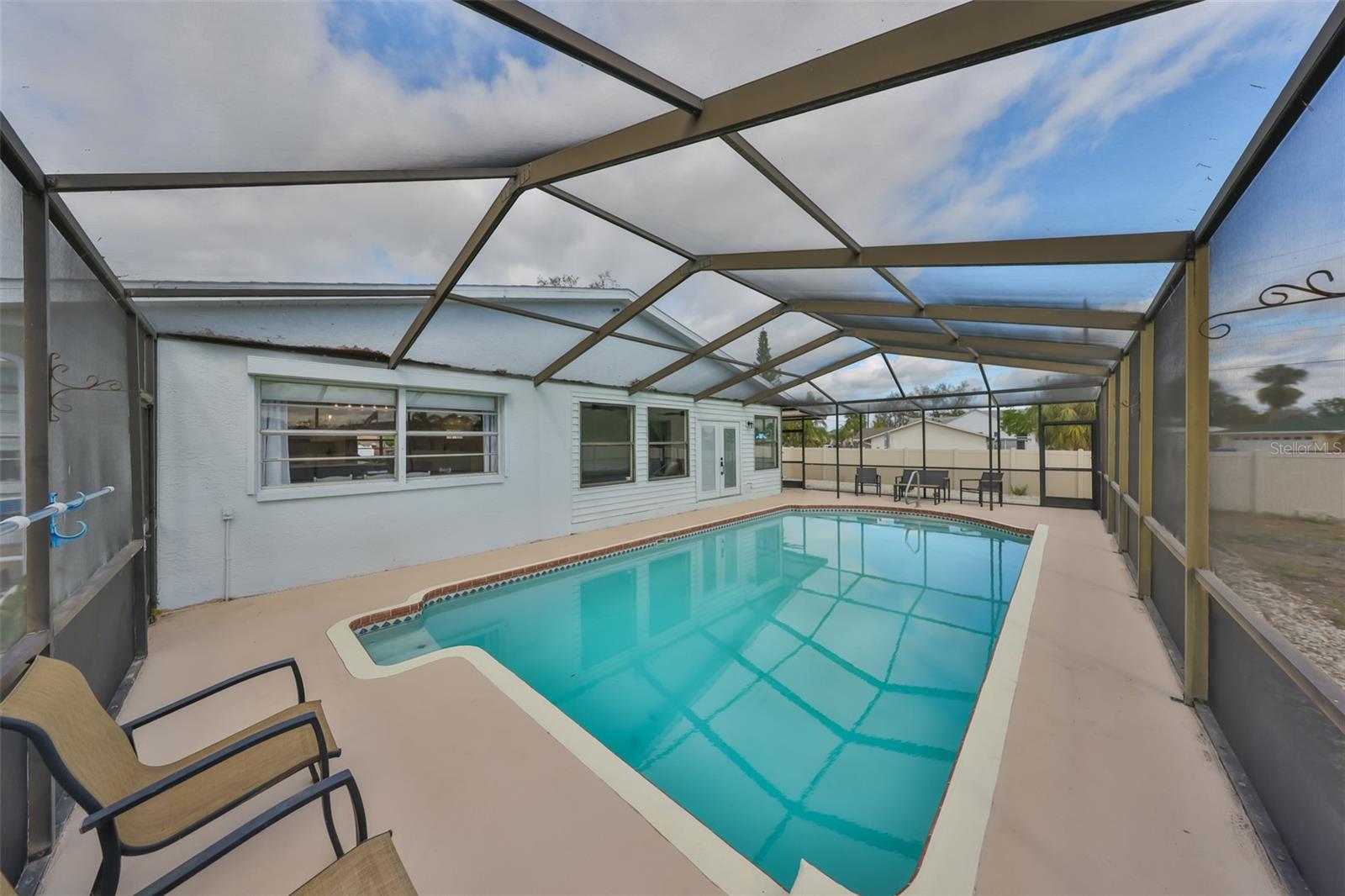 SELLER IS OFFERING $10,000 TOWARDS BUYERS CLOSING COSTS! This beautifully updated home combines luxury upgrades with comfortable, open-concept living—all situated on an oversized, FULLY FENCED 0.37-ACRE LOT with a PRIVATE POOL and NO HOA. There was no flooding in the home from recent storms. Renovated in 2023, the 2-bedroom, 2-bath home features a modern kitchen remodel with a large breakfast bar perfect for casual dining and entertaining. Both bathrooms have been thoughtfully redesigned with high-end finishes, including a spa-like primary bath with a spacious walk-in shower. Luxury vinyl plank flooring runs throughout the home, complementing the open layout that seamlessly connects the living, kitchen, and dining areas. A bright and cheerful Florida room adds the perfect spot to unwind and soak up the sun. Additional recent upgrades include new insulation, a new electrical panel, and updated wiring—all completed in 2023 for enhanced energy efficiency and peace of mind. Step outside to your own backyard retreat featuring a beautiful pool and an expansive, fully fenced yard with room to park a boat or RV. The attached two-car garage offers ample storage. Conveniently located just minutes from local dining and amenities, this move-in-ready gem did not flood during recent storms and offers the perfect blend of style, space, and location.