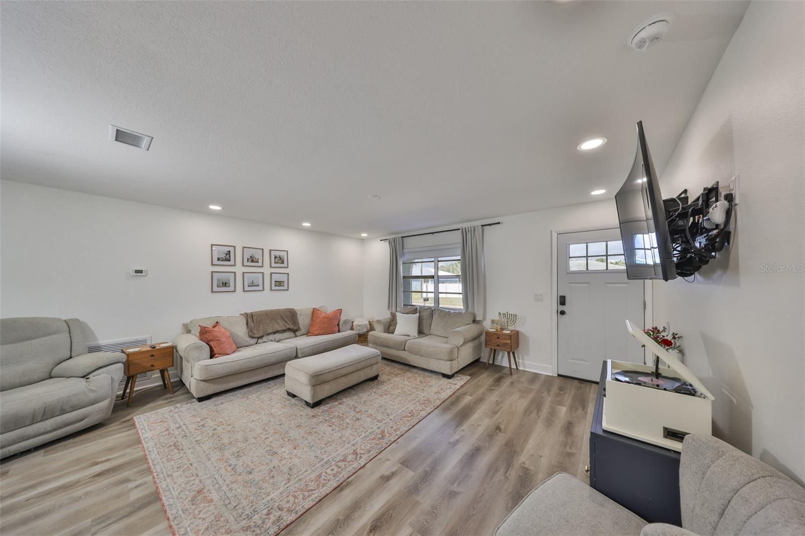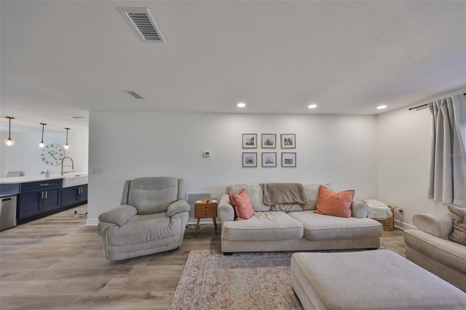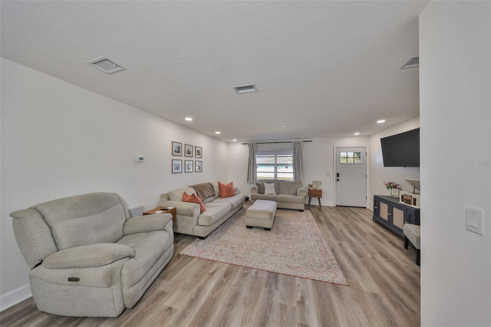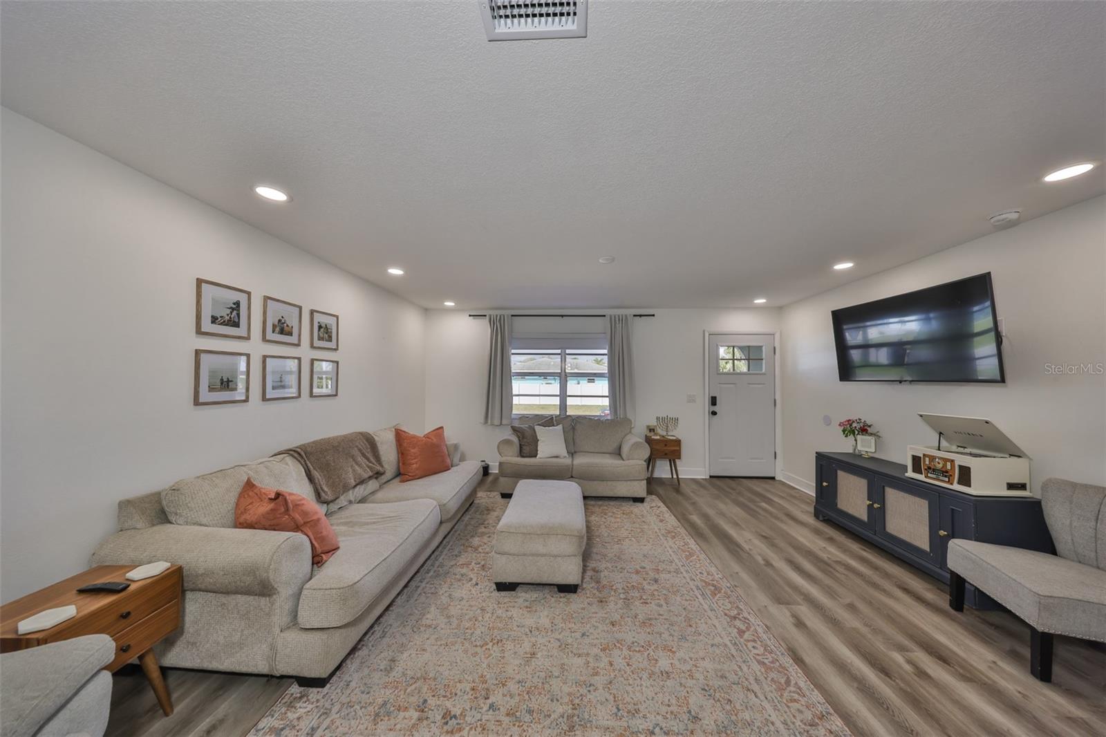 SELLER IS OFFERING $10,000 TOWARDS BUYERS CLOSING COSTS! This beautifully updated home combines luxury upgrades with comfortable, open-concept living—all situated on an oversized, FULLY FENCED 0.37-ACRE LOT with a PRIVATE POOL and NO HOA. There was no flooding in the home from recent storms. Renovated in 2023, the 2-bedroom, 2-bath home features a modern kitchen remodel with a large breakfast bar perfect for casual dining and entertaining. Both bathrooms have been thoughtfully redesigned with high-end finishes, including a spa-like primary bath with a spacious walk-in shower. Luxury vinyl plank flooring runs throughout the home, complementing the open layout that seamlessly connects the living, kitchen, and dining areas. A bright and cheerful Florida room adds the perfect spot to unwind and soak up the sun. Additional recent upgrades include new insulation, a new electrical panel, and updated wiring—all completed in 2023 for enhanced energy efficiency and peace of mind. Step outside to your own backyard retreat featuring a beautiful pool and an expansive, fully fenced yard with room to park a boat or RV. The attached two-car garage offers ample storage. Conveniently located just minutes from local dining and amenities, this move-in-ready gem did not flood during recent storms and offers the perfect blend of style, space, and location.