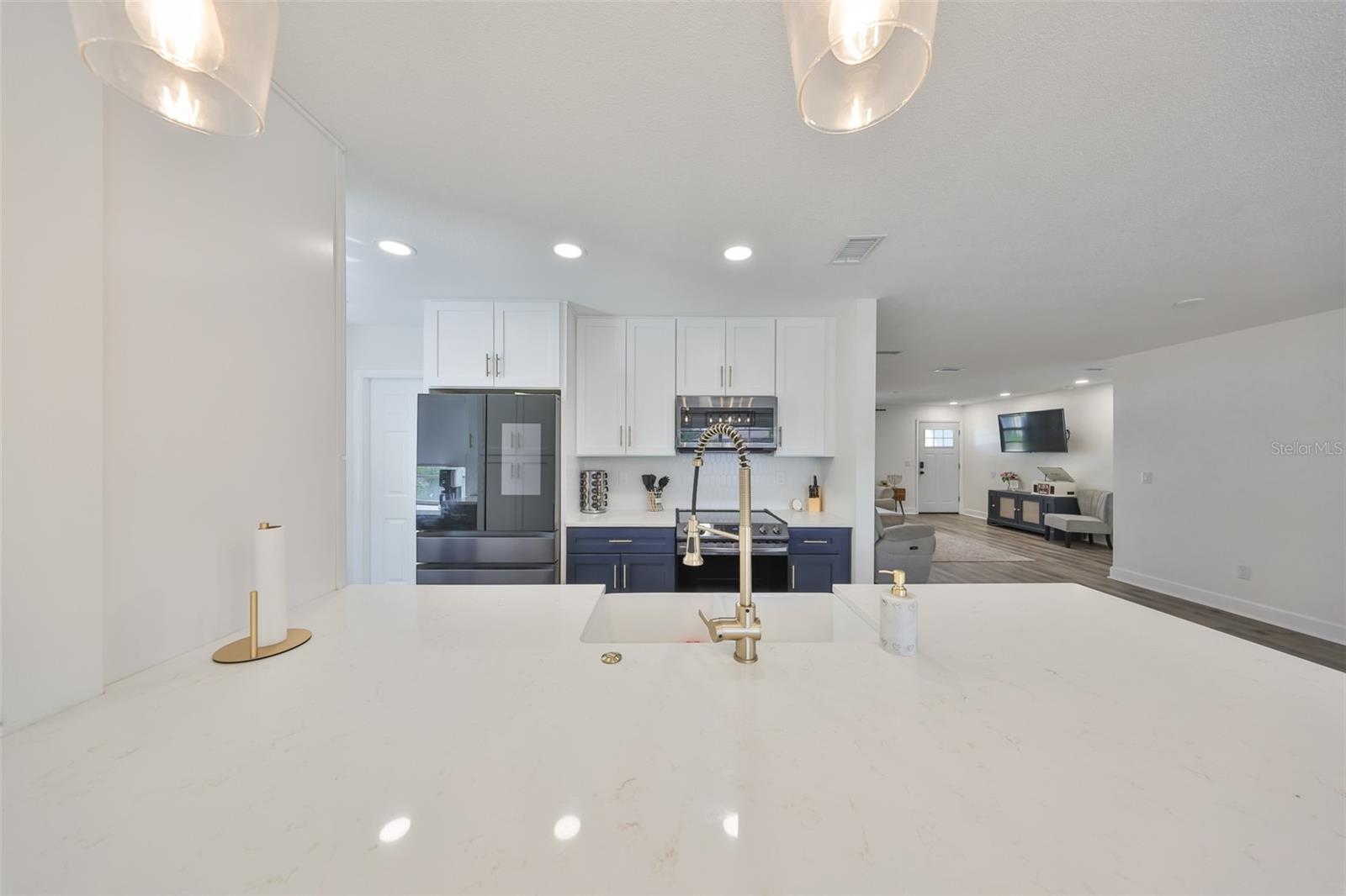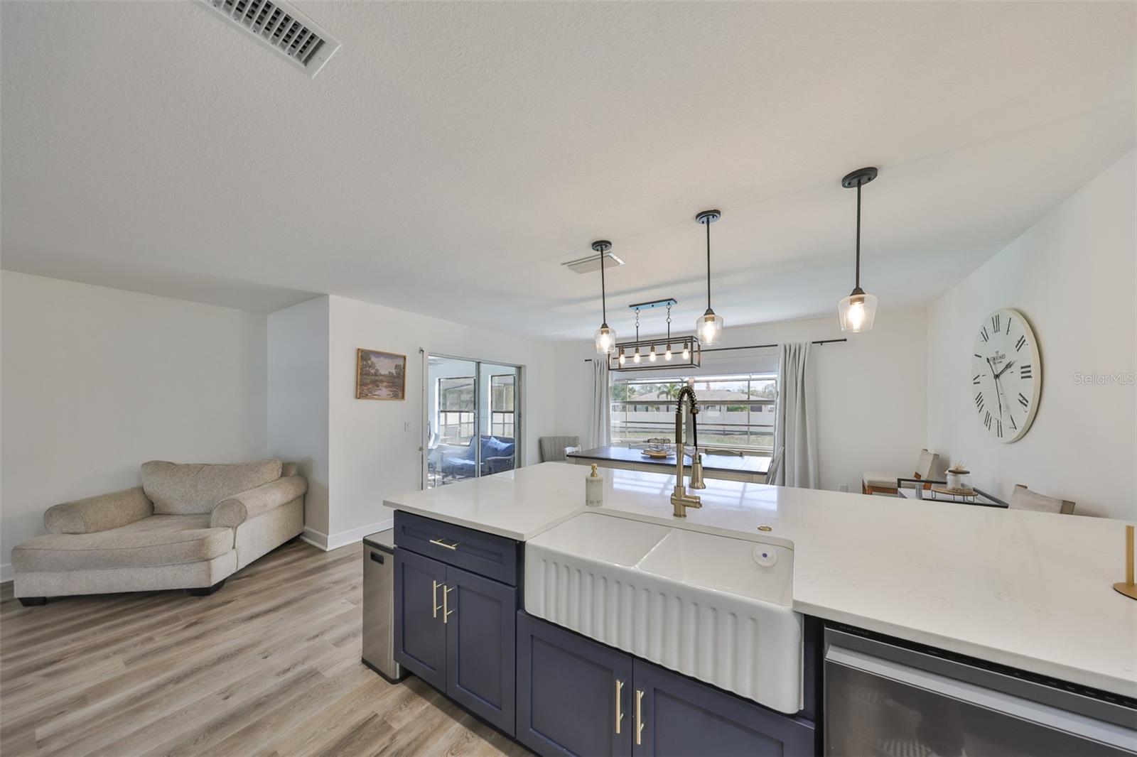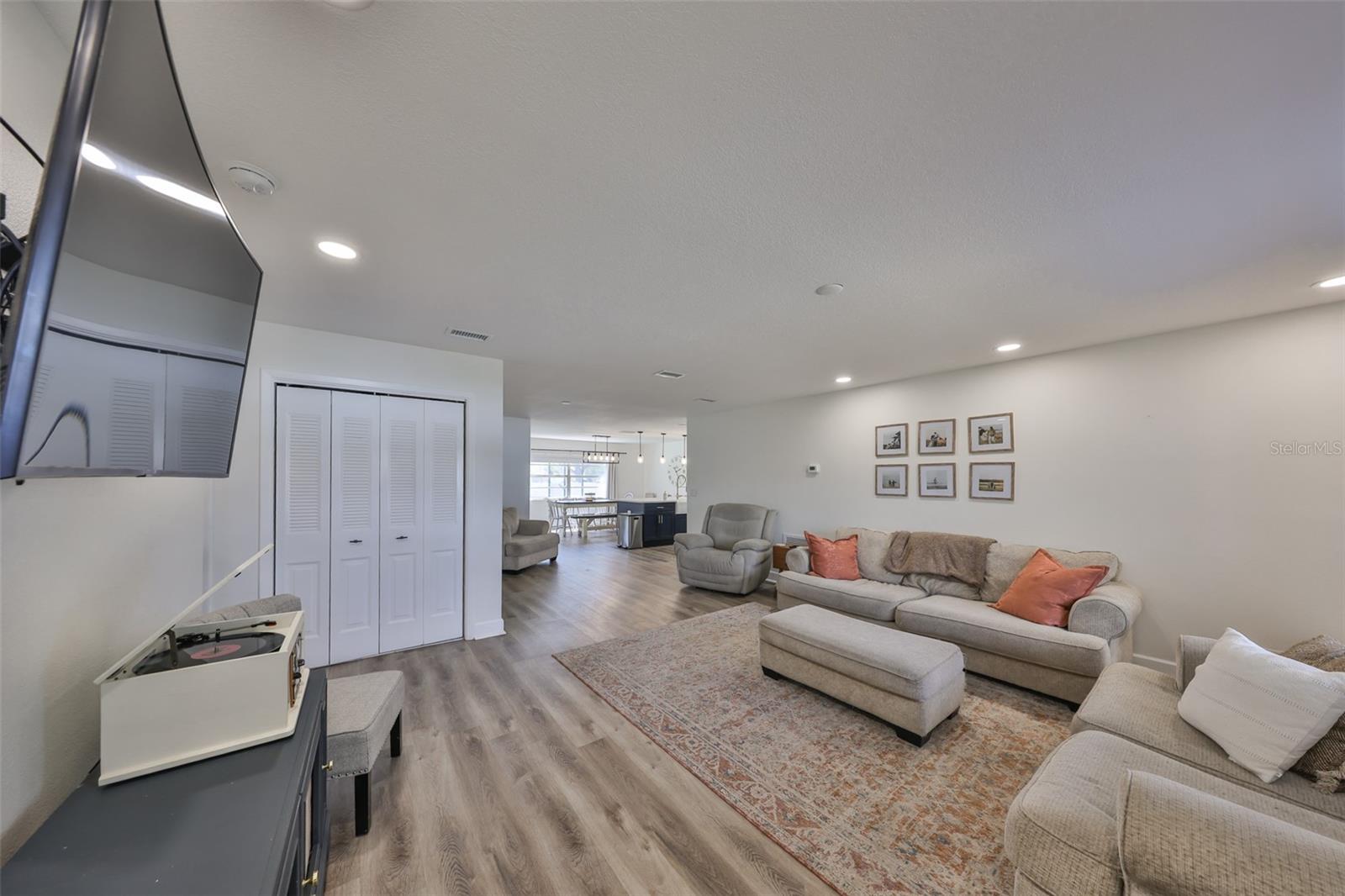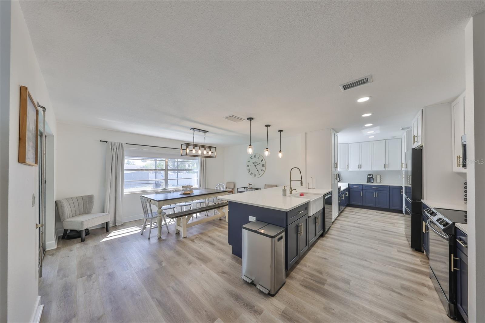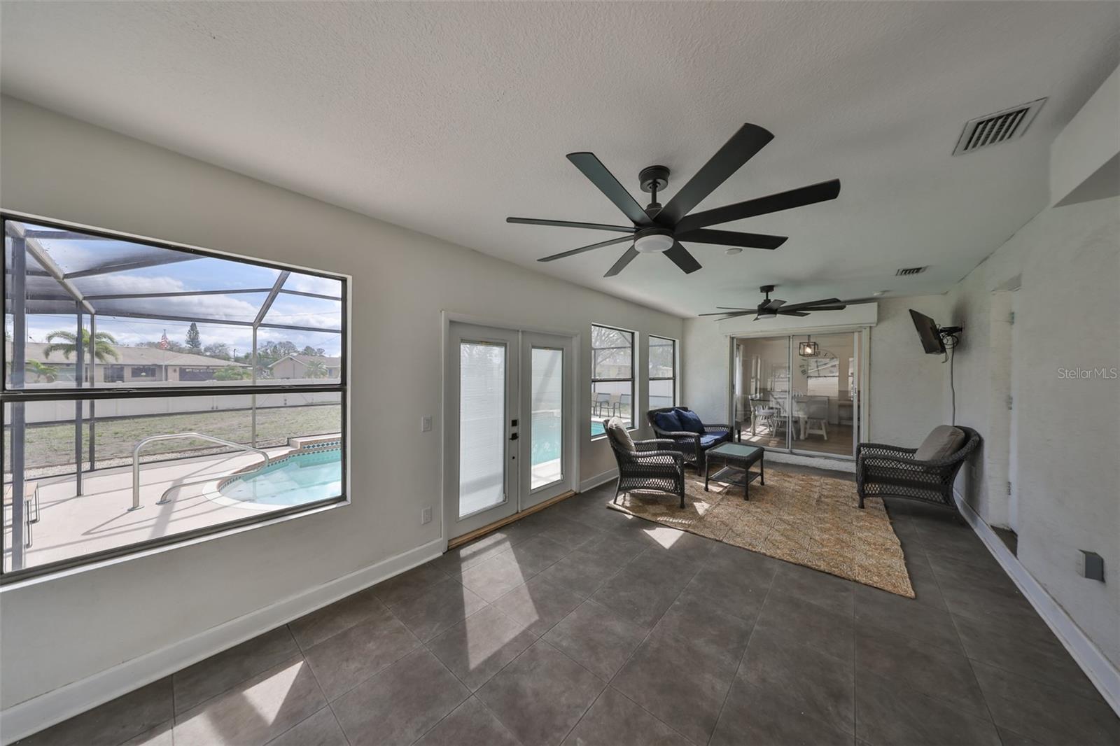 SELLER IS OFFERING $10,000 TOWARDS BUYERS CLOSING COSTS! This beautifully updated home combines luxury upgrades with comfortable, open-concept living—all situated on an oversized, FULLY FENCED 0.37-ACRE LOT with a PRIVATE POOL and NO HOA. There was no flooding in the home from recent storms. Renovated in 2023, the 2-bedroom, 2-bath home features a modern kitchen remodel with a large breakfast bar perfect for casual dining and entertaining. Both bathrooms have been thoughtfully redesigned with high-end finishes, including a spa-like primary bath with a spacious walk-in shower. Luxury vinyl plank flooring runs throughout the home, complementing the open layout that seamlessly connects the living, kitchen, and dining areas. A bright and cheerful Florida room adds the perfect spot to unwind and soak up the sun. Additional recent upgrades include new insulation, a new electrical panel, and updated wiring—all completed in 2023 for enhanced energy efficiency and peace of mind. Step outside to your own backyard retreat featuring a beautiful pool and an expansive, fully fenced yard with room to park a boat or RV. The attached two-car garage offers ample storage. Conveniently located just minutes from local dining and amenities, this move-in-ready gem did not flood during recent storms and offers the perfect blend of style, space, and location.
