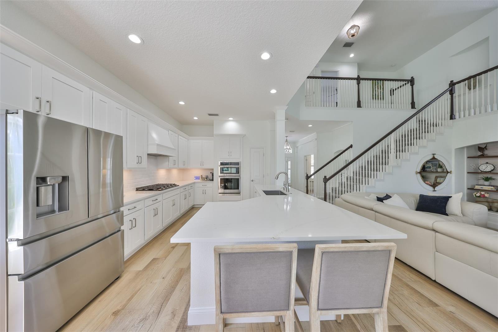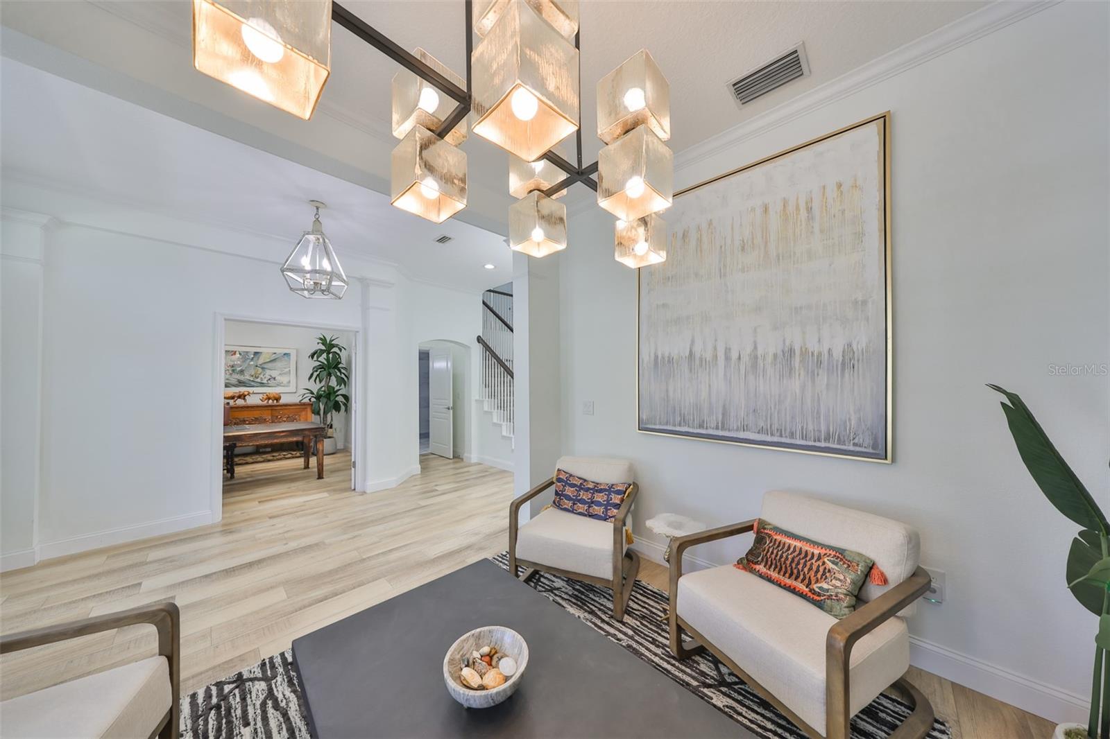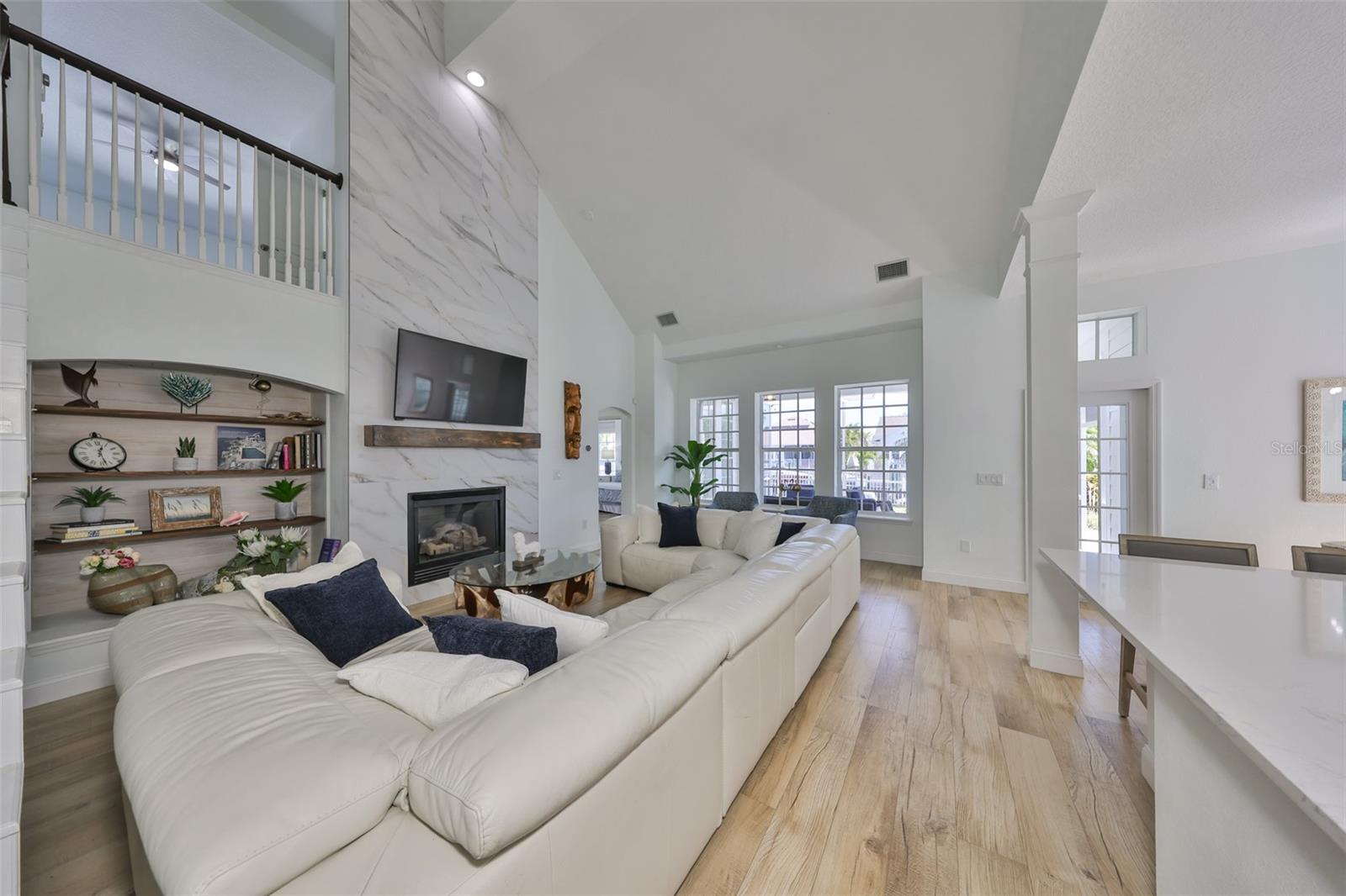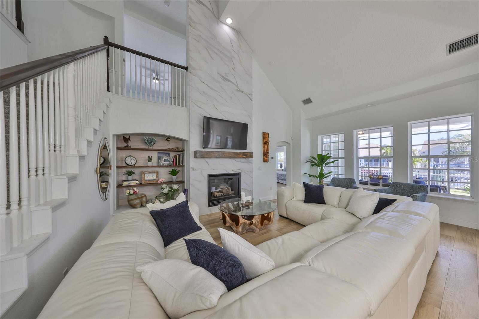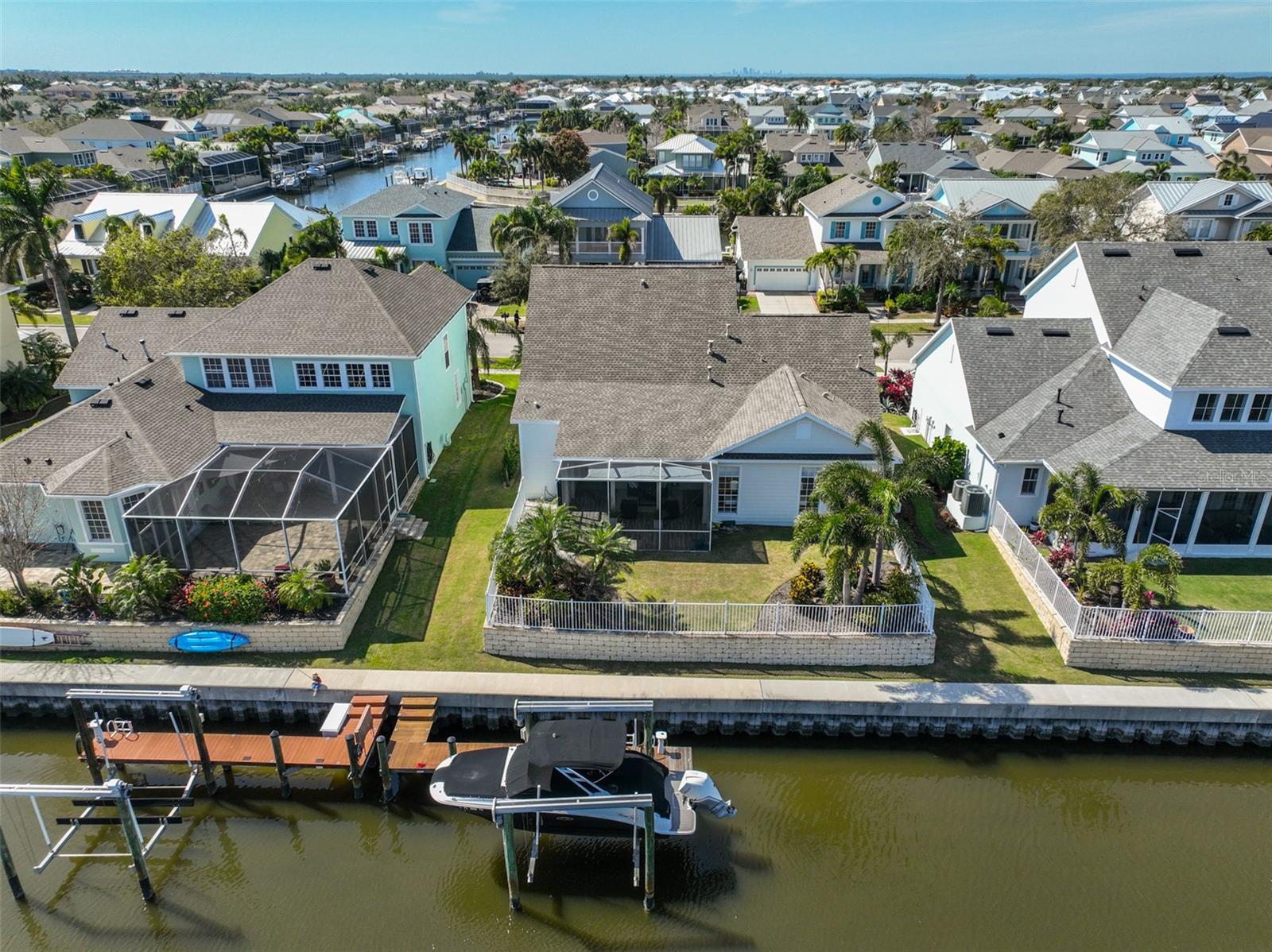 GORGEOUS WATERFRONT HOME HAS NEVER FLOODED Location - Live the ultimate coastal dream in this breathtaking custom home—perfectly nestled in the prestigious gated community of Mirabay, with stunning water views and direct access to the open waters of Tampa Bay. This 4-bedroom, 2 full bath, and 3 half-bath home sits at a rare 10-foot elevation and has never flooded—a true gem for Florida waterfront living! House - Step inside to soaring lofted ceilings, walls of natural light, and designer finishes. The gorgeous chef’s kitchen includes quartz countertops, custom wood cabinetry, designer backsplash, high-end hood, and a 5-burner gas cooktop—all crafted to impress and built to entertain. This beach inspired home was recently renovated with a new roof, AC units, water heater, new bathrooms, new flooring throughout, and premium Samsung kitchen appliances. This home delivers the perfect blend of style, security, and turnkey convenience. Boating – just steps away is your private dock with a 13,000-pound boat lift ready for sunset cruises, local dining by boat, fishing, and weekend adventures. Outside, this expansive lot offers room for a dream pool and already includes an air conditioned outdoor pool bathroom - ideal for entertaining. Elegant. Elevated. Exceptional. This is more than a home—it’s a waterfront lifestyle. Don’t miss your chance to own one of the most stunning, secure properties on the Bay!