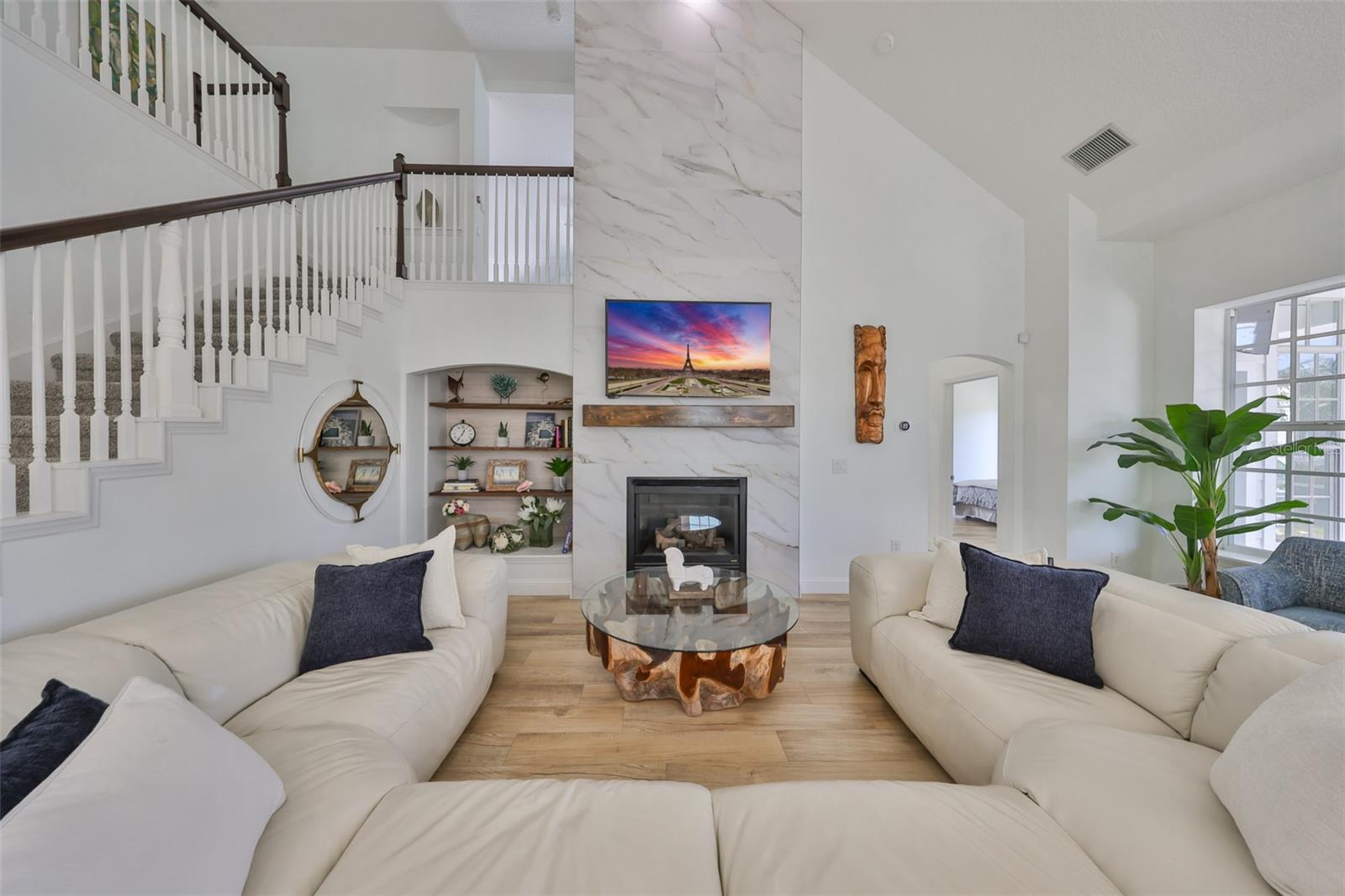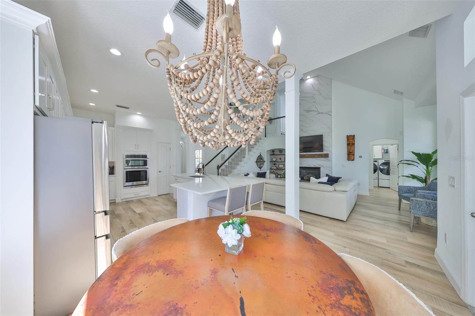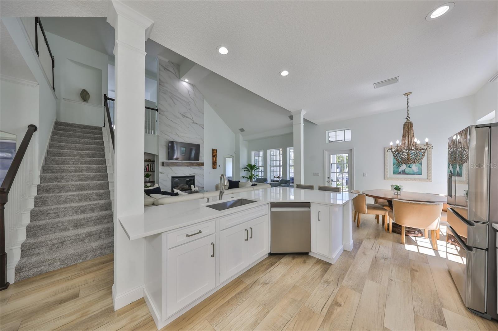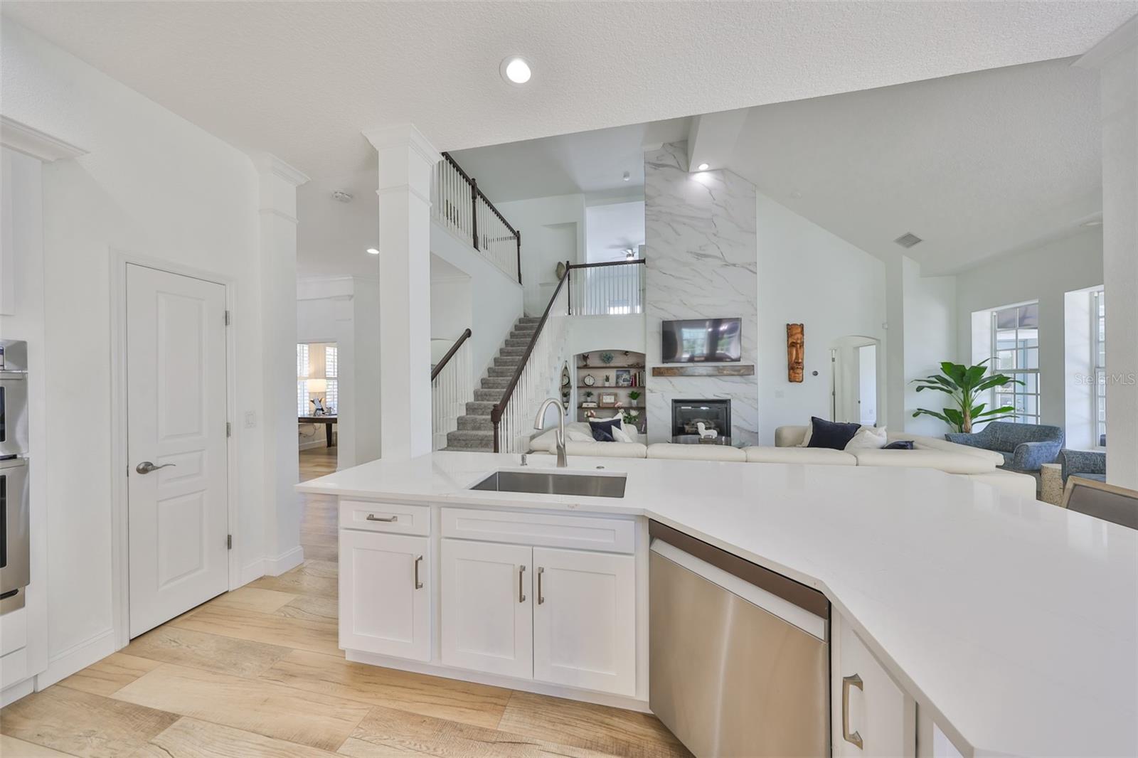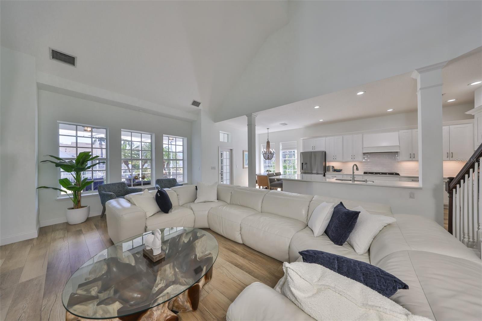 GORGEOUS WATERFRONT HOME HAS NEVER FLOODED Location - Live the ultimate coastal dream in this breathtaking custom home—perfectly nestled in the prestigious gated community of Mirabay, with stunning water views and direct access to the open waters of Tampa Bay. This 4-bedroom, 2 full bath, and 3 half-bath home sits at a rare 10-foot elevation and has never flooded—a true gem for Florida waterfront living! House - Step inside to soaring lofted ceilings, walls of natural light, and designer finishes. The gorgeous chef’s kitchen includes quartz countertops, custom wood cabinetry, designer backsplash, high-end hood, and a 5-burner gas cooktop—all crafted to impress and built to entertain. This beach inspired home was recently renovated with a new roof, AC units, water heater, new bathrooms, new flooring throughout, and premium Samsung kitchen appliances. This home delivers the perfect blend of style, security, and turnkey convenience. Boating – just steps away is your private dock with a 13,000-pound boat lift ready for sunset cruises, local dining by boat, fishing, and weekend adventures. Outside, this expansive lot offers room for a dream pool and already includes an air conditioned outdoor pool bathroom - ideal for entertaining. Elegant. Elevated. Exceptional. This is more than a home—it’s a waterfront lifestyle. Don’t miss your chance to own one of the most stunning, secure properties on the Bay!