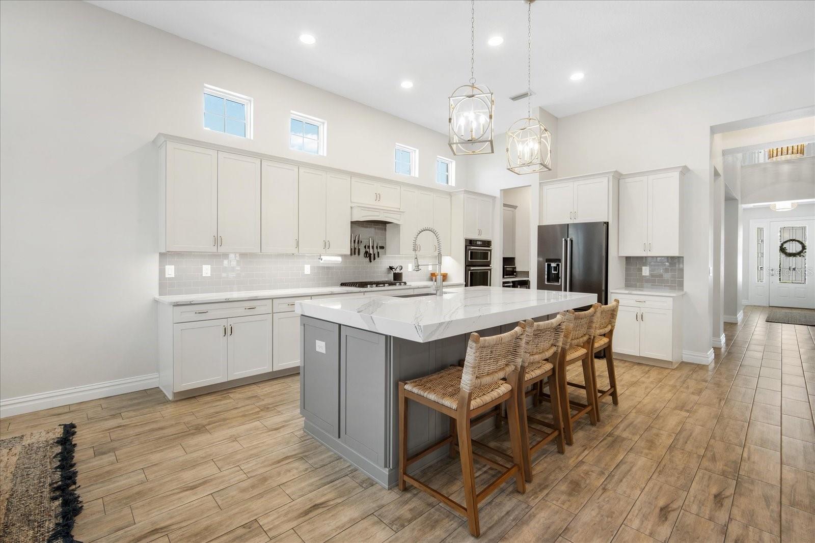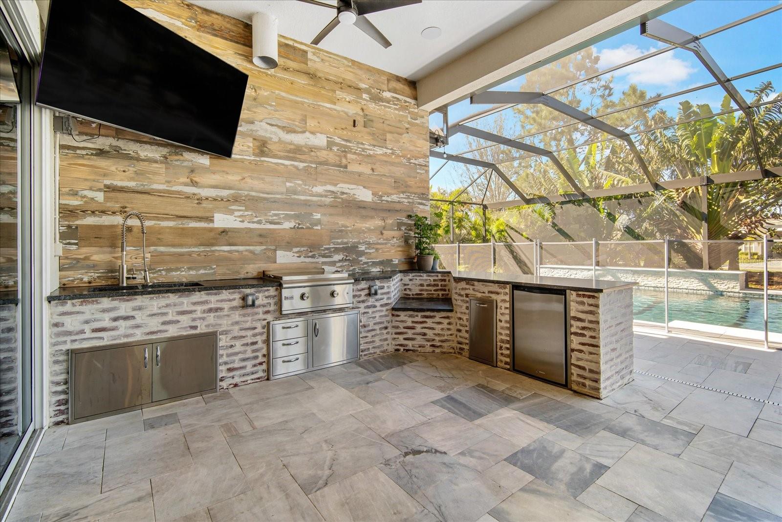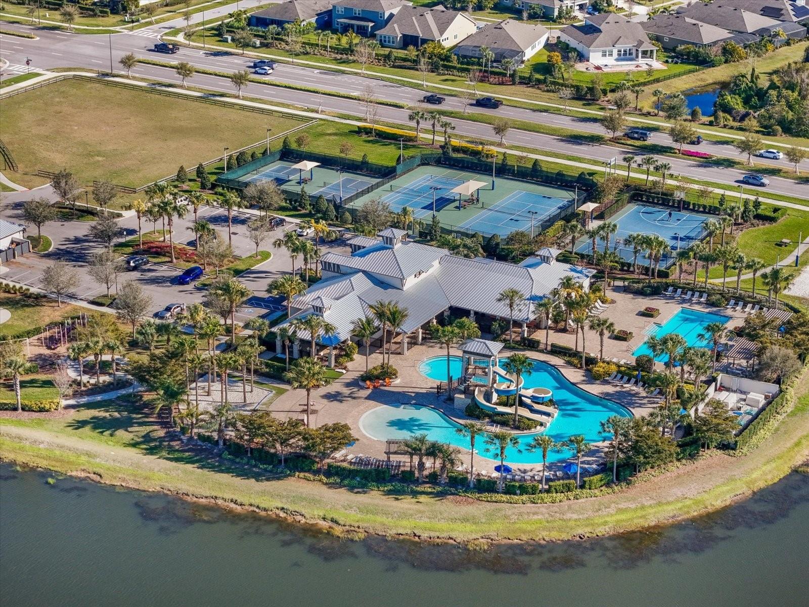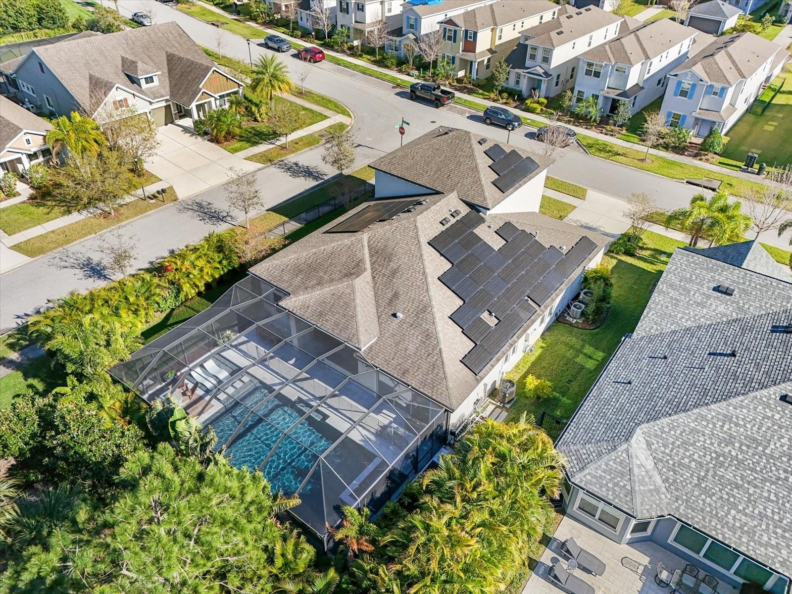 Pool Home with Outdoor Kitchen | Solar Home with Paid-Off Solar Panels | 5 Bedrooms Plus Home Office | Upgrades Throughout Come see this exceptional home in the sought-after Waterset community, where style, comfort, and modern conveniences come together in perfect harmony. Offering five spacious bedrooms, a dedicated home office, and thoughtfully designed living spaces, this home is designed to meet a variety of lifestyle needs. With stunning upgrades throughout, a sparkling heated salt water pool, and a fully equipped outdoor kitchen, this home is the perfect place to relax, entertain, and create lasting memories. The heart of the home is the open-concept living area, where natural light fills the space, enhancing the warm and inviting atmosphere. The expansive living room boasts a cozy fireplace and seamless access to the outdoor living space, creating the perfect setting for both intimate gatherings and lively entertaining. The gourmet kitchen is a chef’s dream, featuring a gas stove, built-in oven, upgraded countertops, and an oversized island with bar seating. A butler’s pantry keeps everything organized, while the breakfast nook offers views of the pool area. Designed with privacy in mind, the split-bedroom layout ensures that everyone has their own space. The first-floor primary suite is a true sanctuary, with a sliding glass door leading directly to the pool area. A barn door opens to the spa-inspired en-suite bath, showcasing dual sinks, a luxurious soaking tub, a spacious walk-in shower, and a generous walk-in closet. A private suite at the front of the home provides a welcoming retreat for in-laws, guests, or extended family members, offering both privacy and convenience. Double French doors open to a stylish home office, complete with custom built-in shelving, making it an ideal workspace for remote professionals or a quiet study area. An additional secondary bedroom and full bath are also conveniently located on the main floor, ideal for guests or multi-generational living. A well-appointed laundry room adds practicality to daily routines. Upstairs, a versatile bonus loft with built-in surround sound provides endless possibilities—whether used as a media room, game room, or additional living space tailored to your needs. This level also includes two spacious bedrooms and a full bath, creating the perfect setup for family or guests. Throughout the entire home, stylish tile with a woodlike look enhances both aesthetics and durability, ensuring effortless maintenance. Step outside to a private backyard oasis designed for year-round enjoyment. The outdoor kitchen is fully equipped with a built-in grill, sink, and mini fridge, making outdoor dining a breeze. The resort-style heated salt water pool features a sun shelf, a cascading waterfall, and a heated spa, surrounded by plenty of space for lounging and dining. A cozy outdoor seating area with a gas fireplace, making it the perfect spot for relaxing evenings. Whether hosting a summer barbecue, enjoying a quiet morning coffee, or unwinding in the evening, this outdoor space provides the perfect backdrop for relaxation and entertainment. Located in the sought-after Waterset community, residents enjoy top-tier amenities, including a fitness center, multiple sports courts, multiple pools, parks, playgrounds, scenic lakes, and over 12 miles of trails, including a Fit Trail. With its prime location in Waterset and an array of upgraded features, this home is truly a must-see.