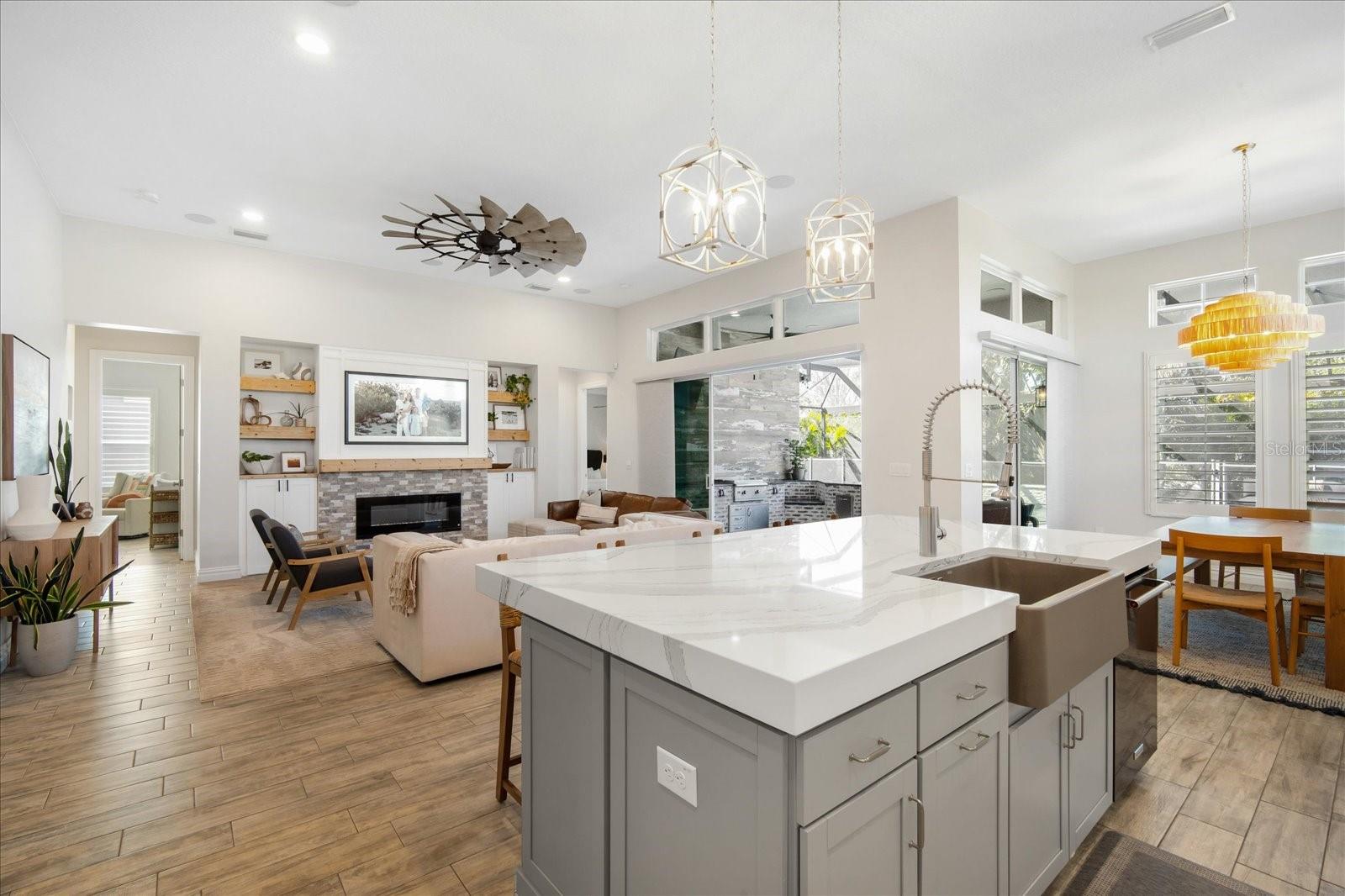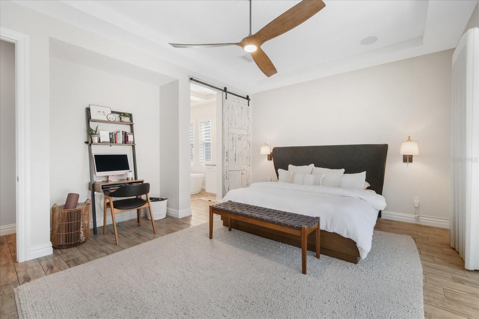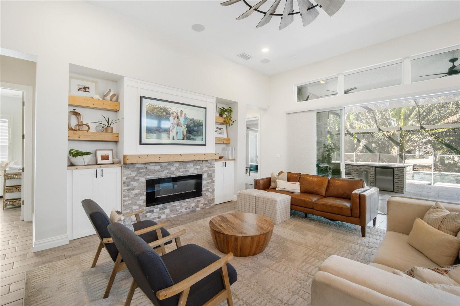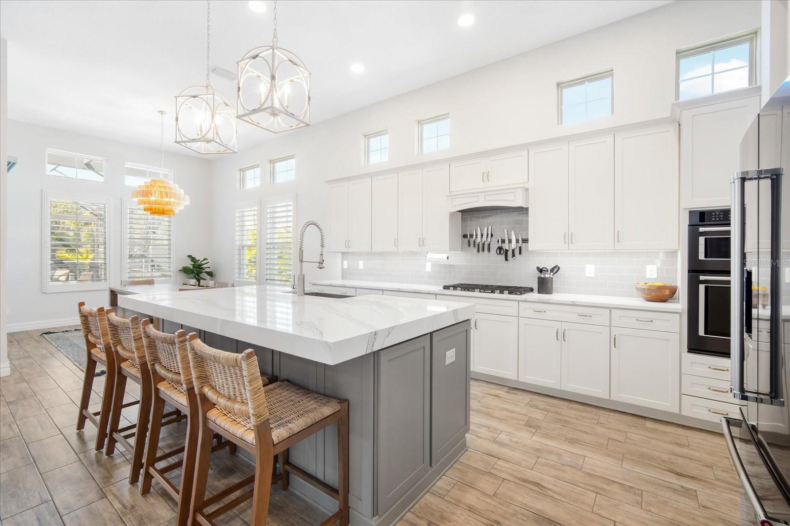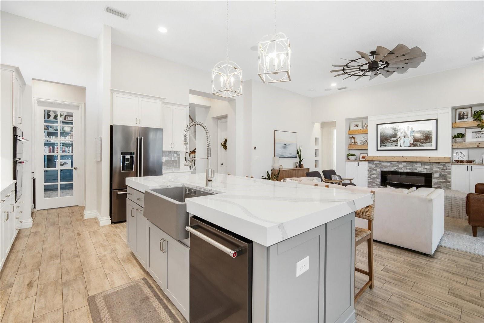 Pool Home with Outdoor Kitchen | Solar Home with Paid-Off Solar Panels | 5 Bedrooms Plus Home Office | Upgrades Throughout Come see this exceptional home in the sought-after Waterset community, where style, comfort, and modern conveniences come together in perfect harmony. Offering five spacious bedrooms, a dedicated home office, and thoughtfully designed living spaces, this home is designed to meet a variety of lifestyle needs. With stunning upgrades throughout, a sparkling heated salt water pool, and a fully equipped outdoor kitchen, this home is the perfect place to relax, entertain, and create lasting memories. The heart of the home is the open-concept living area, where natural light fills the space, enhancing the warm and inviting atmosphere. The expansive living room boasts a cozy fireplace and seamless access to the outdoor living space, creating the perfect setting for both intimate gatherings and lively entertaining. The gourmet kitchen is a chef’s dream, featuring a gas stove, built-in oven, upgraded countertops, and an oversized island with bar seating. A butler’s pantry keeps everything organized, while the breakfast nook offers views of the pool area. Designed with privacy in mind, the split-bedroom layout ensures that everyone has their own space. The first-floor primary suite is a true sanctuary, with a sliding glass door leading directly to the pool area. A barn door opens to the spa-inspired en-suite bath, showcasing dual sinks, a luxurious soaking tub, a spacious walk-in shower, and a generous walk-in closet. A private suite at the front of the home provides a welcoming retreat for in-laws, guests, or extended family members, offering both privacy and convenience. Double French doors open to a stylish home office, complete with custom built-in shelving, making it an ideal workspace for remote professionals or a quiet study area. An additional secondary bedroom and full bath are also conveniently located on the main floor, ideal for guests or multi-generational living. A well-appointed laundry room adds practicality to daily routines. Upstairs, a versatile bonus loft with built-in surround sound provides endless possibilities—whether used as a media room, game room, or additional living space tailored to your needs. This level also includes two spacious bedrooms and a full bath, creating the perfect setup for family or guests. Throughout the entire home, stylish tile with a woodlike look enhances both aesthetics and durability, ensuring effortless maintenance. Step outside to a private backyard oasis designed for year-round enjoyment. The outdoor kitchen is fully equipped with a built-in grill, sink, and mini fridge, making outdoor dining a breeze. The resort-style heated salt water pool features a sun shelf, a cascading waterfall, and a heated spa, surrounded by plenty of space for lounging and dining. A cozy outdoor seating area with a gas fireplace, making it the perfect spot for relaxing evenings. Whether hosting a summer barbecue, enjoying a quiet morning coffee, or unwinding in the evening, this outdoor space provides the perfect backdrop for relaxation and entertainment. Located in the sought-after Waterset community, residents enjoy top-tier amenities, including a fitness center, multiple sports courts, multiple pools, parks, playgrounds, scenic lakes, and over 12 miles of trails, including a Fit Trail. With its prime location in Waterset and an array of upgraded features, this home is truly a must-see.