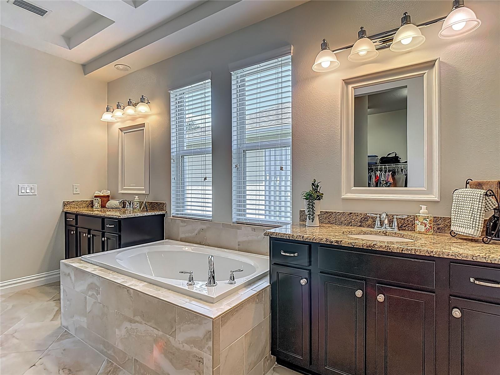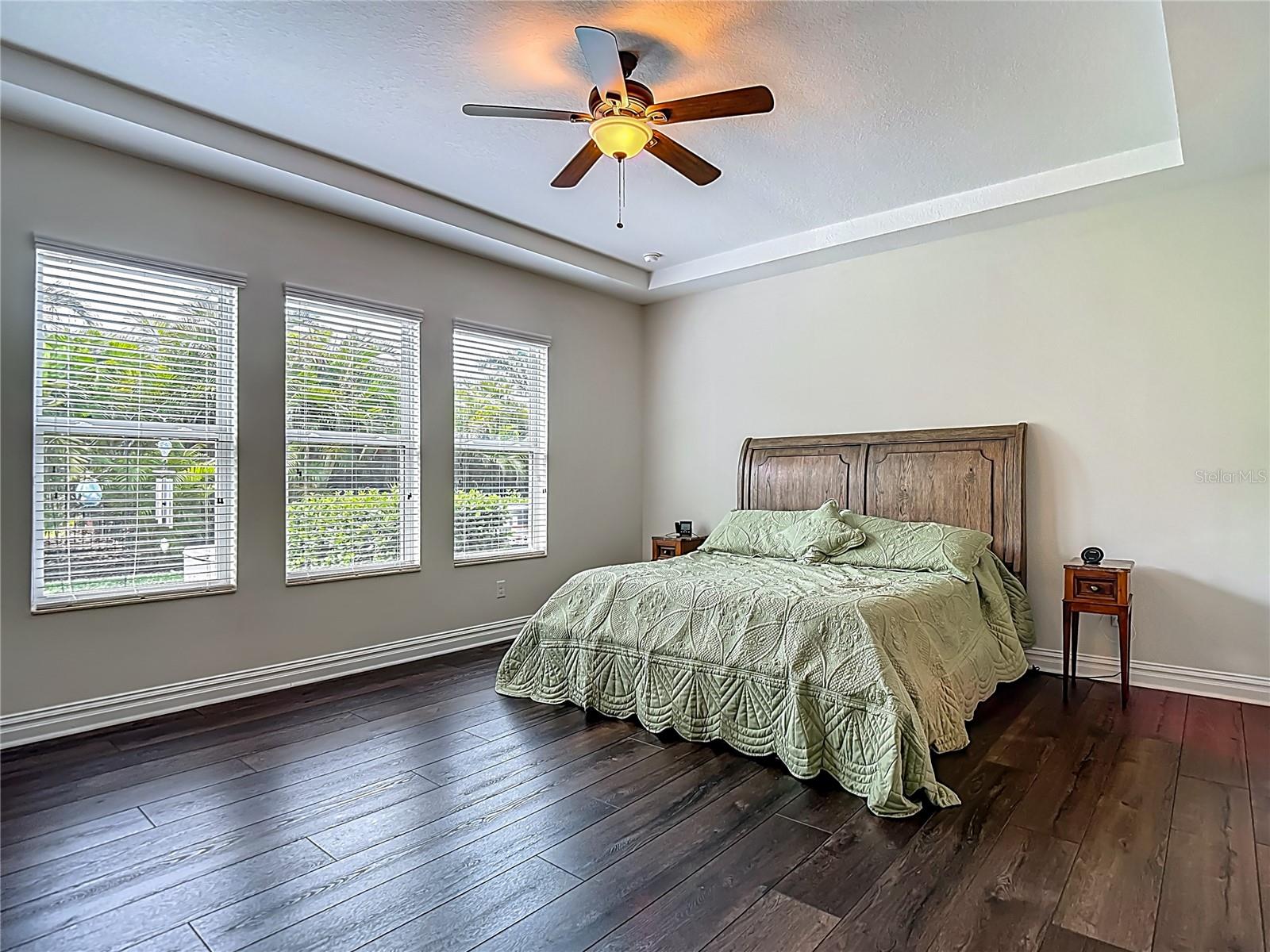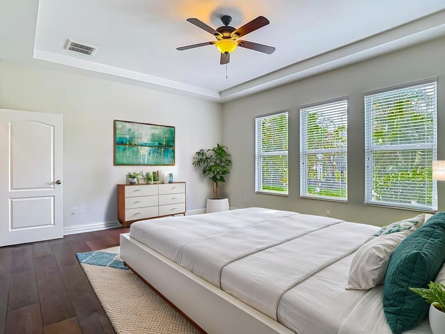 One or more photos has been virtually staged. Welcome Home to This Beautifully Upgraded Cardel-Built Gem! This stunning 4-bedroom, 4-bathroom home with a 3-car garage, dedicated office/den (or optional 5th bedroom), and a spacious bonus room is located on a quiet street in one of the area's most sought-after neighborhoods. With fresh exterior paint, upgraded landscaping, and exceptional curb appeal, this home offers both style and substance. Step inside to a grand foyer with a tray ceiling, setting the tone for the luxury and space throughout. The open-concept family room features triple sliders and transom windows that flood the space with natural light and provide beautiful views of the covered lanai. The gourmet kitchen includes upgraded stainless steel gas appliances, stone countertops, custom cabinetry, and a sunny eat-in area perfect for casual dining. The home’s unique 4-way split floor plan is ideal for privacy and flexibility. Three bedrooms and three full baths are located on the main floor—including a generously sized primary suite—while the fourth bedroom, full bath, and oversized bonus room are tucked away upstairs, perfect for guests or multi-generational living. Highlights and upgrades include: 65X132 Lot!!!, New roof and new HVAC, New Luxury vinyl plank flooring throughout, Faux wood blinds and transom windows, Ring doorbell and security camera system, Updated Tankless water heater, Whole-house Generac generator, Added pavers, irrigated planter, and full landscape lighting, Fully fenced yard, added gutters, Extra refrigerator and freezer in the laundry room, Washer and dryer included. This meticulously maintained home offers a rare combination of elegance, comfort, and thoughtful upgrades. Don’t miss your opportunity to own this incredible property—schedule your private showing today!