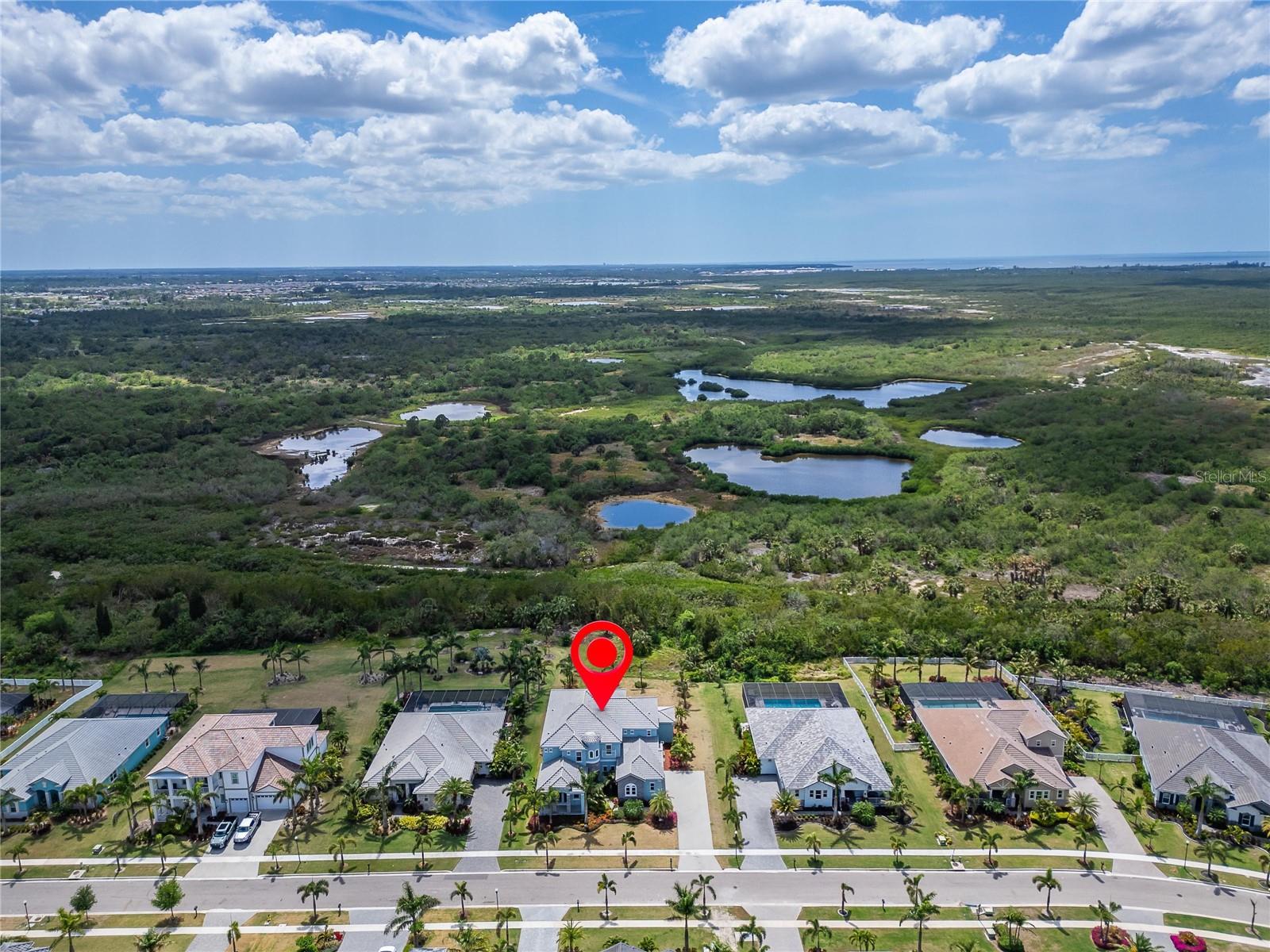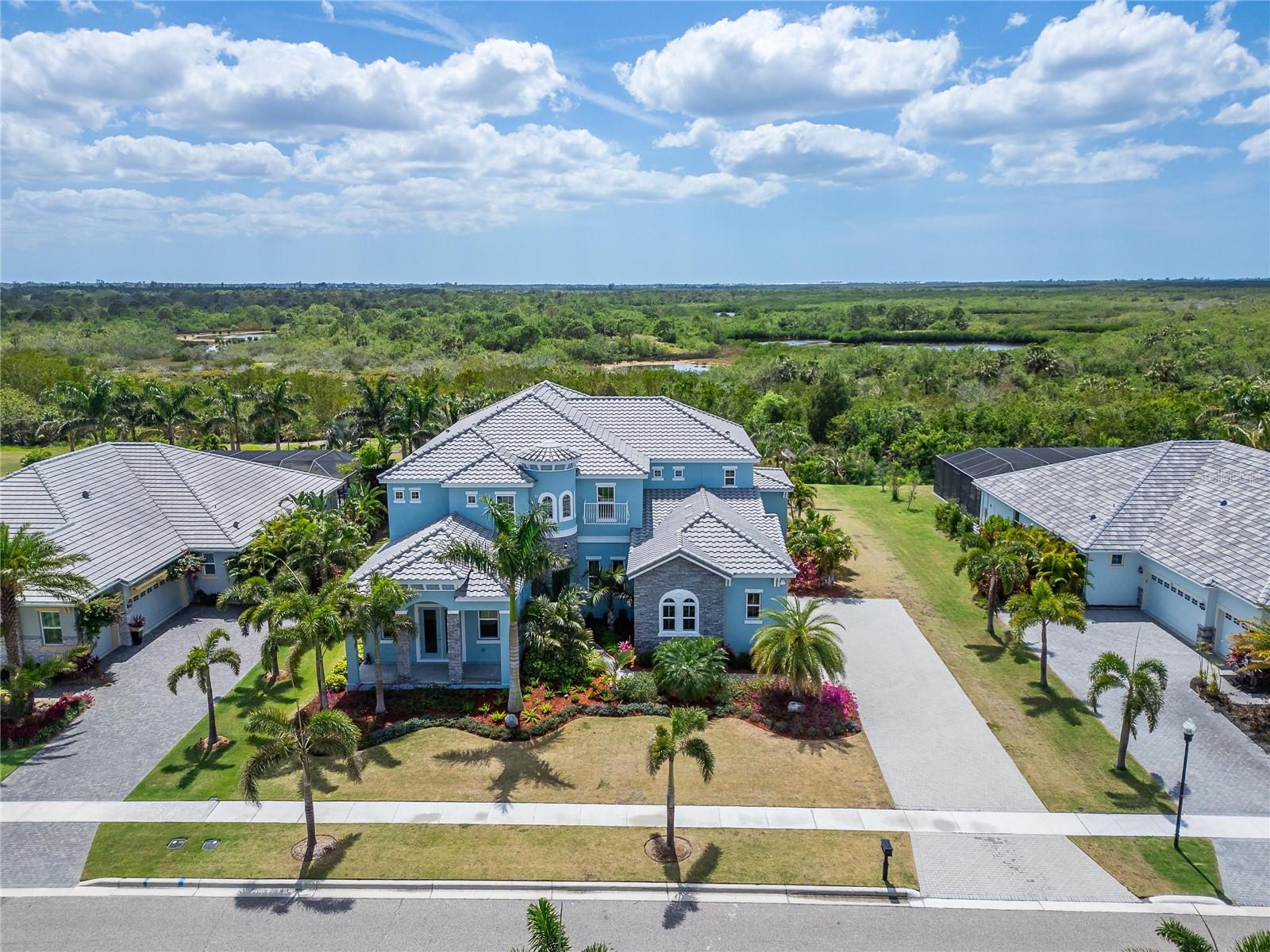 814 Manns Harbor Blvd | 6 Beds | 6 Baths | 5,861 Sq Ft | 100’ Lot | Bay Estates at MiraBay Welcome to 814 Manns Harbor Blvd, a one-of-a-kind custom home in the exclusive Bay Estates area of MiraBay—SouthShore’s premier gated waterfront community. Perfectly situated on a rare 100-foot-wide conservation lot with no rear neighbors, this 6-bedroom, 6-bathroom, 5,861 sq ft residence offers exceptional privacy, luxury, and unobstructed views of the Wolf Creek Nature Preserve. Built in 2022 to current hurricane codes, this home features storm-rated impact windows and doors, a premium tile roof valued at over $100,000, and remained high and dry during recent storms—making it a smart and secure investment. From the upper balcony, enjoy show-stopping sunsets stretching across Tampa Bay and the Skyway Bridge—an everyday masterpiece. Inside, the thoughtfully designed open floor plan is filled with natural light from soaring ceilings and oversized windows. Flexible spaces include a formal office, formal dining room, upstairs bonus/game loft with a private balcony, and a home theater. Each bedroom includes its own ensuite full bath for ultimate comfort and privacy. The chef’s kitchen features high-end appliances, a pass-through bar, tall cabinetry, dual sinks, granite countertops, a walk-in pantry, and a large center island—ideal for hosting and gathering. The downstairs primary suite is a true retreat with a sitting area, two walk-in closets, and a spa-style bathroom with dual vanities, a soaking tub, and a walk-in shower. A second bedroom and full laundry room are also located on the main level, with another full laundry room upstairs. Step outside to your expansive screened lanai and enjoy true Florida living with uninterrupted views of nature. The oversized 3.5-car side-entry garage and extended driveway provides plenty of space for vehicles, a golf cart, or additional storage. Living in MiraBay means access to world-class amenities including two heated pools, clubhouse, 24-hour fitness center, tennis, pickleball, basketball courts, spa, café, social events, and miles of trails and waterways. It’s a golf-cart-friendly community, ideally located near beaches, dining, shopping, and major commuter routes to Tampa and St. Pete. Don’t miss this rare opportunity to own a fully upgraded, hurricane-strong custom home on one of the most best streets in Apollo Beach. Schedule your private showing today.