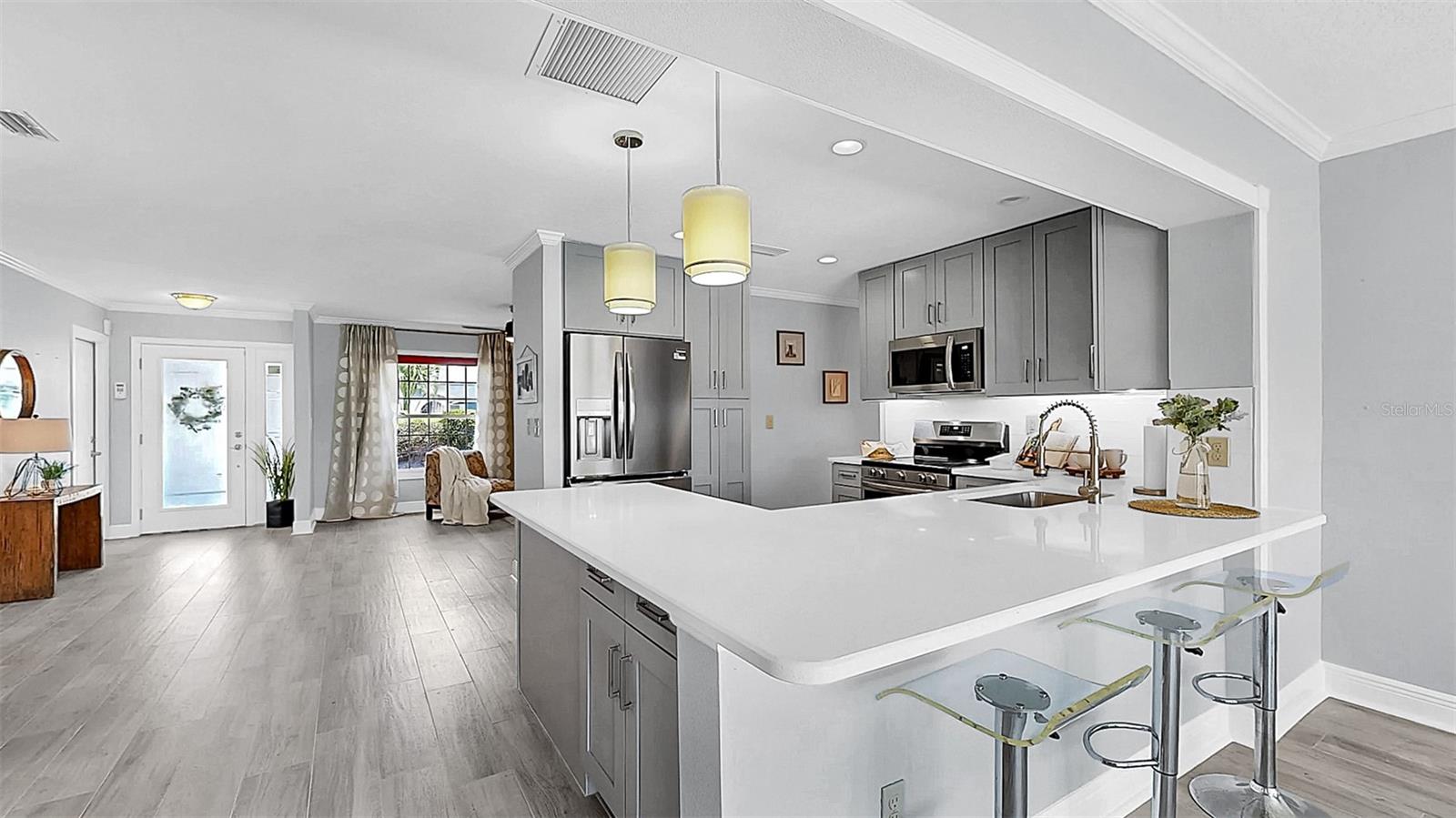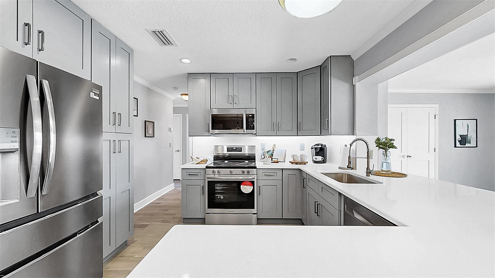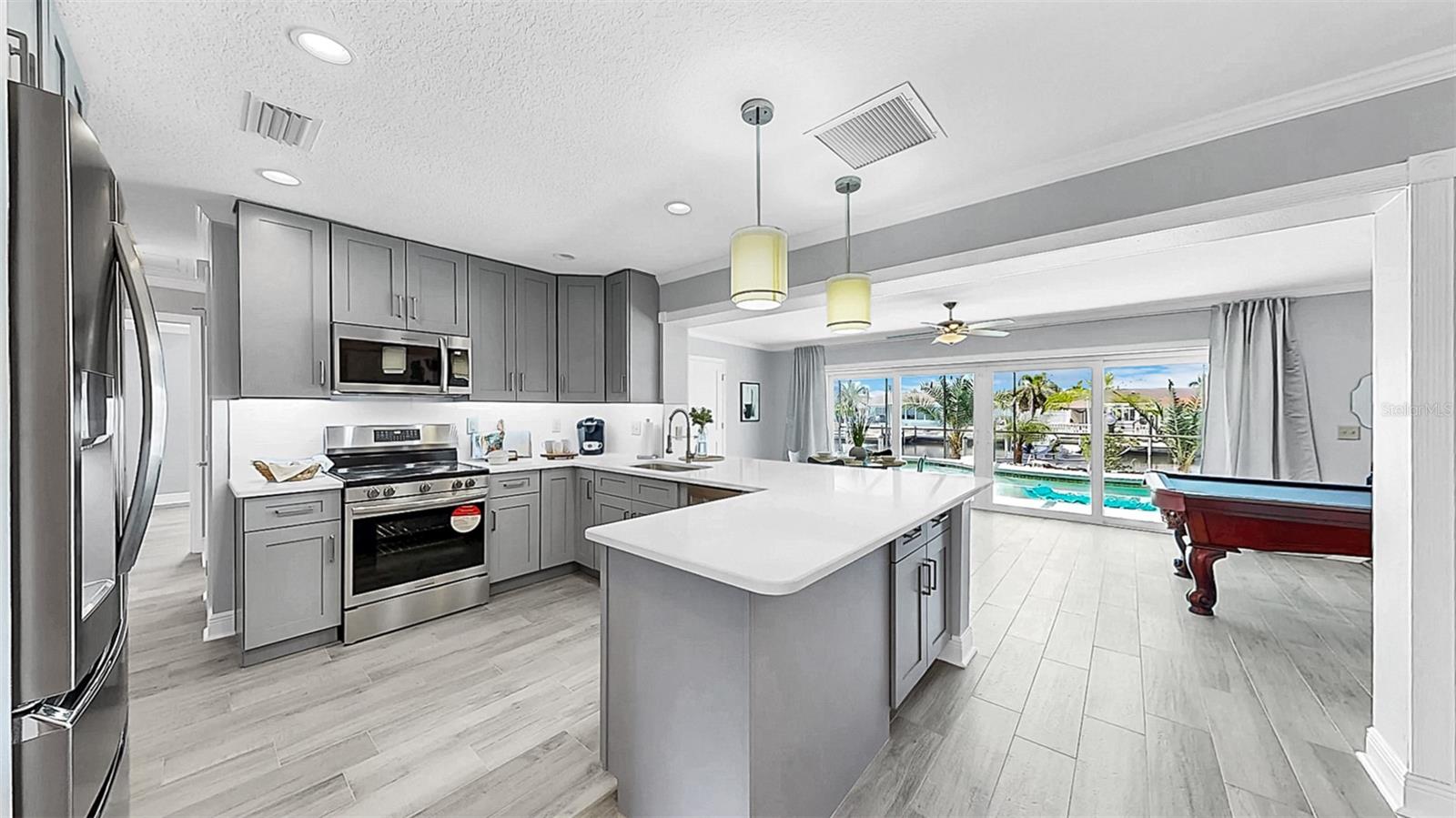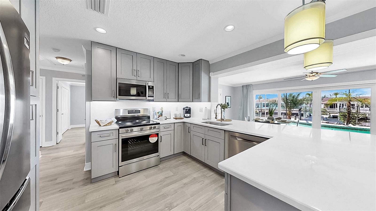 Waterfront luxury in Apollo Beach with NO HOA, NO CDD, and direct access to Tampa Bay and the Gulf of Mexico! This fully remodeled 4-bedroom, 2-bathroom block home offers 2,767 total sq ft (2,118 heated) on a nearly quarter-acre (just a few inches shy!) lot on the deep saltwater East Liga Canal with no fixed bridges. Bask in endless sunsets, breathe in the salty air, and soak up views so stunning you’ll wonder if you’ve stepped into a postcard. Even better? The home faces north—so you won’t be blasted with those intense sunrise rays first thing in the morning. Instead, enjoy gorgeous, golden-hour sunsets every evening from your deck or screen-enclosed pool. Pure Florida magic. This home is fully equipped for coastal living with a brand-new dock featuring water and electric, a boat lift, two concrete davit pads, and a concrete seawall—perfect for your boating lifestyle. The screened pool area also includes a paver sun deck, ideal for fire pit nights, lounging, or full-on sun goddess mode. The fully fenced yard includes two gates for easy access, lush tropical landscaping with plush, low-maintenance seashell and rock beds, and a gutter system to protect your investment. The circular driveway fits six vehicles (or several golf carts—which you can totally register here), making it a breeze to zip over to local waterfront spots like Circles, Fins, the marina, and more. Need a caffeine fix or something stronger? You’re close to Starbucks, Dunkin’, Publix, local banking, liquor stores, meat markets, and even a local tennis club and fishing clubs. Seriously, the lifestyle here is dialed in. Inside, the home offers two spacious main living areas—use them as a family room and living room, or transform one into a game room or flex space depending on your needs. Enjoy a split-bedroom floorplan with brand-new tile flooring, crown molding, recessed lighting, and hurricane-impact windows and front door that may offer serious insurance savings. The oversized 2-car garage includes side storage access. BRAND NEW KITCHEN is every chef's dream with quartz countertops, soft-close cabinetry with custom hardware, under-cabinet lighting, stainless steel appliances, double Lazy Susans, pull-out shelves, pantry storage, and sleek pendant lights. The primary suite features double-door entry, walk-in closet, dual quartz vanities, expanded counter space, designer tile, and a glass-enclosed walk-in shower. Each bedroom includes ceiling fans, blinds, and oversized closets. The 4th bedroom/flex space with French doors and dual closets is ideal for an office, in-law suite, guest room, or second primary En-suite—and yes, this home would make an amazing Airbnb. Upgrades? We’ve got them: Brand-new water heater (May 2025), Brand New Pool Pump (2025) New AC system (June 2025), NEW ROOF (Dec 12, 2023), BRAND NEW WASHER/DRYER, fresh interior and exterior paint {2025}, and an assumable flood policy (pending approval). Local boat ramps less than a mile away make loading/unloading your boat a breeze. Boat commute to MacDill AFB (authorized personnel only—don’t test it!), Channelside, Tampa General, or cruise the bay. You’re also close to the Port of Tampa, Tampa International Airport, just 40 minutes to Anna Maria Island, and 1.25 hours to Disney, easy commute to I-75, Selmon Exp, St.Pete, Hard Rock Casino, etc. And yes—you can fish from your own dock in your own backyard. Book your private tour today and claim your slice of Florida waterfront heaven. FREE KEY WITH PURCHASE!
