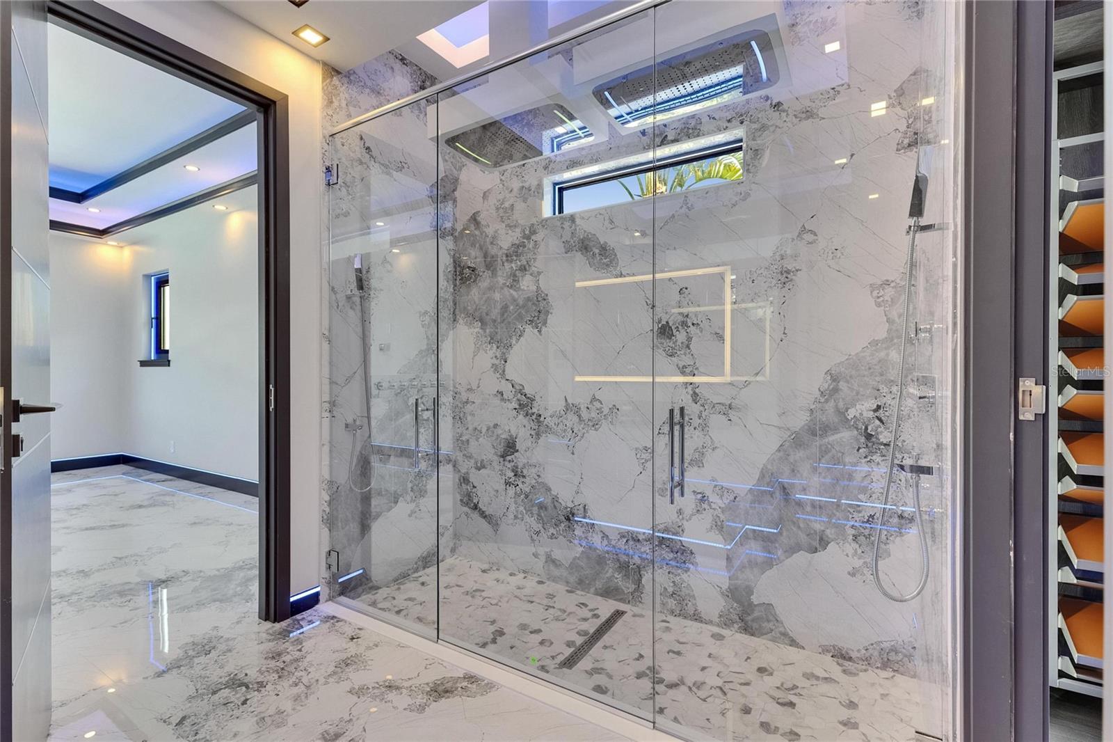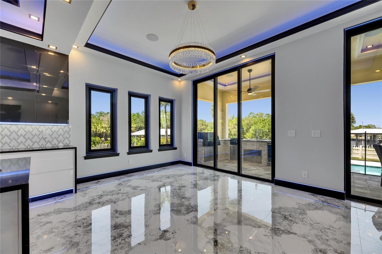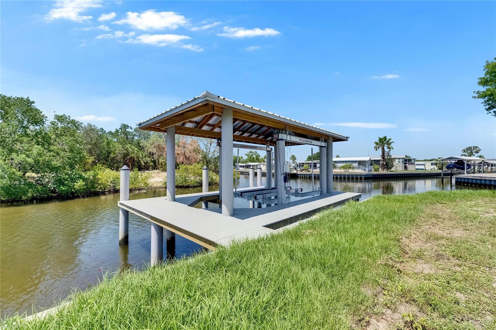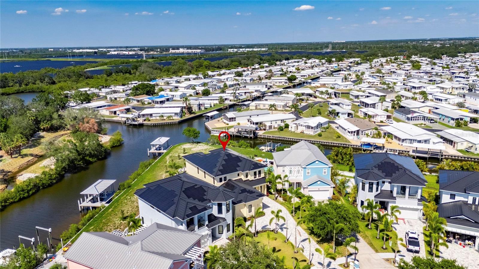 6522 Simone Shores Circle | The Voyager Floorplan 7 Beds | 4.5 Baths | Butlers Prep Kitchen + Media Room | 3-Car Garage + Golf Cart Bay | 12 ft Elevation Welcome to 6522 Simone Shores Circle in Hemingway Estates, Apollo Beach. This custom 2024 waterfront home by Bistro Builders offers 7 bedrooms, 4.5 bathrooms, a media room, and a spacious 3-car garage with golf cart bay and elevated storage platform all under air conditioning. Built for strength and efficiency, the home features solid block construction on all levels, a stem wall foundation, 12-foot elevation, and cement flooring between stories. Construction includes hurricane-rated impact windows, seamless fire-rated doors, spray foam insulation, and insulated garage doors. The oversized garage features multi-layer epoxy flooring and built-in elevated storage. The extra long driveway is finished in brick pavers, framed by tropical landscaping, and leads to a covered front entry. Inside, the home is fully equipped with a smart system controlling lighting, pool, solar, security, climate, and garage functions via smartphone or mounted iPads. Custom lighting is installed throughout soffits, windows, baseboards, and stair rails. A built-in sound system is integrated throughout the home, lanai, and garage. Entry is secured through fingerprint and facial recognition technology. The kitchen features quartz countertops, a waterfall island with seating, a gas stove with pot filler, wine fridge, high-end appliances, and two-tone European-style cabinetry with pull-down storage. A full butler’s prep kitchen includes a second sink, refrigerator, and additional cabinetry. The open dining area leads directly to the back lanai, blending indoor and outdoor living. The first-floor primary suite includes canal views, direct lanai access, and a walk-in closet with a European organization system. The ensuite bath includes dual vanities, a jetted soaking tub, and a large walk-in shower with multiple customizable rainfall heads and full floor-to-ceiling tile. A second bedroom and full bath are also on the main leve. Upstairs, five additional bedrooms include custom closets, and two are connected by a Jack-and-Jill bath. A flexible bonus room offers space for a playroom, gym, or lounge or media/theater room. The balcony overlooks the water and pool providing a cozy breezy spot for relaxing. The heated saltwater pool and spa are surrounded by an oversized lot with fresh landscaping. The main floor living area opens up to the back covered lanai with a fully equipped outdoor kitchen, built-in grill, and wine fridge. The dock includes a 10,000 lb covered lift and direct access to Tampa Bay. Hemingway Estates is an elevated coastal community that has remained high and dry through historic storms. The low monthly HOA includes lawn care, seawall maintenance, common area landscaping, irrigation repairs, and annual stormwater drain cleaning. 6522 Simone Shores Circle combines high-performance construction, future-ready smart tech, luxury finishes, and direct boating access—designed for modern Florida living.