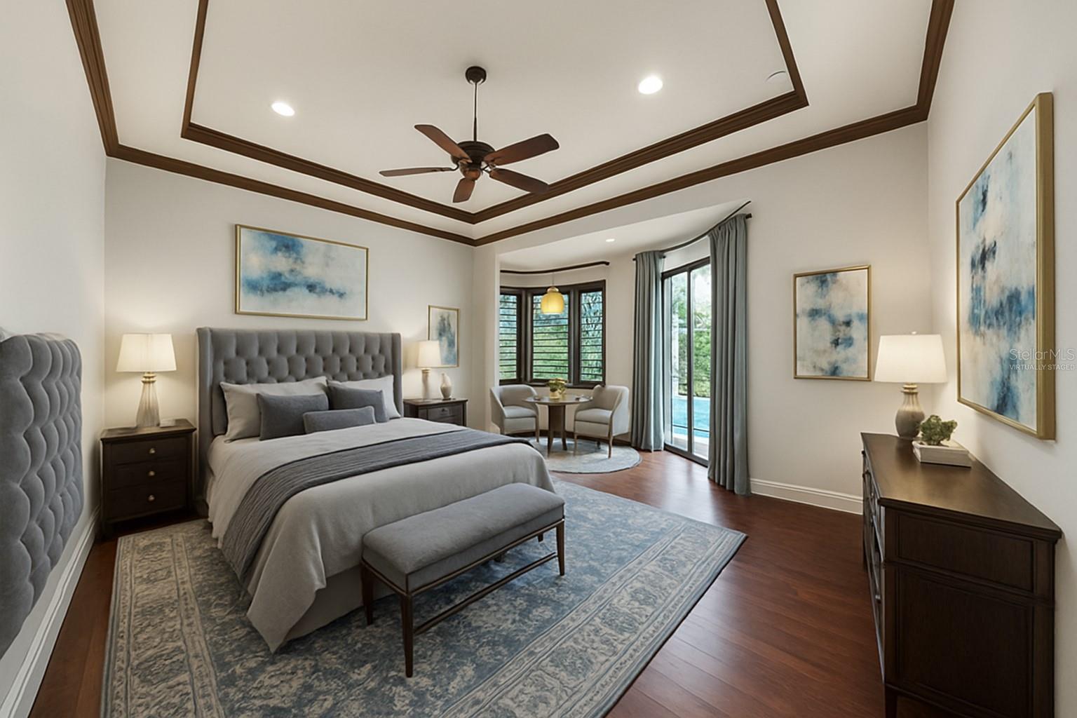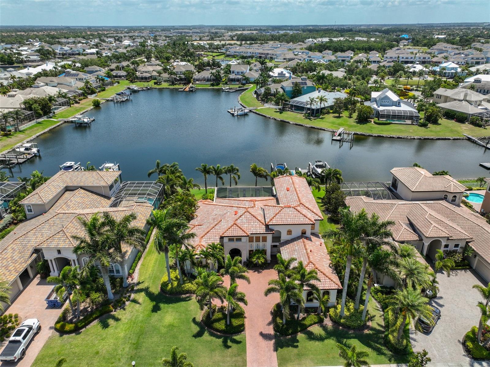 One or more photo(s) has been virtually staged. SELLER MUST SELL & HIGHLY MOTIVATED!! Seller will contribute 20k towards buyer’s closing cost if closing occurs by Jan 28. SNOWBIRD/END OF YEAR SPECIAL ON A RARE HOME LISTED FAR UNDER MARKET VALUE!! Experience the epitome of luxury living in this stunning waterfront Spanish Mediterranean home, meticulously crafted by John Cannon’s Executive Series. Nestled in the prestigious Bay Estate of Mirabay, this residence showcases breathtaking manicured landscaping featuring vibrant pink bougainvilleas, towering palms, and a grand pavered driveway that exudes an enchanting curb appeal. Step through the grand double doors and be transported to a Mediterranean charm and beyond. Every inch of this home is a masterpiece, with artistic hand-painted accents throughout. Soaring ceilings, classical columns, exposed wood beams, and intricate crown molding create an ambiance of timeless elegance. Rich Brazilian cherry hardwood floors and authentic Mexican terracotta tiles set a warm, inviting tone. Fully renovated gourmet kitchen is a culinary dream, boasting dark, luxurious cabinets, Brazilian granite countertops, a genuine copper sink, a massive island, state-of-the-art appliances, and a spacious coffee bar/pantry with a beautifully hand-carved Turkish wooden door. Large family room invites you to gather with loved ones, featuring a built-in bar ideal for crafting the perfect cocktail and creating joyful moments with guests. This space is designed for relaxed entertaining and memorable gatherings. Magnificent master suite, featuring a generous sitting area with bay windows, sliding doors to the covered lanai and pool, tray ceilings with double crown molding, and two expansive California closets. Spa-like master bath offers dual vanities, a garden tub as a focal point, and a large walk-around shower, creating a private sanctuary. On the opposite wing, discover two sizable bedrooms with elegant bathrooms, and a convenient laundry room. Notice the custom hand-carved risers as you head upstairs, where you will find a versatile bonus room with balcony access offers stunning views of the sprawling lagoon, while an additional guest suite with its own private balcony provides comfort and privacy for visitors. Other features include impact windows that offer panoramic views, while providing peace of mind during storms. Upgraded lighting and ceiling fans throughout creates a warm and inviting ambiance, accentuating the exquisite finishes and elegant architecture. Relax and unwind in the serene pool and jacuzzi overlooking the water, or enjoy the multiple outdoor sitting areas. Cozy up by the outdoor fireplace in cooler months or host unforgettable gatherings in the outdoor kitchen and grill area. Included with the property is a meticulously maintained 27-foot Crownline boat, a 2003 model that has recently undergone a complete rebuild. A powerful 10,000-pound boat lift is also included, providing secure and easy mooring for your vessel. Whether you’re hosting gatherings, enjoying mornings on the water, this property offers the perfect combination of elegance, functionality, and recreational opportunity. Located within the Mirabay community, you'll have access to a host of amenities for every family member—tennis, pickleball, resort-style pools, a large lagoon for water sports, dog parks, playgrounds, and more. This exquisite home offers the perfect blend of artistic elegance, modern luxury, and vibrant community life—an extraordinary place to call home.