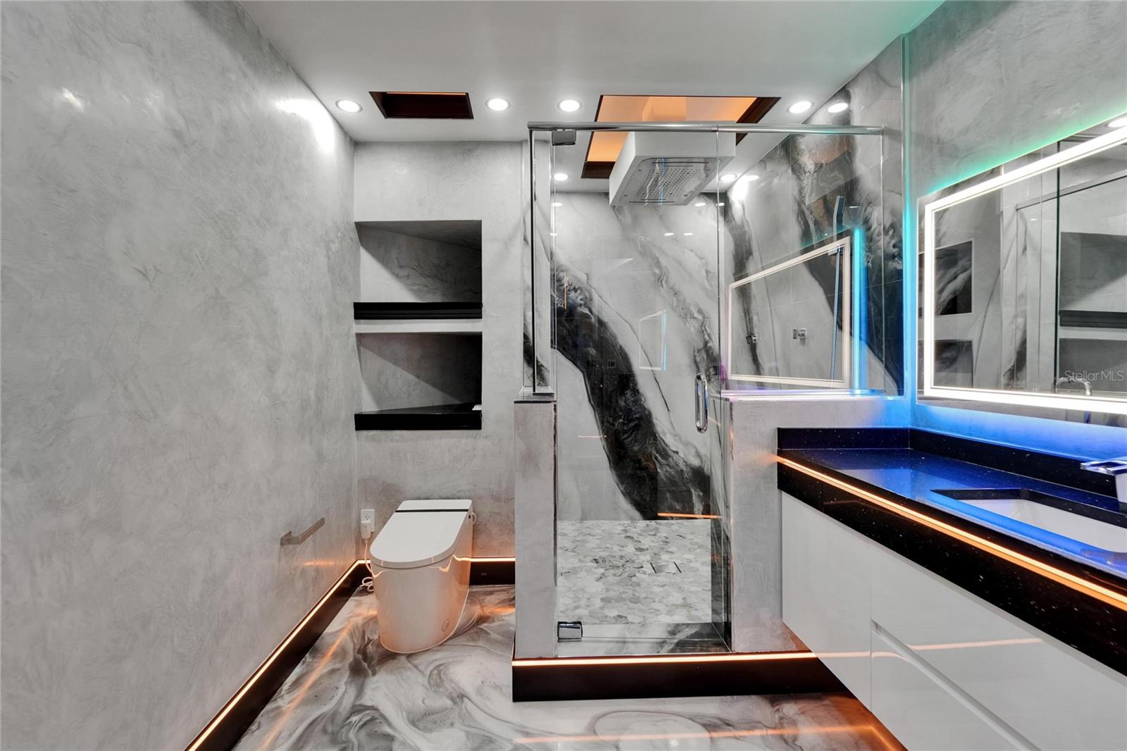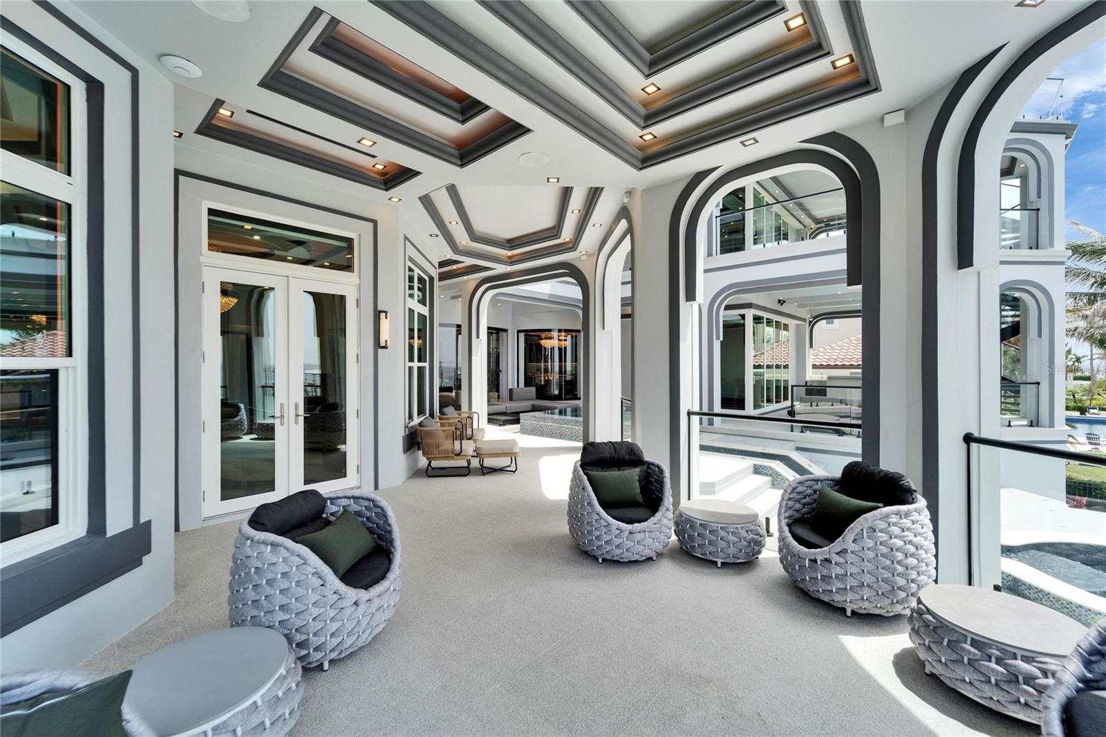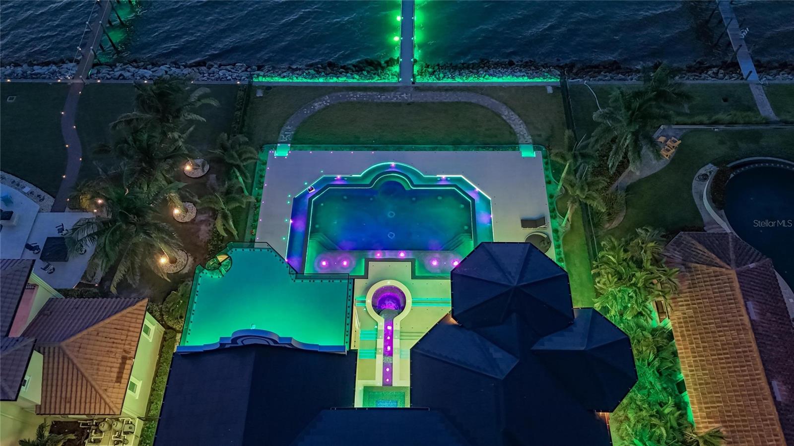 6526 Surfside Blvd | 7 Beds | 8 Baths | 12,700+ Sq Ft Living | 3,000+ Sq Ft Storage | Solar Powered by Tesla Solar Shingles | Private Dock | Direct Bay Access Welcome to 6526 Surfside Blvd, Apollo Beach’s most iconic waterfront estate—designed for those who want room to live, entertain, work, and grow. With over 12,700 square feet of living space and nearly 3,000 additional square feet of climate-controlled storage, this custom-built, hurricane-rated home delivers unmatched flexibility and performance, inside and out. Built on over 12 feet of elevation, with stem wall and solid block construction, this property offers both peace of mind and future-proof design. From the moment you arrive, the gated entry, oversized paver driveway, and lush tropical landscaping set the tone. The private dock offers direct Tampa Bay access for boating, paddleboarding, or fishing from your backyard. Retractable full corner-pocket sliders on both levels open the entire home to panoramic views of the Bay. Views of Tampa to the right and St Pete to the left while capturing stunning sunrises, breezes, and sunsets. This home is as smart as it is spacious, with energy-efficient insulation, hurricane-rated noise-reduction windows and doors, a hardwired internal/external security system, seamless fire-rated hardware, and solar-powered design. The outdoor kitchen includes a retractable TV, gas grill, and custom lighting—perfect for weekend cookouts or hosting under the stars. Inside, there are 7 full-size bedrooms and 8 bathrooms, plus a mix of flexible-use spaces: media room, home office, in-law suites, lounges, or additional guest quarters—whatever your needs, this home adapts. The main kitchen is built to host, with a massive island, gas cooktop, double ovens, butler’s pantry, freezer, wine fridge, and high-end appliances throughout. A formal dining space with a built-in wine wall creates a showpiece moment for dinners and entertaining. The primary suite is located on the main floor with bay views, private pool access, a serene sitting area, and a spa-inspired bath featuring a jetted tub, walk-in rain shower, dual vanities with built in smart screen, and a custom closet with center island and dressing area. Two secondary bedrooms also provide private ensuite bathrooms. Additional bedrooms upstairs are spacious, modern, and share access to expansive wraparound balconies with glass railing and glass floor panels for a dramatic look down to the outdoor living space. Other standout features include: Fully furnished with high end- custom Bentley furniture Tesla charging stations Garage parking for up to 10 vehicles, with workshop and gear storage areas Custom home theater with recliners for 10, full surround sound, and projector Wet bar and lounge on upper level Washer and dryer on both floors Multiple balconies with unobstructed views of Downtown Tampa and St. Pete All of this sits within a tight-knit, waterfront community, minutes from local restaurants, beaches, schools, and commuter routes. This isn’t just another large home on the water—6526 Surfside Blvd is a one-of-a-kind Florida lifestyle property built for multi-generational living, serious entertaining, and long-term peace of mind. If you’ve been searching for something truly extraordinary in the Tampa Area—this is it.
