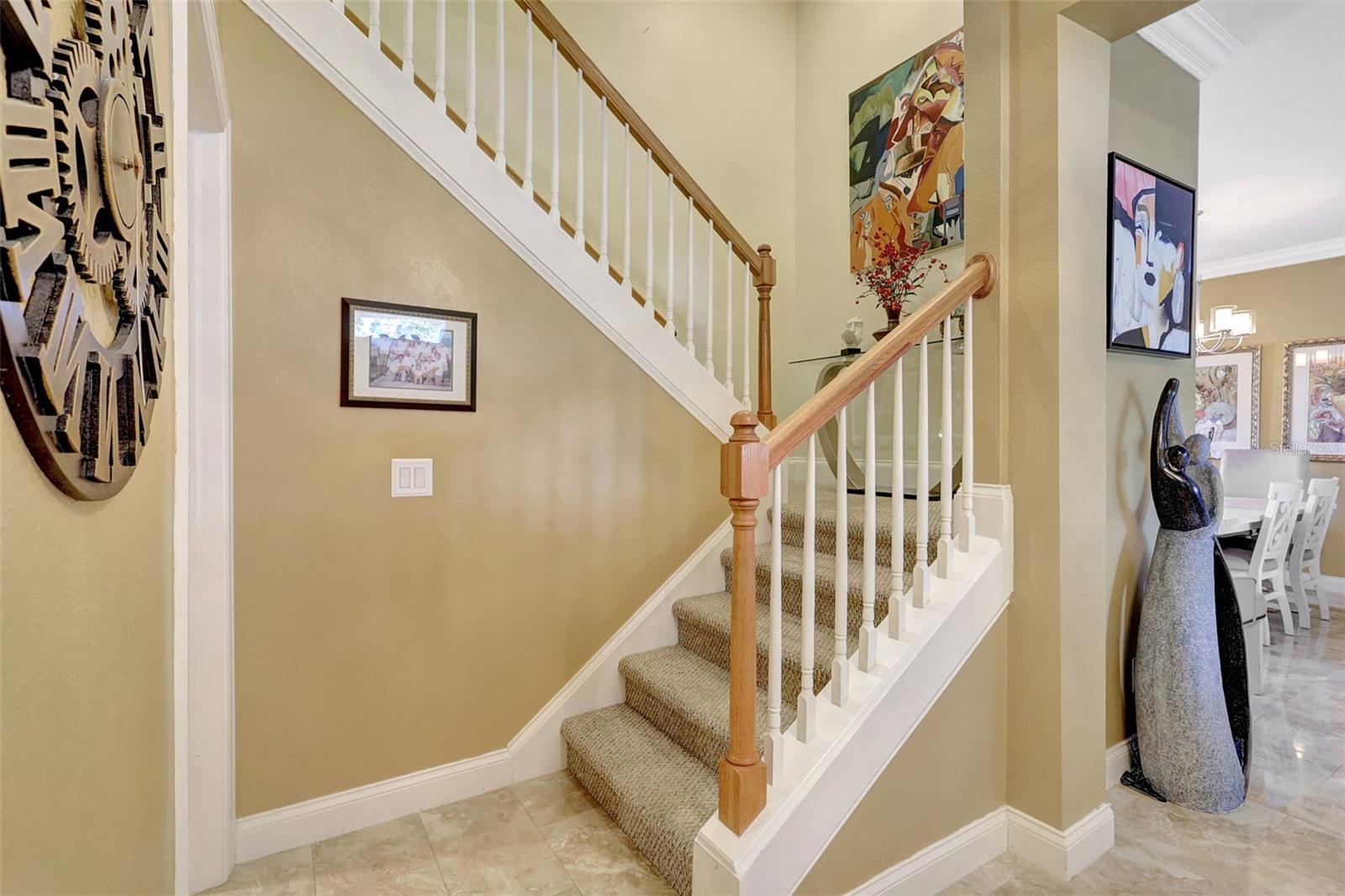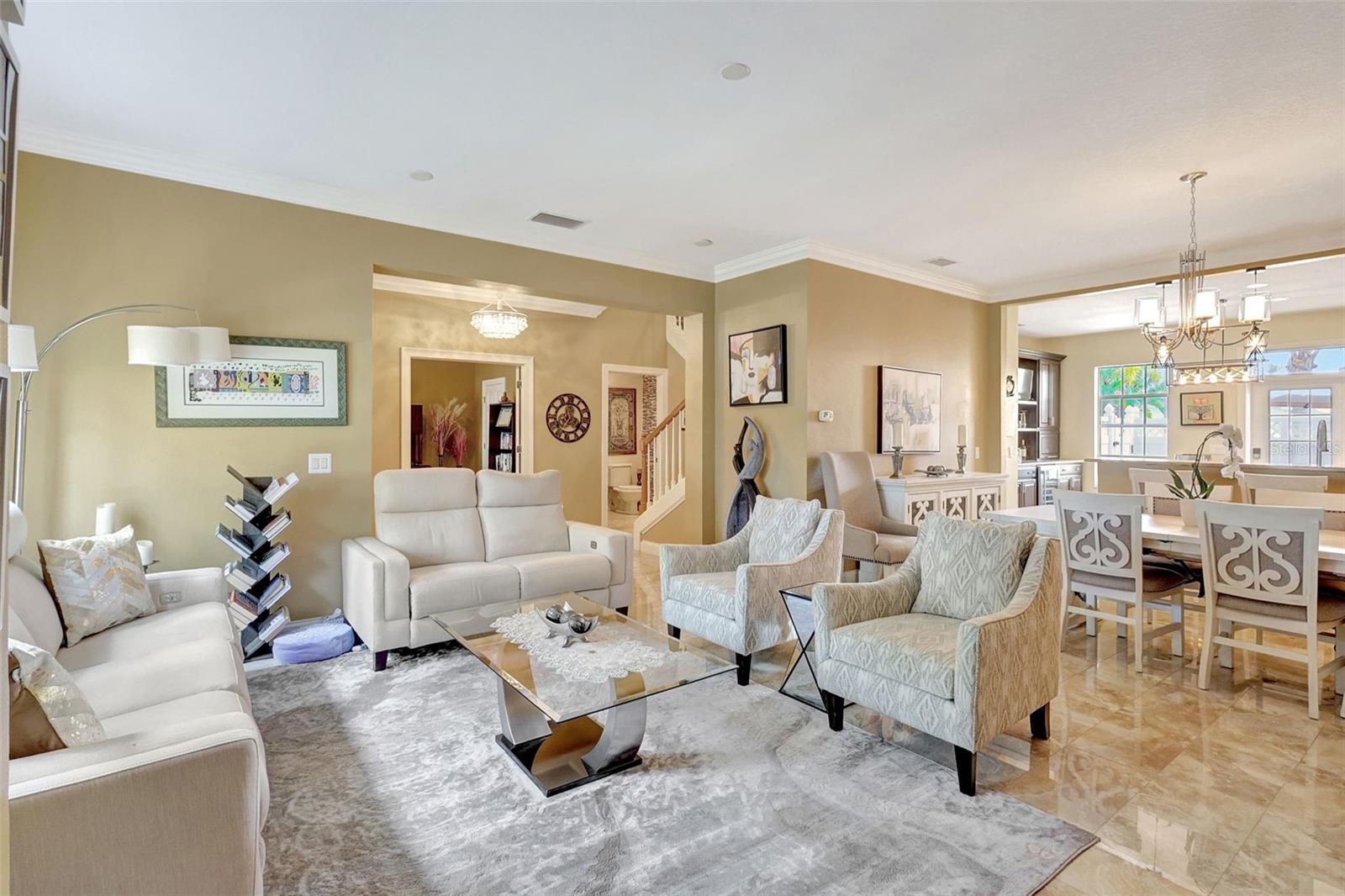 *** NEW PRICE IMPROVEMENT! *** COME LIVE YOUR BEST LIFE in this Maintenance-Free Townhome Located in The Highly Sought After COASTAL RESORT STYLE COMMUNITY OF MIRABAY! You Must See This Lovely 3 Bed, 2.5 Bath PLUS DEN Home! You will Love the High Ceilings and Numerous Windows throughout allowing lots of Natural Sunlight to pour in! Upon entering the Large Foyer, you’ll notice the Beautiful Open Staircase to the 2nd Story and to the left, a Great Size Den/Office w/ Glass French Doors, a Walk-In Closet w/ Built in Shelving (PERFECT TO USE AS A 4th BEDROOM). To the right of the Foyer is the Living Room/Dining Area that is also Open to the Kitchen, which is Ideal for Entertaining Or spending family time together. The Den, Living Room & Dining Area adorned w/ Crown Molding & Gorgeous Neutral “Marble Look” Tile. The Chef’s Kitchen features Neutral Maple Wood Cabinets, Granite Countertops, Stainless Steel Appliances - Included Single Basin Stainless Steel Sink, a Breakfast Bar, a Large Prep Island Counter - can be used as a Dinette Table. You’ll Love the Built-In Bar Cabinets that include a Wine Fridge and offers additional storage space! Off the Kitchen is an Open Patio with Brick Pavers & Privacy Fencing. Truly a great space for Relaxing, Sunbathing, Reading, Enjoying Morning Coffee or an Evening Cocktail. Also On the First Floor you’ll appreciate the Pretty Powder Room that features a Stylish Decorative Glass Tile Accent Wall & a Spacious Under the Stairs Storage Closet! Heading upstairs you’ll find 2 Good Sized Bedrooms, both w/Built in Closet Units, and a Jack & Jill Bathroom w/ Two Separate Vanity Sinks and a Tub/Shower Combo. A 2nd Story Laundry Room couldn’t be more convenient! This Laundry Room is equipped w/ Stacked Washer & Dryer (included), a Laundry Sink & Cabinets for Storage. The Primary Suite is located away from the secondary Bedrooms offering more privacy. This Luxury Suite is Large Enough to include a Reading/Sitting Area OR plenty of Space for Exercise Equipment!! The En suite Bathroom offers a Stall Shower & a Garden Tub for times when you just Soak and Unwind. Primary Bath has a Long Countertop w/Dual Sinks & Make-Up/Hair Drying Vanity, w/space for chair or stool, a private “Toilet Room” and a Roomy Linen Closet. Additional Upgrades include New Light Fixtures in Kitchen & Dining Area, Wide Baseboard Molding throughout, Brand New Refrigerator & Window Treatments. More Time to “Relax & Play” with Maintenance Free Living when all your Landscaping & Yardwork IS Done for You! There is Always Something Fun to Do in this Resort Style Community! So Many Amenities to Choose From! The Clubhouse offers A Coffee Bar, Banquet Room, A Poolside Café w/ Great Food & Full Bar. Just outside the Clubhouse is A Fitness Center w/ State of the Art Exercise Equipment, Men & Women’s Saunas, Fitness Classes, 3 Connecting Pools - A Zero-Entry Pool w/ Splash Pad & “Mushroom” Water Fountain, a Water Slide, Bridge Covered Water Tunnel that leads to the Lap Pool & Wading/Swimming Pool and a Poolside Playground. Kayaks & Paddle Boards are Available for use to paddle around the Lagoon and Canals. Test your athletic skills on one of the many Tennis Courts, Pickleball Courts OR Basketball Courts. Enjoy a Picnic in one of the Parks that offers Tiki Hut Covered Tables & Charcoal Grills! Mirabay is Located to Area Beaches, Restaurants, Shopping, Banking, & Area Freeways for Easy Commute to Tampa & the Malls of Tampa, Brandon & Sarasota! See This Home Today!