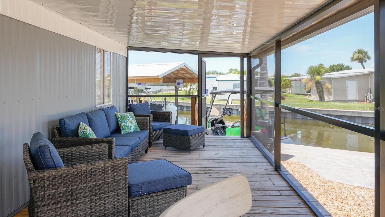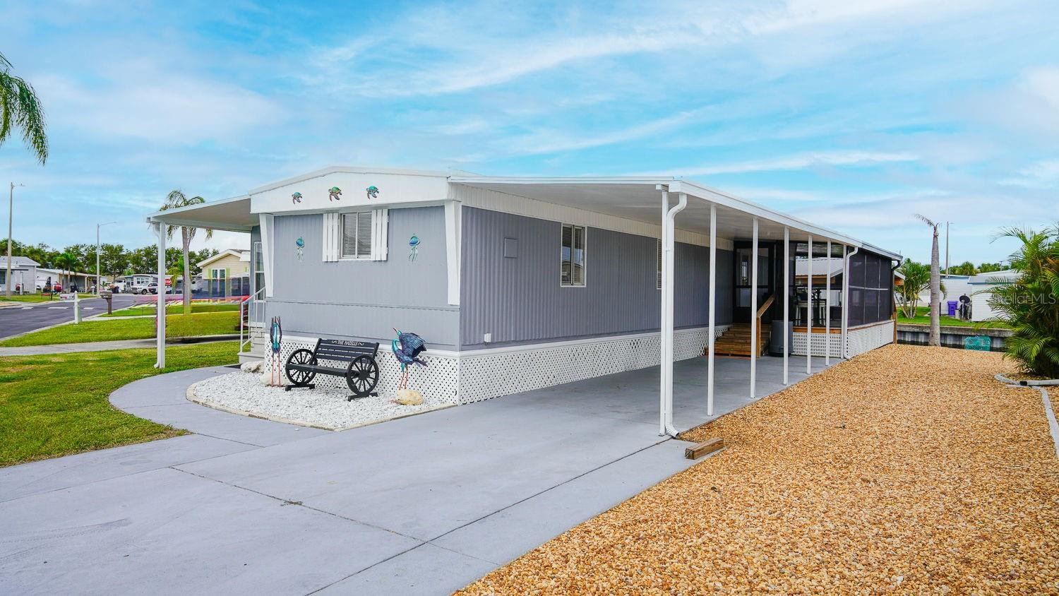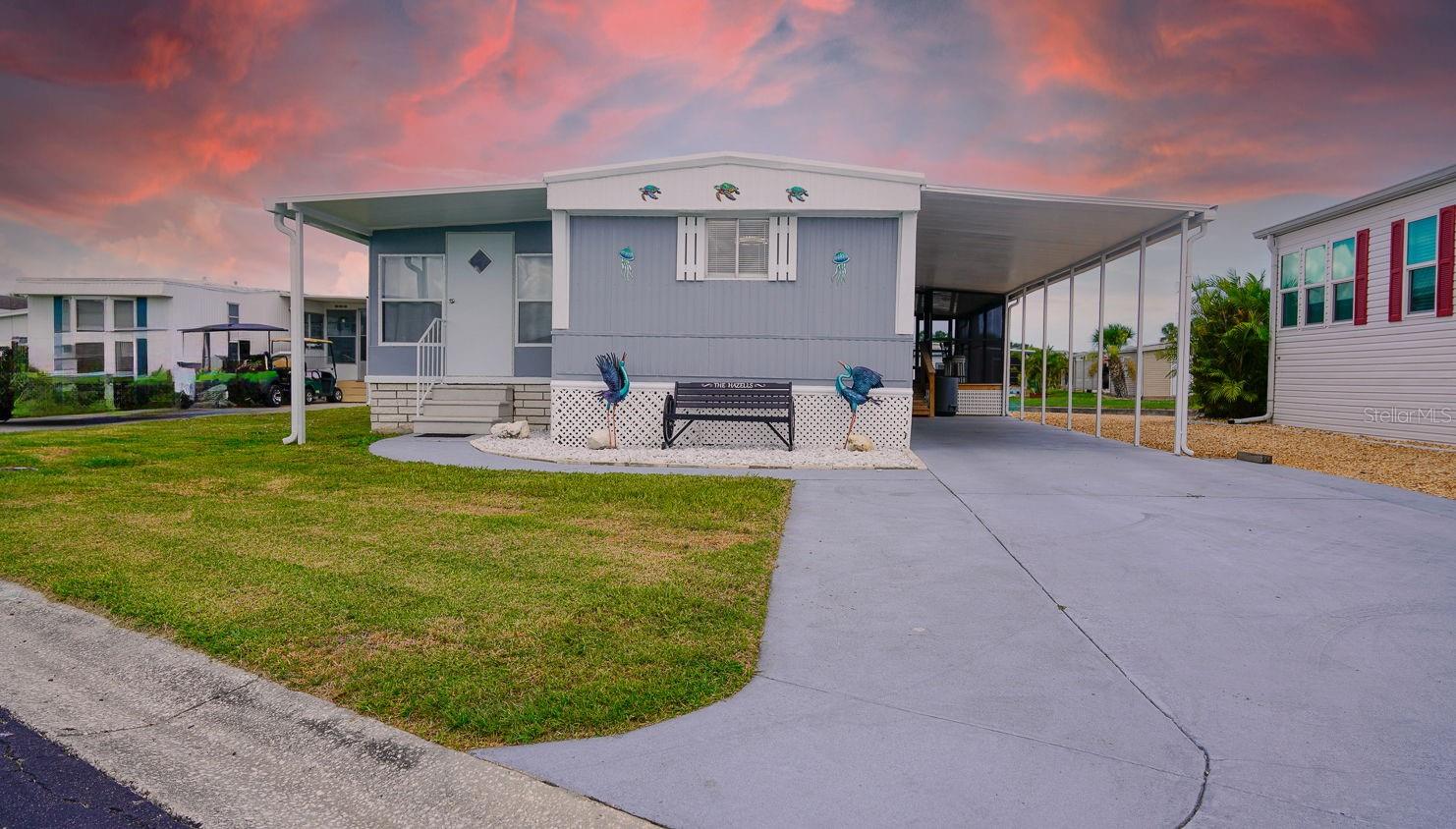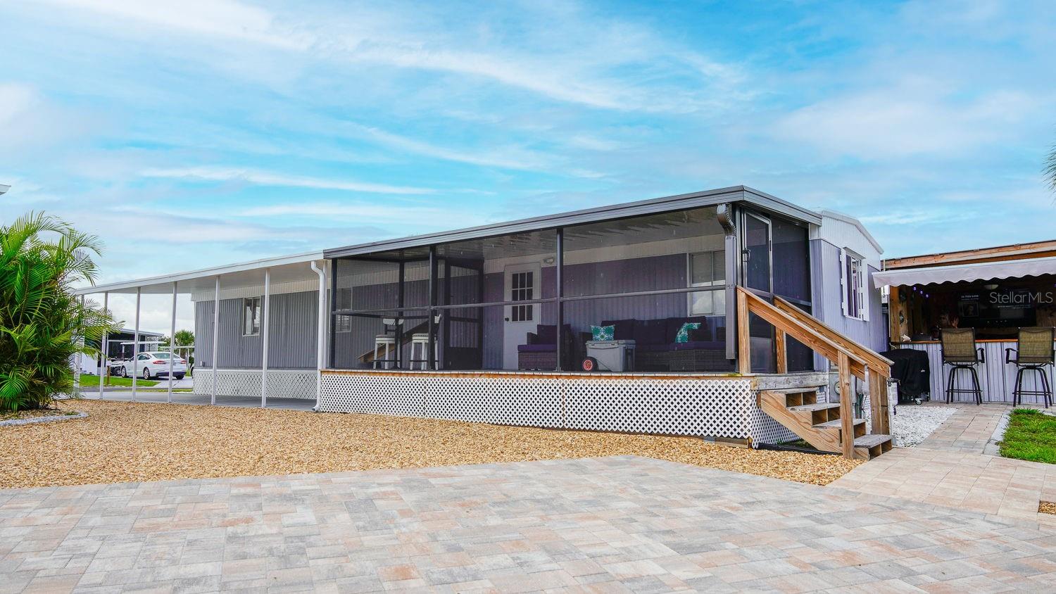 Welcome to waterfront living in the highly sought-after 55+ gated community of Caribbean Isles! This meticulously maintained 2 bed, 1.5 bath, 1 carport (2 Spaces) home offers 998 square feet of comfort and upgrades throughout. Enjoy peace of mind with a new roof (2022), new 3.5-ton HVAC with ductwork (2025). The home also features a new shower (2023), updated flooring, doors, and windows in the Florida room, perfect as a sunny bonus space or playroom for the grandkids. Boaters will love the new 13,000 lb boat lift with metal roof (2024), offering easy access with just a 25-minute idle-speed ride to Tampa Bay. Relax outdoors with a 10x20 screened-in deck overlooking the water, or entertain at your very own tiki bar with pavers (2023). Fresh exterior paint (2025) gives the home a crisp, updated look. Plenty of boat and trailer storage is available for just $120/year, and community amenities include 3 secure entry gates, a heated pool, boat ramp, clubhouse, library, and vibrant social calendar. Monthly HOA is just $242. Whether you're a seasonal snowbird or full-time Florida dreamer, this home offers it all.