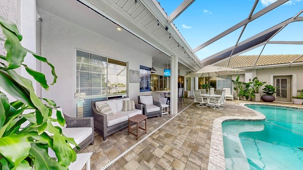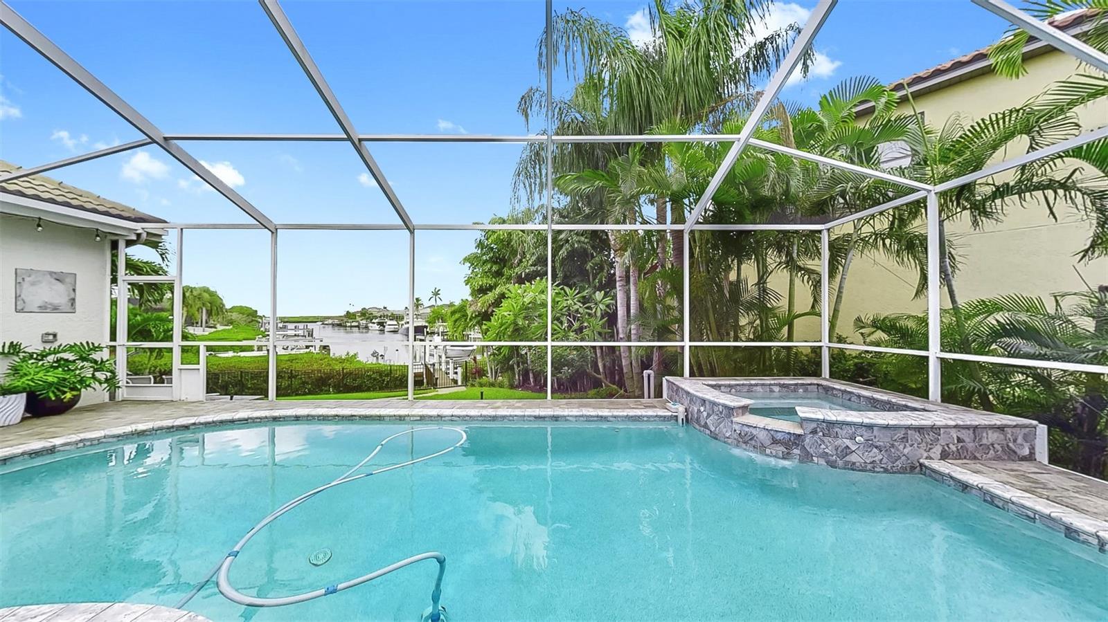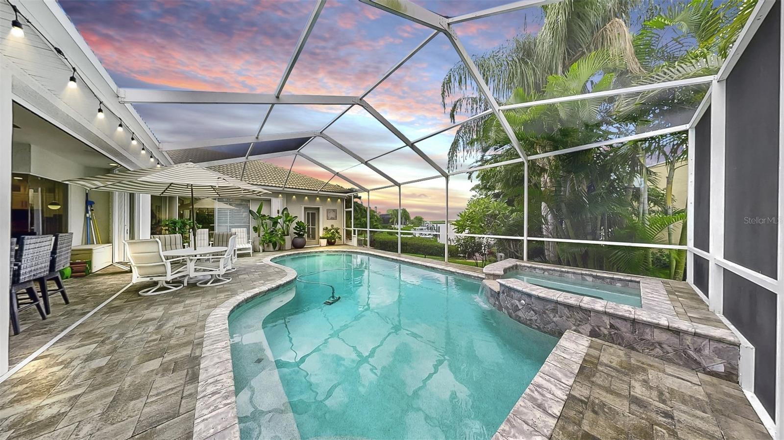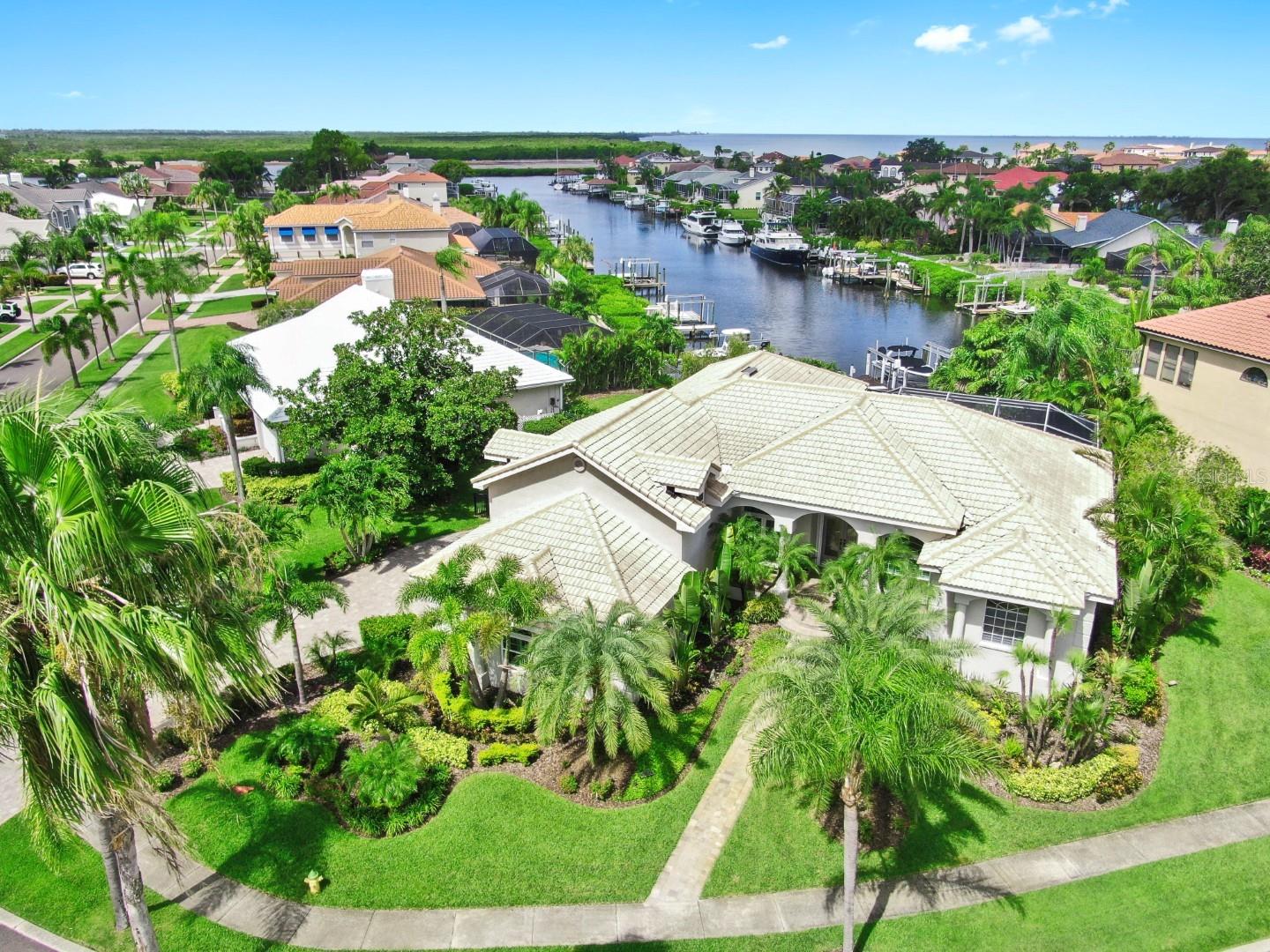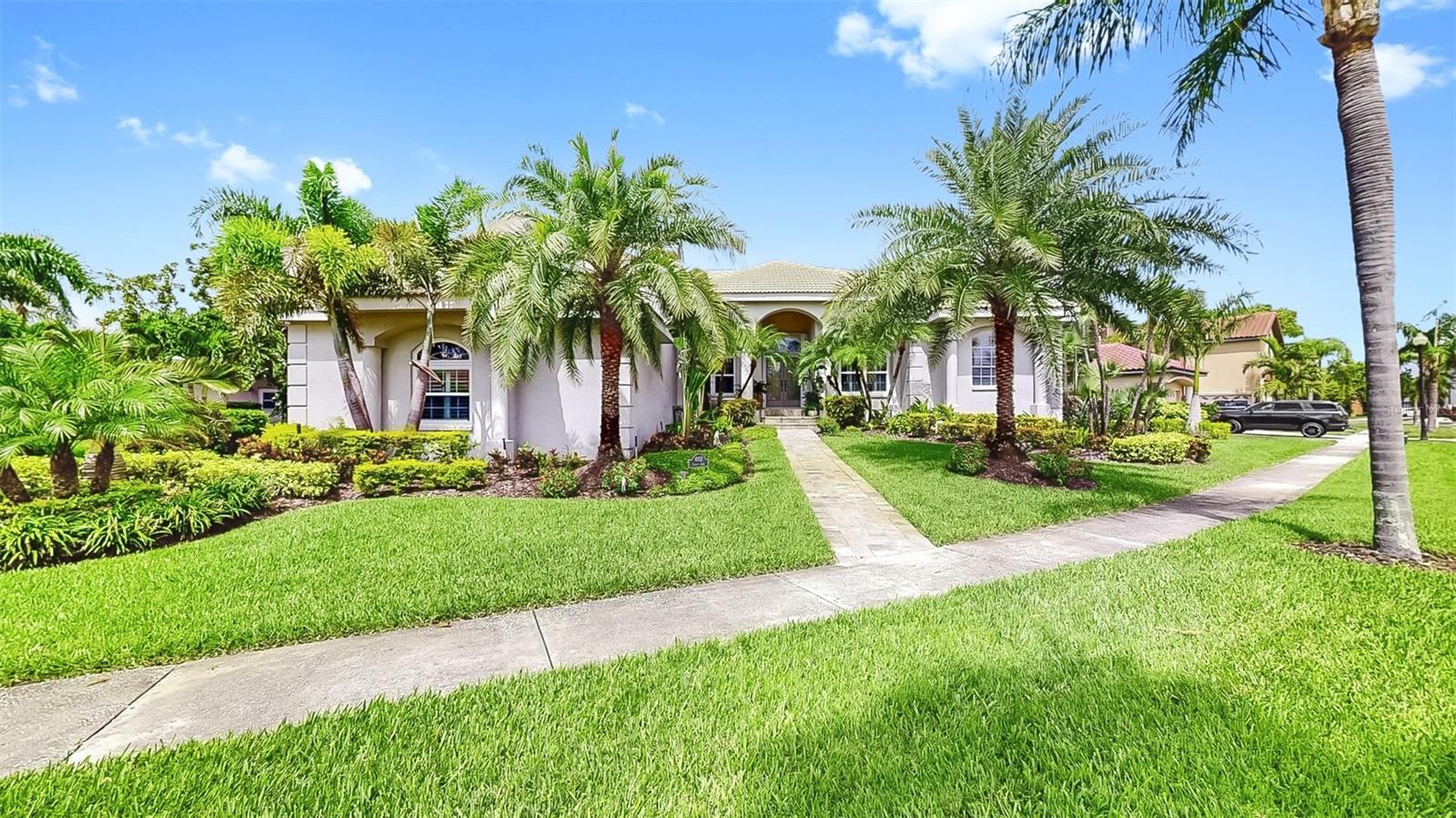 Discover the epitome of elegance and sophistication in this meticulously crafted waterfront home nestled within the prestigious Symphony Isles community. Every detail has been thoughtfully selected and upgraded to create a seamless blend of luxury, comfort, and style. From the moment you arrive, you'll be captivated by the beautifully landscaped grounds, featuring lush, well-maintained greenery and a welcoming front porch with classic columns. The pavered driveway leads to a spacious side-entry garage, complemented by a grand double-door entrance that beckons you inside. Step into an expansive open floorplan accentuated by luxurious upgraded laminate flooring, soaring double tray ceilings, and large windows dressed with elegant plantation shutters that flood the space with natural light. Upgraded lighting fixtures add a touch of sophistication throughout. The chef's kitchen boasts imported granite countertops, high-end GE Profile appliances, and sleek white cabinets reaching to the ceiling with tasteful crown molding. The large island provides ample workspace and casual dining options, perfect for entertaining. Relax in the spacious family room featuring a stunning wood accent wall and an electric fireplace—ideal for cozy evenings. For cinephiles, the $35,000 home theater system with Custom high end home theater amplifiers delivers incredible sound throughout the house. This entire home is equipped with smart technology, allowing you to control lighting, the EcoV thermostat, music, and more via Alexa. With three new AC units and a garage mini-split system, you’ll enjoy optimal comfort year-round. The luxurious master suite offers breathtaking water views and direct pool access. It features triple tray ceilings, two large California closets, and a spa-like bathroom with a spacious shower and a standalone soaking tub—your private sanctuary. On the opposite side of the home, you'll find three generous guest bedrooms and two large bathrooms, including one with pool access. Upstairs, a versatile open space awaits—perfect for a media room, hobby area, or art studio. Step outside to your fully renovated saltwater pool and patio area, equipped with Web-Control Aqualink, new pool heater, and automatic pool refill system. New outdoor kitchen, with commercial grade hood, beverage refrigerator, and large bar and siting area! Enclosed with Noseeim screens and a fully fenced yard, this outdoor oasis is perfect for entertaining and relaxing. Enjoy your private dock featuring two electric boat lifts with water and electric hookups—ideal for boating enthusiasts. The Symphony Isles community offers 24/7 manned gated security, private roads, a pristine private beach, clubhouse, and a private boat ramp. Schedule your private tour today and experience this exceptional waterfront paradise in Symphony Isles!