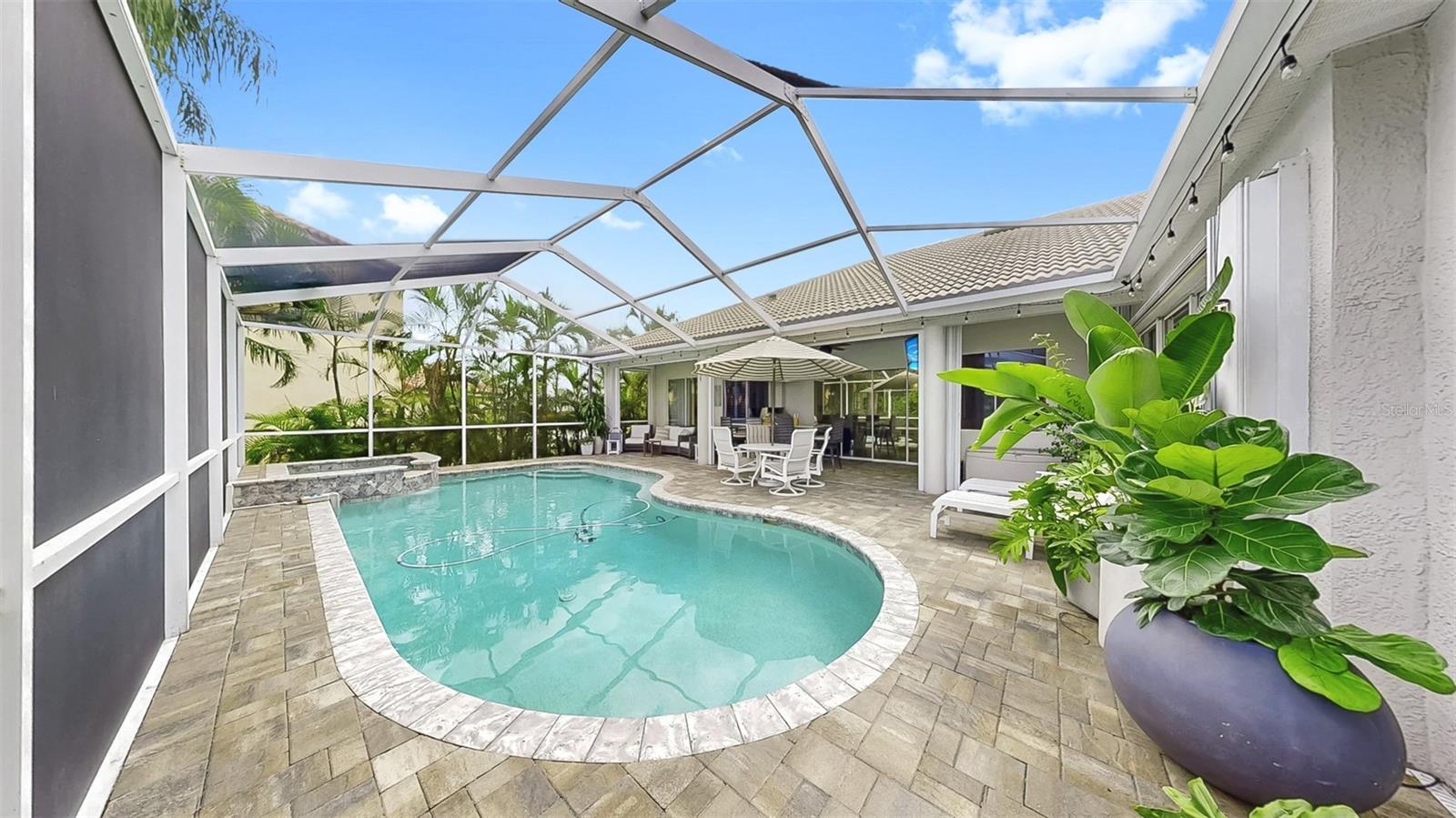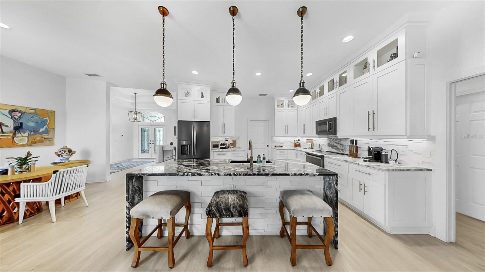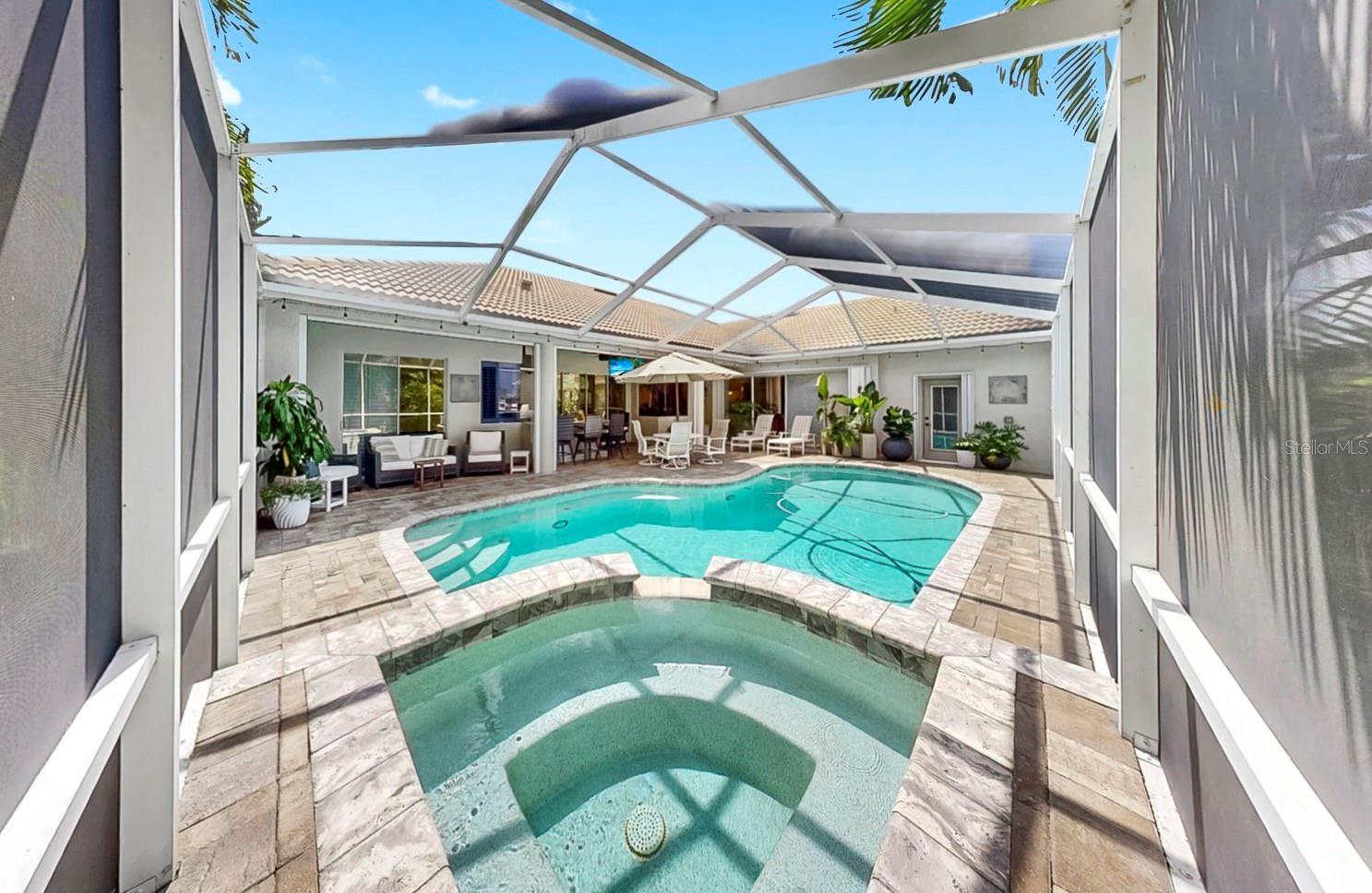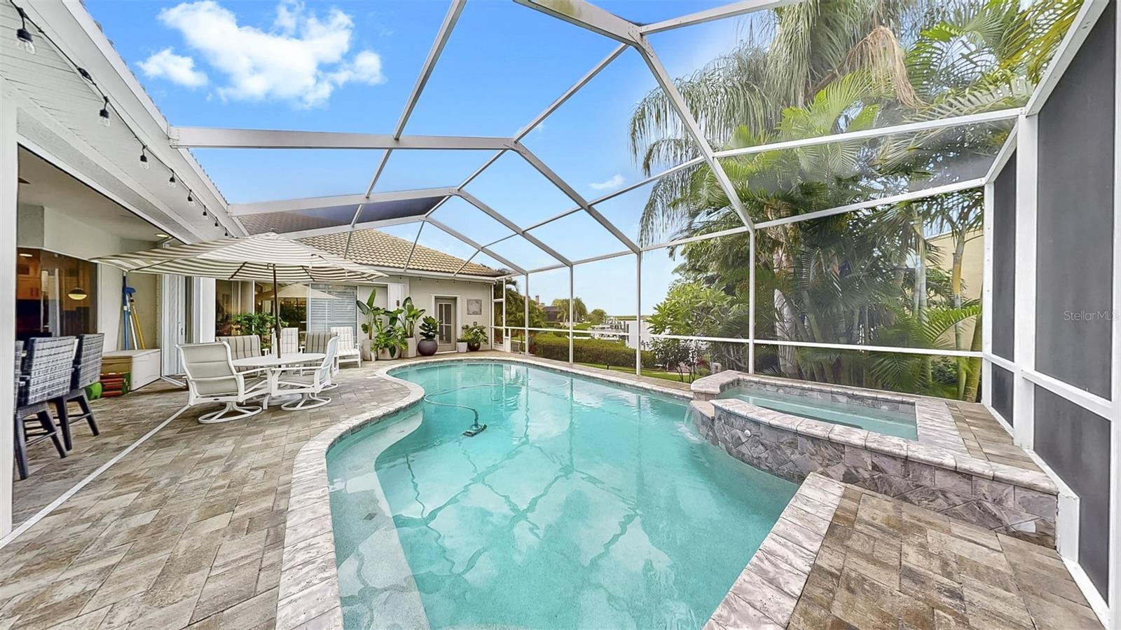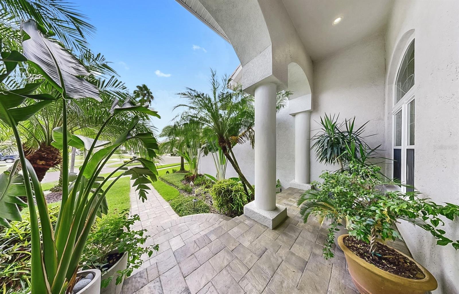 Discover the epitome of elegance and sophistication in this meticulously crafted waterfront home nestled within the prestigious Symphony Isles community. Every detail has been thoughtfully selected and upgraded to create a seamless blend of luxury, comfort, and style. From the moment you arrive, you'll be captivated by the beautifully landscaped grounds, featuring lush, well-maintained greenery and a welcoming front porch with classic columns. The pavered driveway leads to a spacious side-entry garage, complemented by a grand double-door entrance that beckons you inside. Step into an expansive open floorplan accentuated by luxurious upgraded laminate flooring, soaring double tray ceilings, and large windows dressed with elegant plantation shutters that flood the space with natural light. Upgraded lighting fixtures add a touch of sophistication throughout. The chef's kitchen boasts imported granite countertops, high-end GE Profile appliances, and sleek white cabinets reaching to the ceiling with tasteful crown molding. The large island provides ample workspace and casual dining options, perfect for entertaining. Relax in the spacious family room featuring a stunning wood accent wall and an electric fireplace—ideal for cozy evenings. For cinephiles, the $35,000 home theater system with Custom high end home theater amplifiers delivers incredible sound throughout the house. This entire home is equipped with smart technology, allowing you to control lighting, the EcoV thermostat, music, and more via Alexa. With three new AC units and a garage mini-split system, you’ll enjoy optimal comfort year-round. The luxurious master suite offers breathtaking water views and direct pool access. It features triple tray ceilings, two large California closets, and a spa-like bathroom with a spacious shower and a standalone soaking tub—your private sanctuary. On the opposite side of the home, you'll find three generous guest bedrooms and two large bathrooms, including one with pool access. Upstairs, a versatile open space awaits—perfect for a media room, hobby area, or art studio. Step outside to your fully renovated saltwater pool and patio area, equipped with Web-Control Aqualink, new pool heater, and automatic pool refill system. New outdoor kitchen, with commercial grade hood, beverage refrigerator, and large bar and siting area! Enclosed with Noseeim screens and a fully fenced yard, this outdoor oasis is perfect for entertaining and relaxing. Enjoy your private dock featuring two electric boat lifts with water and electric hookups—ideal for boating enthusiasts. The Symphony Isles community offers 24/7 manned gated security, private roads, a pristine private beach, clubhouse, and a private boat ramp. Schedule your private tour today and experience this exceptional waterfront paradise in Symphony Isles!