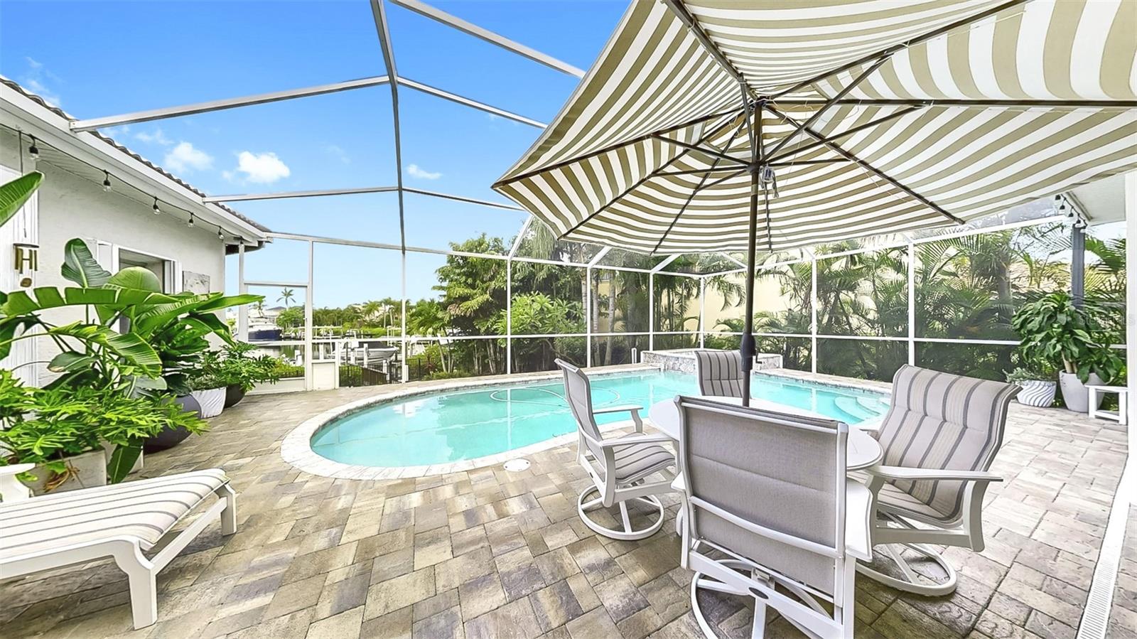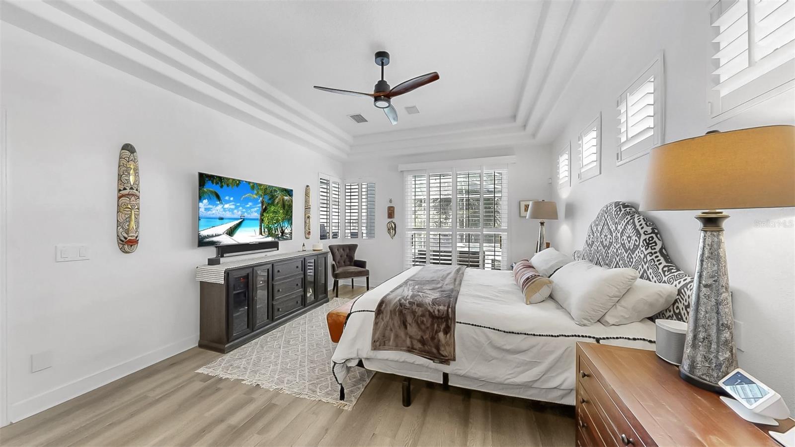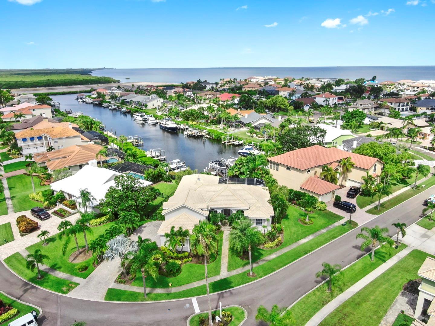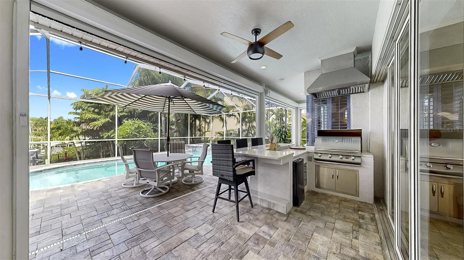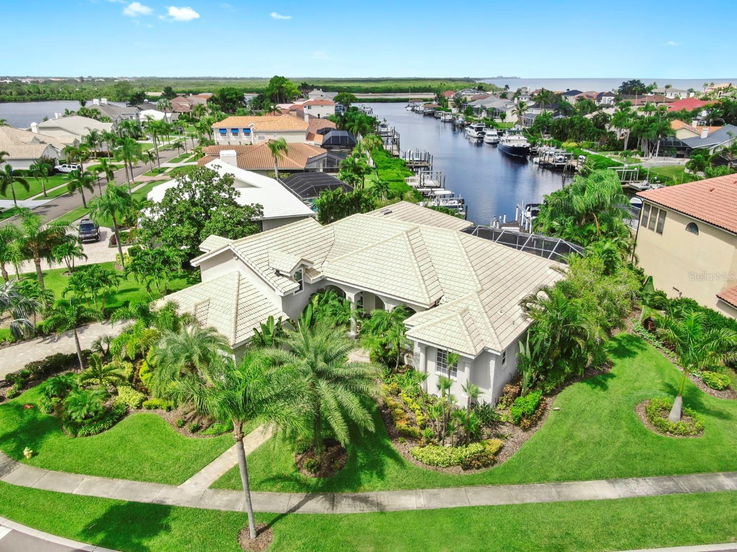 Discover the epitome of elegance and sophistication in this meticulously crafted waterfront home nestled within the prestigious Symphony Isles community. Every detail has been thoughtfully selected and upgraded to create a seamless blend of luxury, comfort, and style. From the moment you arrive, you'll be captivated by the beautifully landscaped grounds, featuring lush, well-maintained greenery and a welcoming front porch with classic columns. The pavered driveway leads to a spacious side-entry garage, complemented by a grand double-door entrance that beckons you inside. Step into an expansive open floorplan accentuated by luxurious upgraded laminate flooring, soaring double tray ceilings, and large windows dressed with elegant plantation shutters that flood the space with natural light. Upgraded lighting fixtures add a touch of sophistication throughout. The chef's kitchen boasts imported granite countertops, high-end GE Profile appliances, and sleek white cabinets reaching to the ceiling with tasteful crown molding. The large island provides ample workspace and casual dining options, perfect for entertaining. Relax in the spacious family room featuring a stunning wood accent wall and an electric fireplace—ideal for cozy evenings. For cinephiles, the $35,000 home theater system with Custom high end home theater amplifiers delivers incredible sound throughout the house. This entire home is equipped with smart technology, allowing you to control lighting, the EcoV thermostat, music, and more via Alexa. With three new AC units and a garage mini-split system, you’ll enjoy optimal comfort year-round. The luxurious master suite offers breathtaking water views and direct pool access. It features triple tray ceilings, two large California closets, and a spa-like bathroom with a spacious shower and a standalone soaking tub—your private sanctuary. On the opposite side of the home, you'll find three generous guest bedrooms and two large bathrooms, including one with pool access. Upstairs, a versatile open space awaits—perfect for a media room, hobby area, or art studio. Step outside to your fully renovated saltwater pool and patio area, equipped with Web-Control Aqualink, new pool heater, and automatic pool refill system. New outdoor kitchen, with commercial grade hood, beverage refrigerator, and large bar and siting area! Enclosed with Noseeim screens and a fully fenced yard, this outdoor oasis is perfect for entertaining and relaxing. Enjoy your private dock featuring two electric boat lifts with water and electric hookups—ideal for boating enthusiasts. The Symphony Isles community offers 24/7 manned gated security, private roads, a pristine private beach, clubhouse, and a private boat ramp. Schedule your private tour today and experience this exceptional waterfront paradise in Symphony Isles!