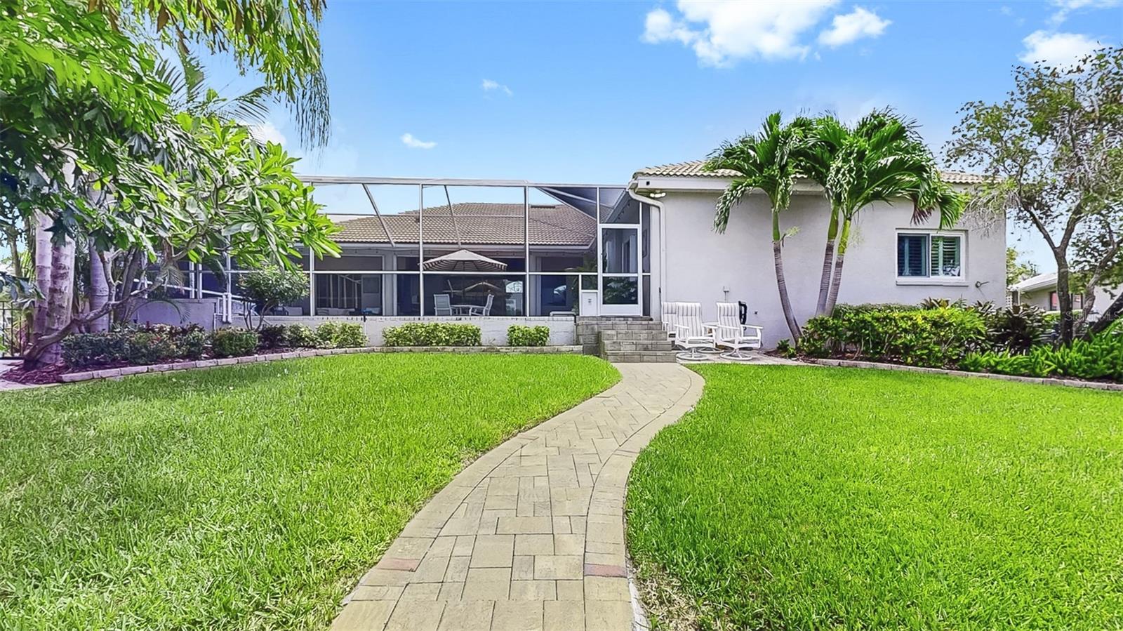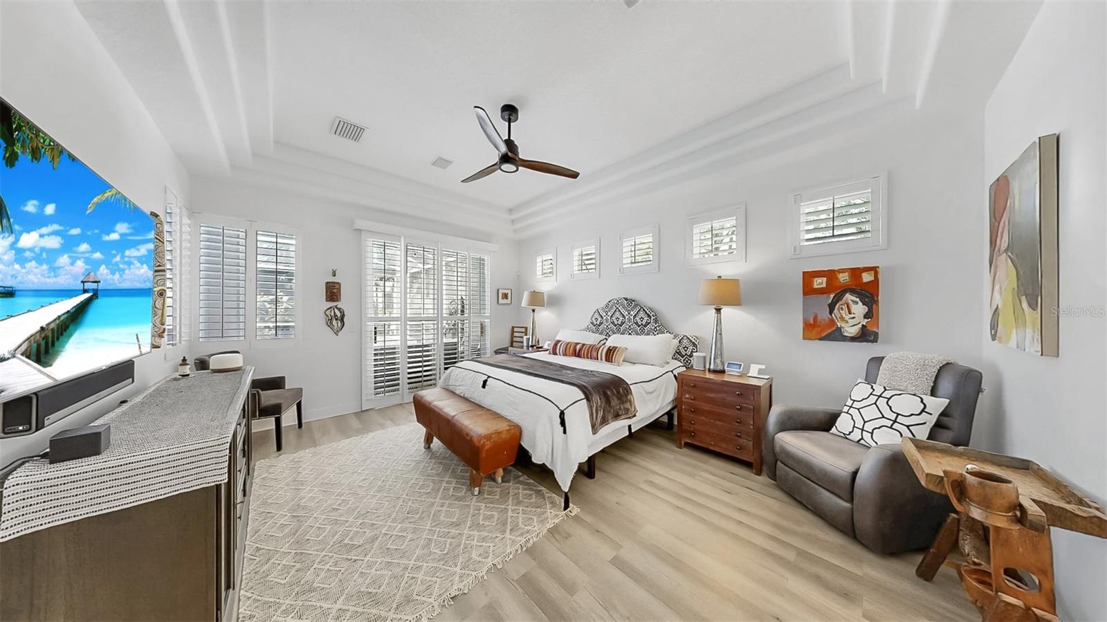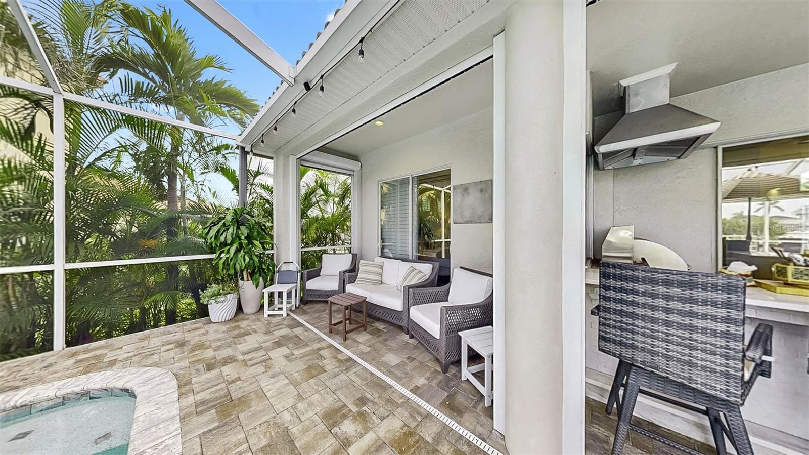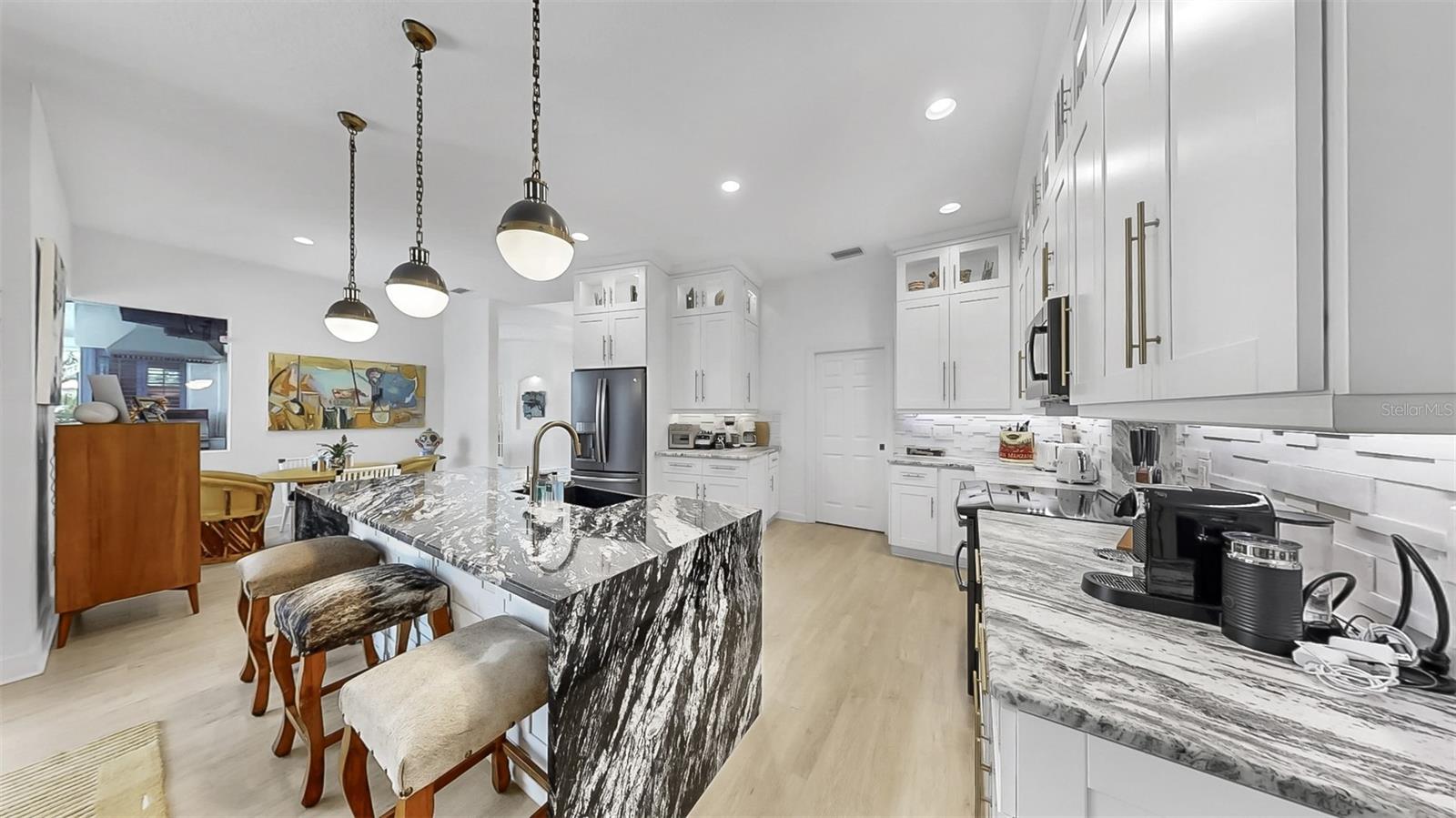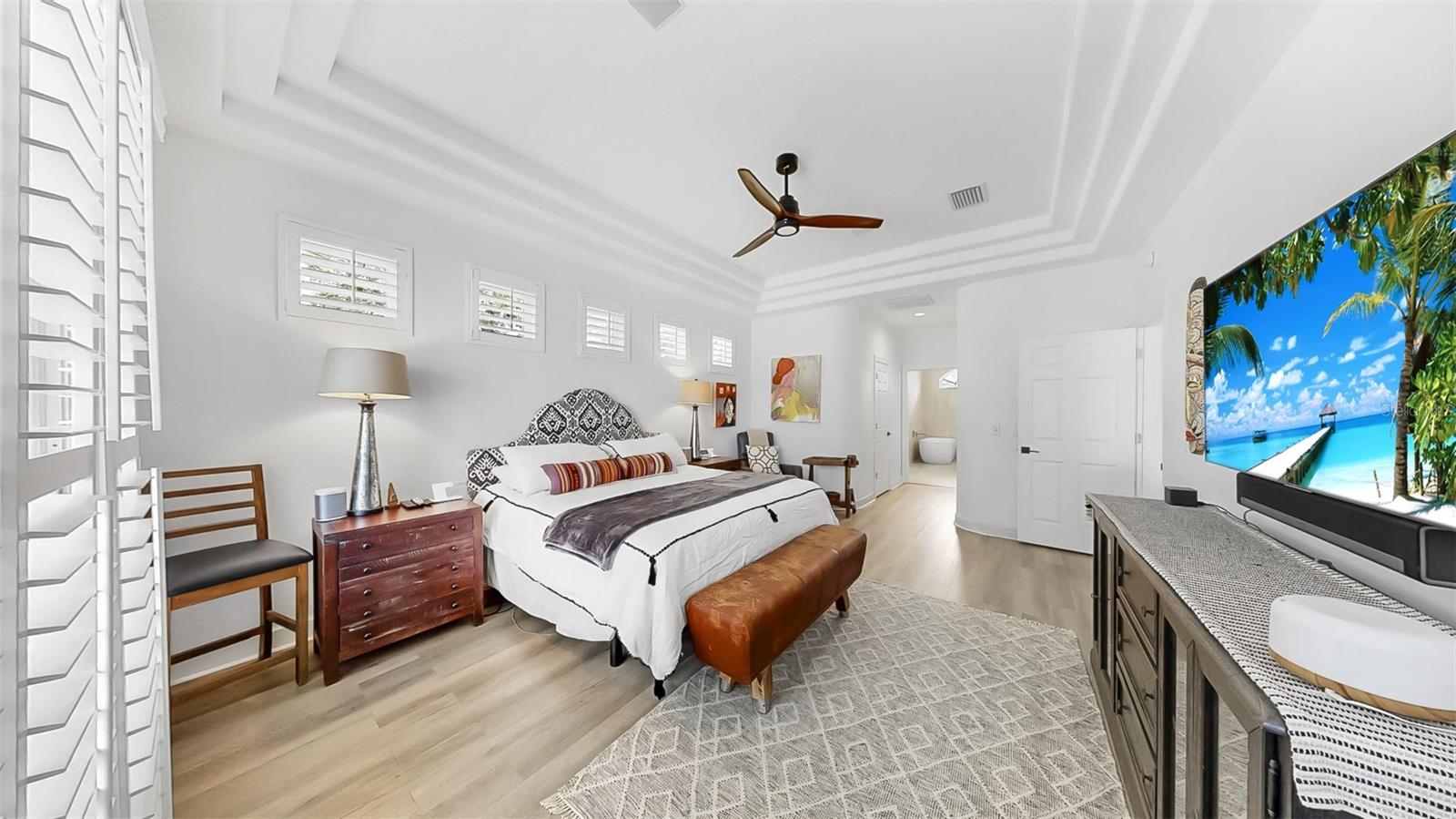 Discover the epitome of elegance and sophistication in this meticulously crafted waterfront home nestled within the prestigious Symphony Isles community. Every detail has been thoughtfully selected and upgraded to create a seamless blend of luxury, comfort, and style. From the moment you arrive, you'll be captivated by the beautifully landscaped grounds, featuring lush, well-maintained greenery and a welcoming front porch with classic columns. The pavered driveway leads to a spacious side-entry garage, complemented by a grand double-door entrance that beckons you inside. Step into an expansive open floorplan accentuated by luxurious upgraded laminate flooring, soaring double tray ceilings, and large windows dressed with elegant plantation shutters that flood the space with natural light. Upgraded lighting fixtures add a touch of sophistication throughout. The chef's kitchen boasts imported granite countertops, high-end GE Profile appliances, and sleek white cabinets reaching to the ceiling with tasteful crown molding. The large island provides ample workspace and casual dining options, perfect for entertaining. Relax in the spacious family room featuring a stunning wood accent wall and an electric fireplace—ideal for cozy evenings. For cinephiles, the $35,000 home theater system with Custom high end home theater amplifiers delivers incredible sound throughout the house. This entire home is equipped with smart technology, allowing you to control lighting, the EcoV thermostat, music, and more via Alexa. With three new AC units and a garage mini-split system, you’ll enjoy optimal comfort year-round. The luxurious master suite offers breathtaking water views and direct pool access. It features triple tray ceilings, two large California closets, and a spa-like bathroom with a spacious shower and a standalone soaking tub—your private sanctuary. On the opposite side of the home, you'll find three generous guest bedrooms and two large bathrooms, including one with pool access. Upstairs, a versatile open space awaits—perfect for a media room, hobby area, or art studio. Step outside to your fully renovated saltwater pool and patio area, equipped with Web-Control Aqualink, new pool heater, and automatic pool refill system. New outdoor kitchen, with commercial grade hood, beverage refrigerator, and large bar and siting area! Enclosed with Noseeim screens and a fully fenced yard, this outdoor oasis is perfect for entertaining and relaxing. Enjoy your private dock featuring two electric boat lifts with water and electric hookups—ideal for boating enthusiasts. The Symphony Isles community offers 24/7 manned gated security, private roads, a pristine private beach, clubhouse, and a private boat ramp. Schedule your private tour today and experience this exceptional waterfront paradise in Symphony Isles!