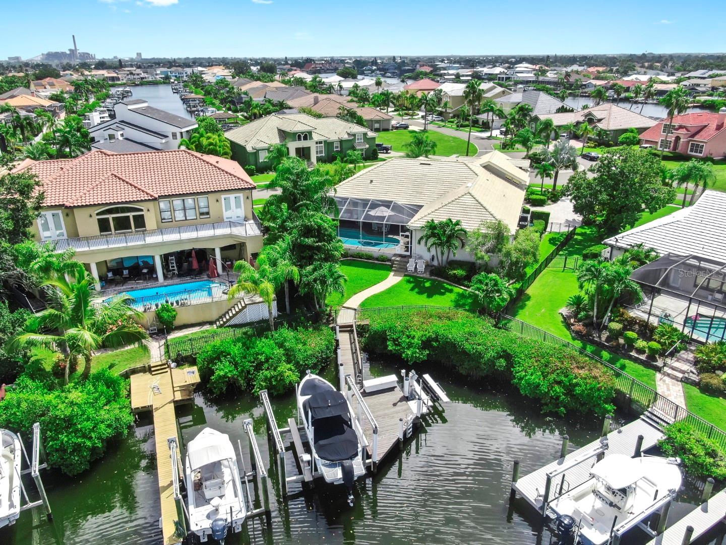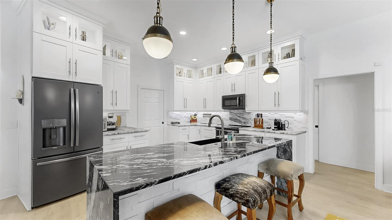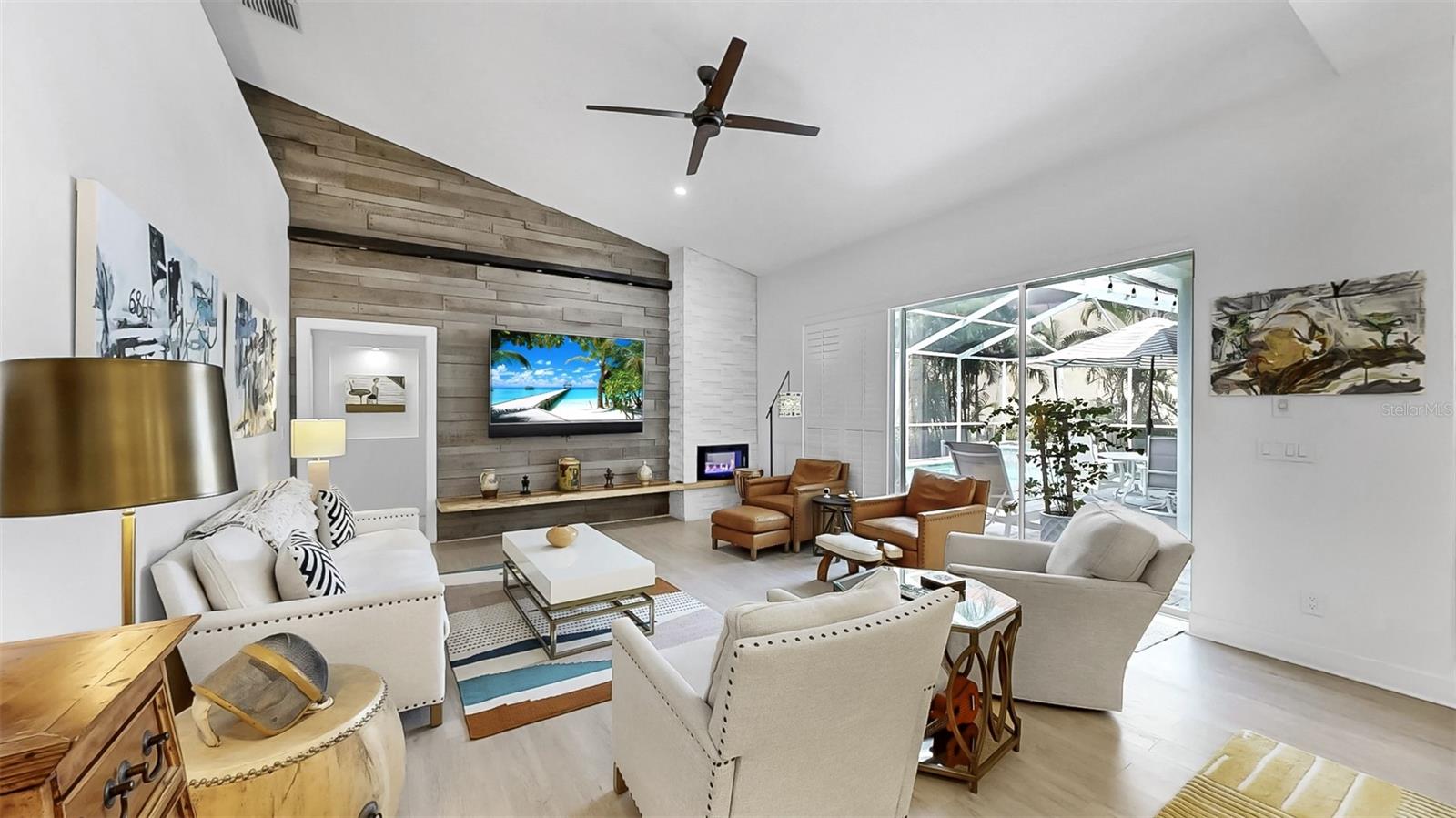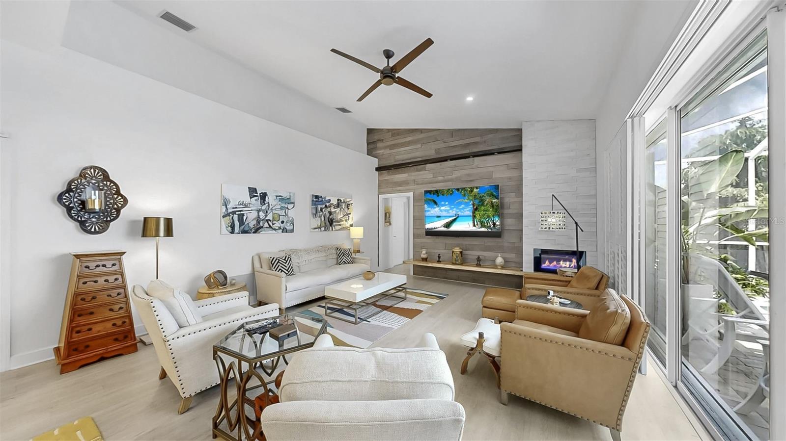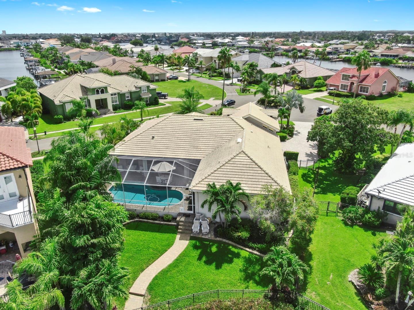 Discover the epitome of elegance and sophistication in this meticulously crafted waterfront home nestled within the prestigious Symphony Isles community. Every detail has been thoughtfully selected and upgraded to create a seamless blend of luxury, comfort, and style. From the moment you arrive, you'll be captivated by the beautifully landscaped grounds, featuring lush, well-maintained greenery and a welcoming front porch with classic columns. The pavered driveway leads to a spacious side-entry garage, complemented by a grand double-door entrance that beckons you inside. Step into an expansive open floorplan accentuated by luxurious upgraded laminate flooring, soaring double tray ceilings, and large windows dressed with elegant plantation shutters that flood the space with natural light. Upgraded lighting fixtures add a touch of sophistication throughout. The chef's kitchen boasts imported granite countertops, high-end GE Profile appliances, and sleek white cabinets reaching to the ceiling with tasteful crown molding. The large island provides ample workspace and casual dining options, perfect for entertaining. Relax in the spacious family room featuring a stunning wood accent wall and an electric fireplace—ideal for cozy evenings. For cinephiles, the $35,000 home theater system with Custom high end home theater amplifiers delivers incredible sound throughout the house. This entire home is equipped with smart technology, allowing you to control lighting, the EcoV thermostat, music, and more via Alexa. With three new AC units and a garage mini-split system, you’ll enjoy optimal comfort year-round. The luxurious master suite offers breathtaking water views and direct pool access. It features triple tray ceilings, two large California closets, and a spa-like bathroom with a spacious shower and a standalone soaking tub—your private sanctuary. On the opposite side of the home, you'll find three generous guest bedrooms and two large bathrooms, including one with pool access. Upstairs, a versatile open space awaits—perfect for a media room, hobby area, or art studio. Step outside to your fully renovated saltwater pool and patio area, equipped with Web-Control Aqualink, new pool heater, and automatic pool refill system. New outdoor kitchen, with commercial grade hood, beverage refrigerator, and large bar and siting area! Enclosed with Noseeim screens and a fully fenced yard, this outdoor oasis is perfect for entertaining and relaxing. Enjoy your private dock featuring two electric boat lifts with water and electric hookups—ideal for boating enthusiasts. The Symphony Isles community offers 24/7 manned gated security, private roads, a pristine private beach, clubhouse, and a private boat ramp. Schedule your private tour today and experience this exceptional waterfront paradise in Symphony Isles!