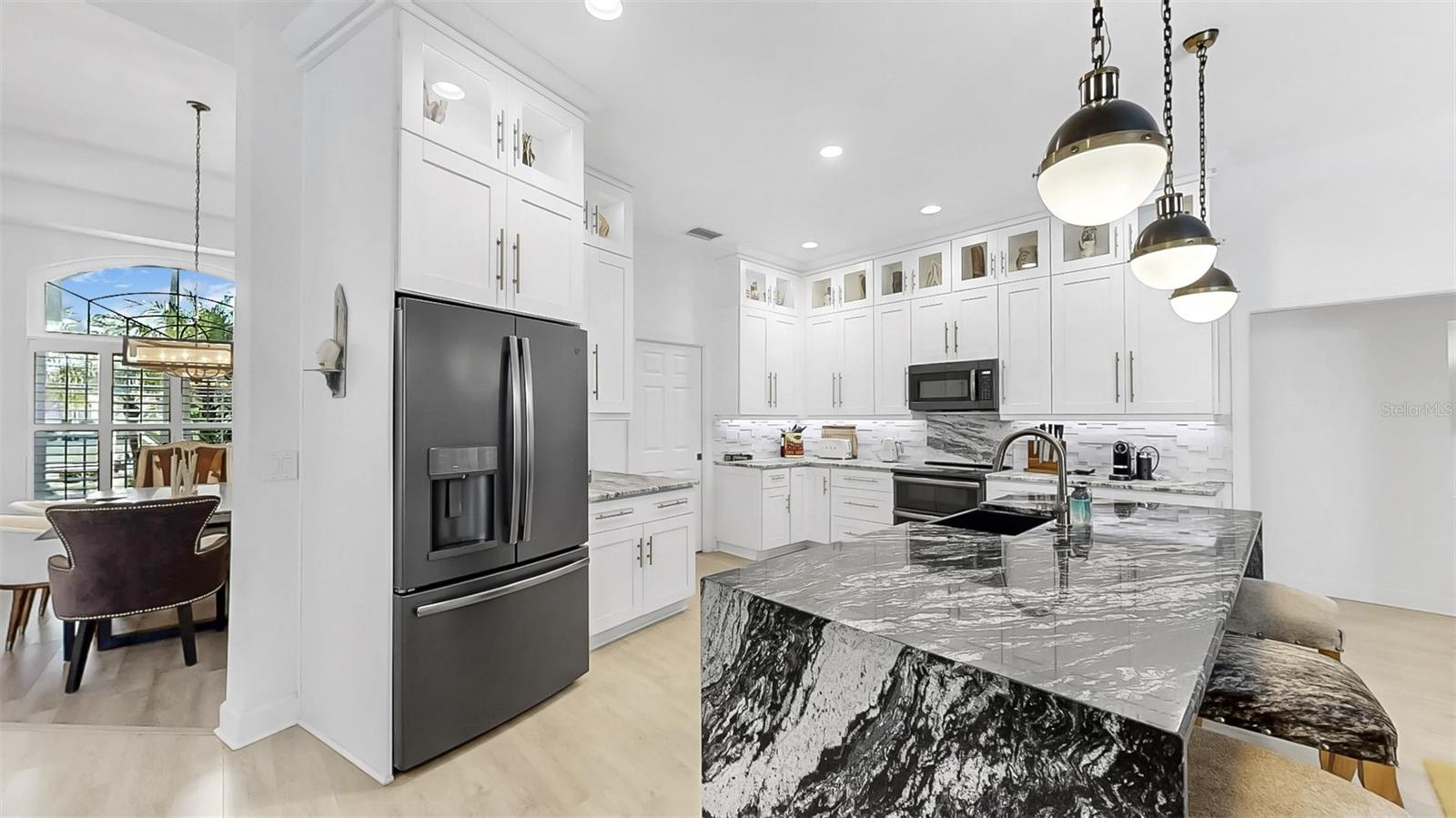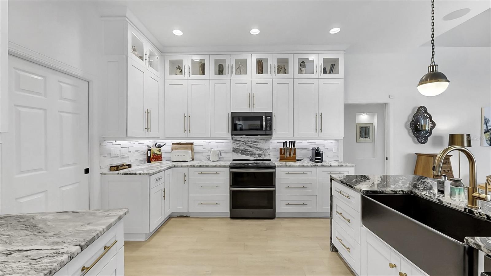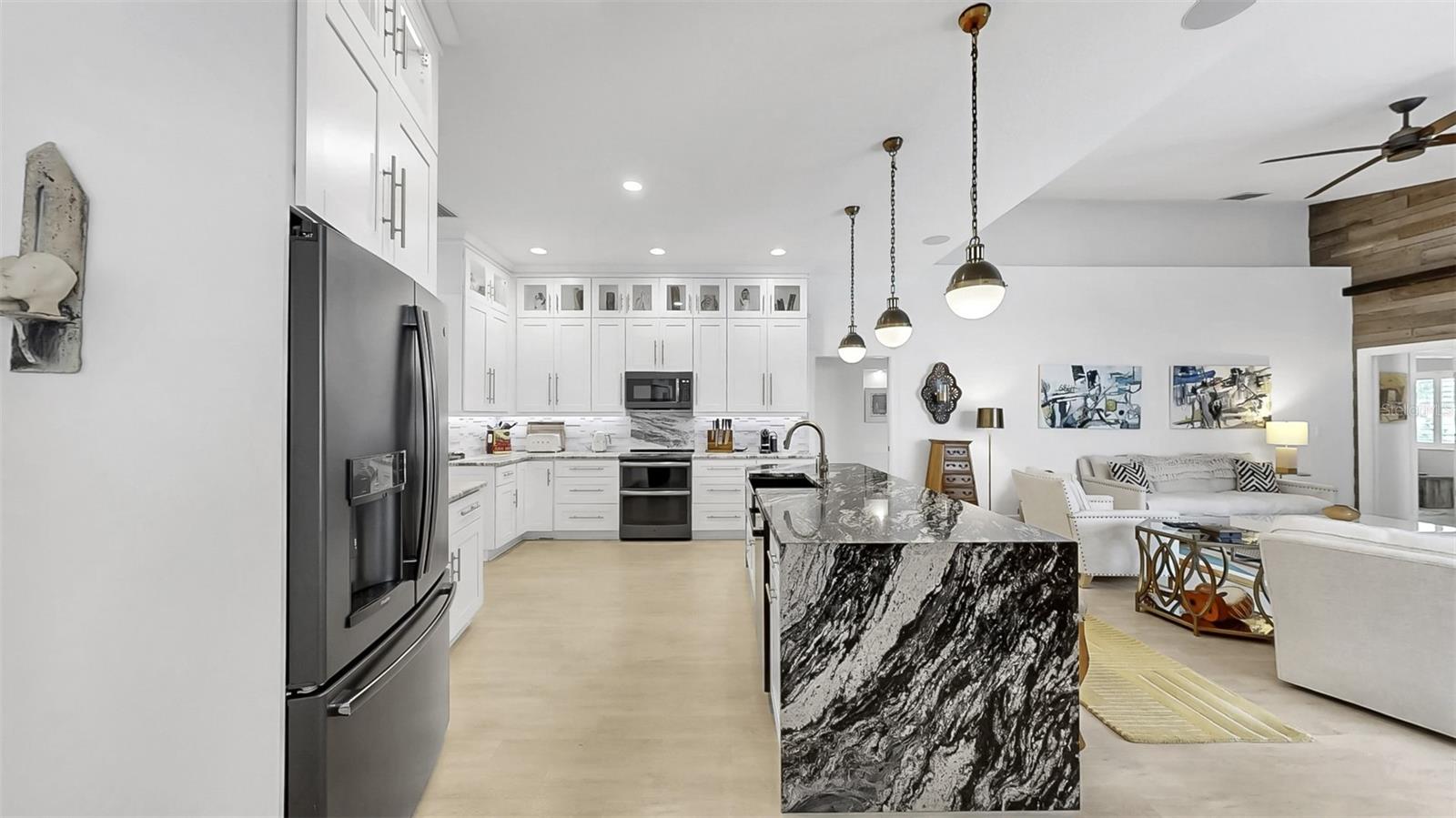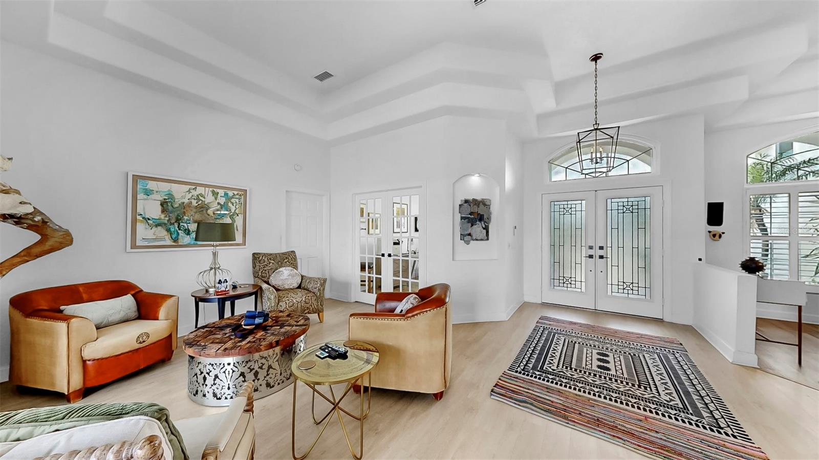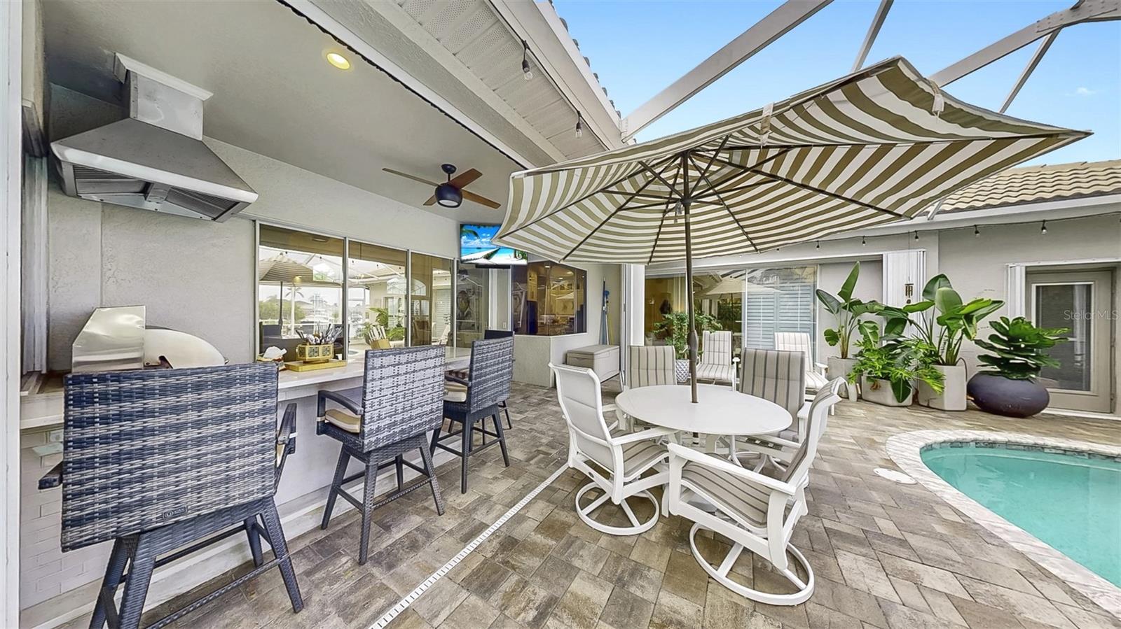 Discover the epitome of elegance and sophistication in this meticulously crafted waterfront home nestled within the prestigious Symphony Isles community. Every detail has been thoughtfully selected and upgraded to create a seamless blend of luxury, comfort, and style. From the moment you arrive, you'll be captivated by the beautifully landscaped grounds, featuring lush, well-maintained greenery and a welcoming front porch with classic columns. The pavered driveway leads to a spacious side-entry garage, complemented by a grand double-door entrance that beckons you inside. Step into an expansive open floorplan accentuated by luxurious upgraded laminate flooring, soaring double tray ceilings, and large windows dressed with elegant plantation shutters that flood the space with natural light. Upgraded lighting fixtures add a touch of sophistication throughout. The chef's kitchen boasts imported granite countertops, high-end GE Profile appliances, and sleek white cabinets reaching to the ceiling with tasteful crown molding. The large island provides ample workspace and casual dining options, perfect for entertaining. Relax in the spacious family room featuring a stunning wood accent wall and an electric fireplace—ideal for cozy evenings. For cinephiles, the $35,000 home theater system with Custom high end home theater amplifiers delivers incredible sound throughout the house. This entire home is equipped with smart technology, allowing you to control lighting, the EcoV thermostat, music, and more via Alexa. With three new AC units and a garage mini-split system, you’ll enjoy optimal comfort year-round. The luxurious master suite offers breathtaking water views and direct pool access. It features triple tray ceilings, two large California closets, and a spa-like bathroom with a spacious shower and a standalone soaking tub—your private sanctuary. On the opposite side of the home, you'll find three generous guest bedrooms and two large bathrooms, including one with pool access. Upstairs, a versatile open space awaits—perfect for a media room, hobby area, or art studio. Step outside to your fully renovated saltwater pool and patio area, equipped with Web-Control Aqualink, new pool heater, and automatic pool refill system. New outdoor kitchen, with commercial grade hood, beverage refrigerator, and large bar and siting area! Enclosed with Noseeim screens and a fully fenced yard, this outdoor oasis is perfect for entertaining and relaxing. Enjoy your private dock featuring two electric boat lifts with water and electric hookups—ideal for boating enthusiasts. The Symphony Isles community offers 24/7 manned gated security, private roads, a pristine private beach, clubhouse, and a private boat ramp. Schedule your private tour today and experience this exceptional waterfront paradise in Symphony Isles!