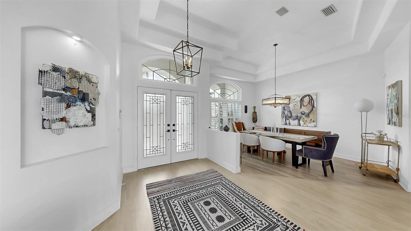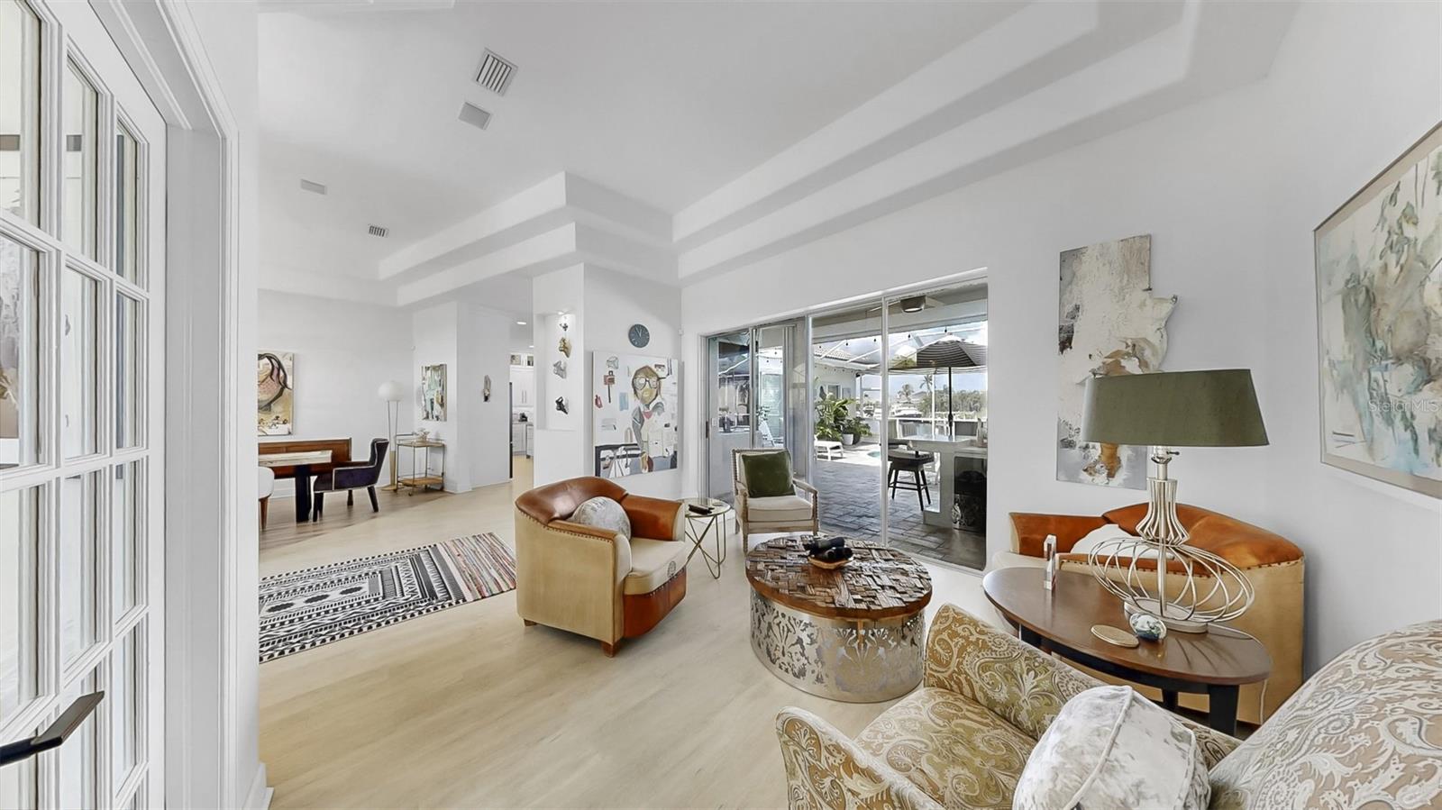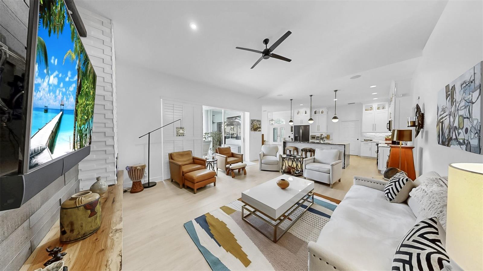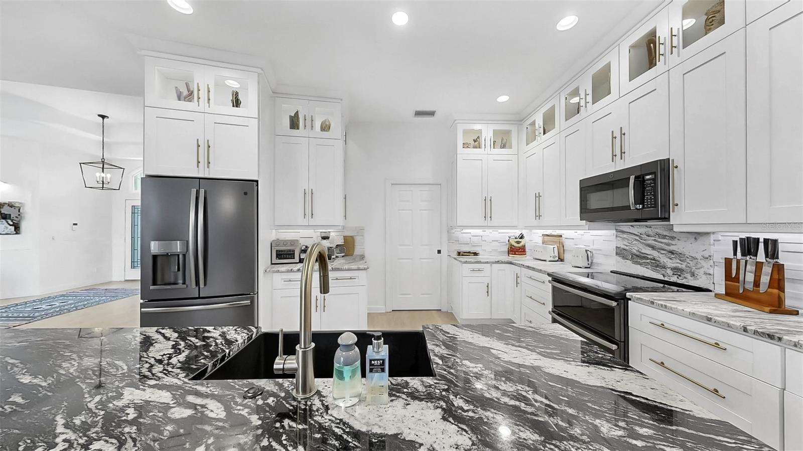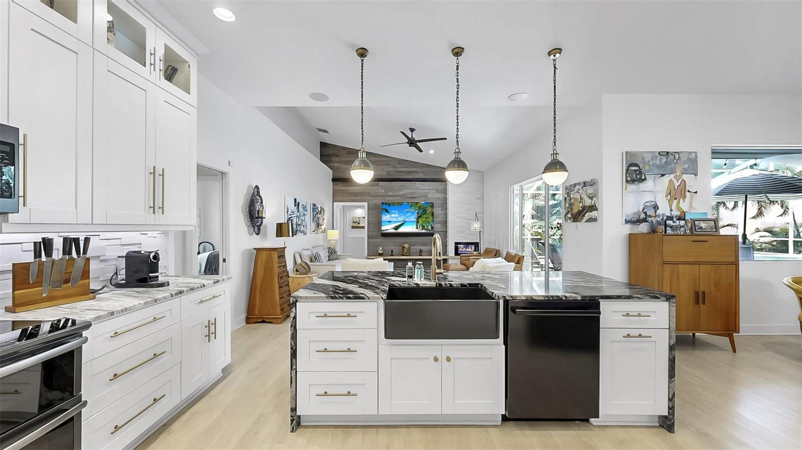 Discover the epitome of elegance and sophistication in this meticulously crafted waterfront home nestled within the prestigious Symphony Isles community. Every detail has been thoughtfully selected and upgraded to create a seamless blend of luxury, comfort, and style. From the moment you arrive, you'll be captivated by the beautifully landscaped grounds, featuring lush, well-maintained greenery and a welcoming front porch with classic columns. The pavered driveway leads to a spacious side-entry garage, complemented by a grand double-door entrance that beckons you inside. Step into an expansive open floorplan accentuated by luxurious upgraded laminate flooring, soaring double tray ceilings, and large windows dressed with elegant plantation shutters that flood the space with natural light. Upgraded lighting fixtures add a touch of sophistication throughout. The chef's kitchen boasts imported granite countertops, high-end GE Profile appliances, and sleek white cabinets reaching to the ceiling with tasteful crown molding. The large island provides ample workspace and casual dining options, perfect for entertaining. Relax in the spacious family room featuring a stunning wood accent wall and an electric fireplace—ideal for cozy evenings. For cinephiles, the $35,000 home theater system with Custom high end home theater amplifiers delivers incredible sound throughout the house. This entire home is equipped with smart technology, allowing you to control lighting, the EcoV thermostat, music, and more via Alexa. With three new AC units and a garage mini-split system, you’ll enjoy optimal comfort year-round. The luxurious master suite offers breathtaking water views and direct pool access. It features triple tray ceilings, two large California closets, and a spa-like bathroom with a spacious shower and a standalone soaking tub—your private sanctuary. On the opposite side of the home, you'll find three generous guest bedrooms and two large bathrooms, including one with pool access. Upstairs, a versatile open space awaits—perfect for a media room, hobby area, or art studio. Step outside to your fully renovated saltwater pool and patio area, equipped with Web-Control Aqualink, new pool heater, and automatic pool refill system. New outdoor kitchen, with commercial grade hood, beverage refrigerator, and large bar and siting area! Enclosed with Noseeim screens and a fully fenced yard, this outdoor oasis is perfect for entertaining and relaxing. Enjoy your private dock featuring two electric boat lifts with water and electric hookups—ideal for boating enthusiasts. The Symphony Isles community offers 24/7 manned gated security, private roads, a pristine private beach, clubhouse, and a private boat ramp. Schedule your private tour today and experience this exceptional waterfront paradise in Symphony Isles!