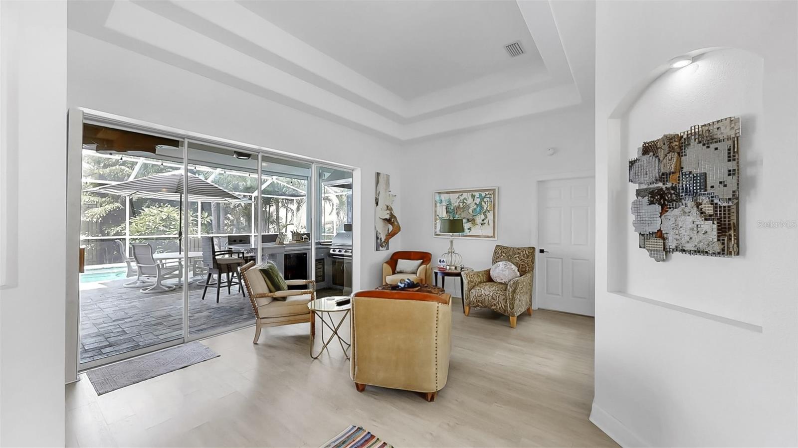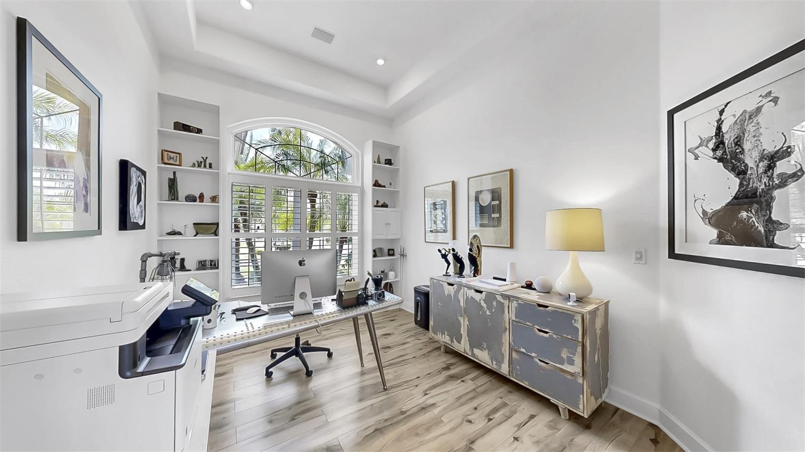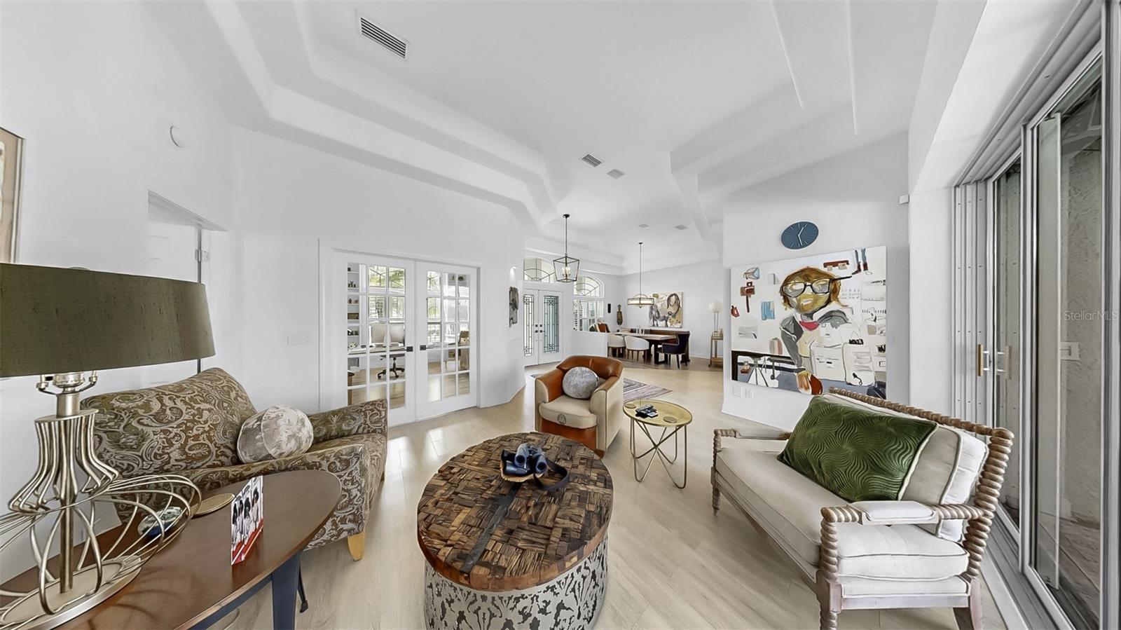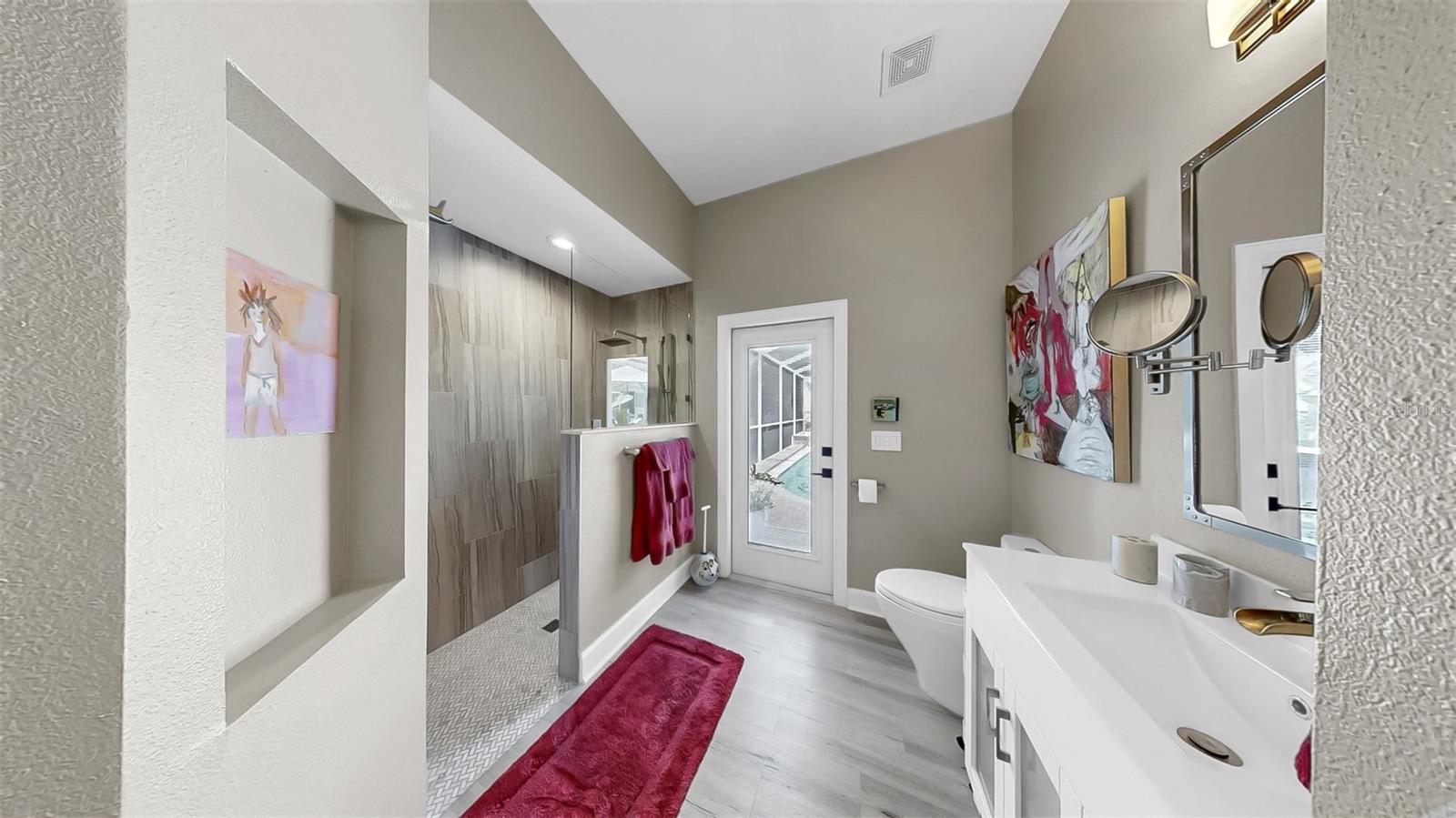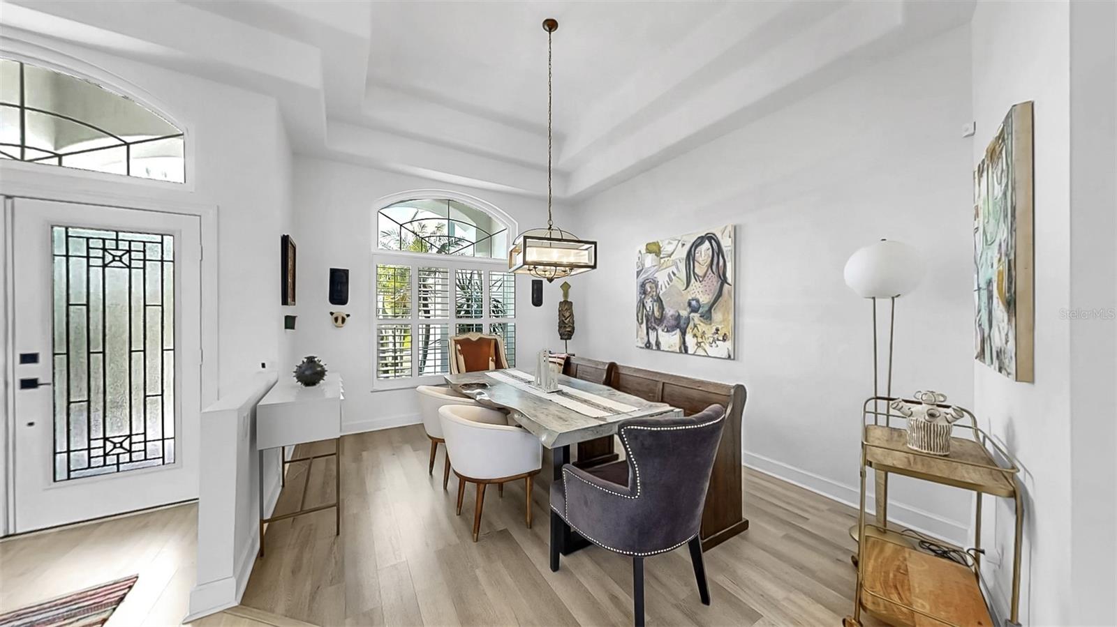 Discover the epitome of elegance and sophistication in this meticulously crafted waterfront home nestled within the prestigious Symphony Isles community. Every detail has been thoughtfully selected and upgraded to create a seamless blend of luxury, comfort, and style. From the moment you arrive, you'll be captivated by the beautifully landscaped grounds, featuring lush, well-maintained greenery and a welcoming front porch with classic columns. The pavered driveway leads to a spacious side-entry garage, complemented by a grand double-door entrance that beckons you inside. Step into an expansive open floorplan accentuated by luxurious upgraded laminate flooring, soaring double tray ceilings, and large windows dressed with elegant plantation shutters that flood the space with natural light. Upgraded lighting fixtures add a touch of sophistication throughout. The chef's kitchen boasts imported granite countertops, high-end GE Profile appliances, and sleek white cabinets reaching to the ceiling with tasteful crown molding. The large island provides ample workspace and casual dining options, perfect for entertaining. Relax in the spacious family room featuring a stunning wood accent wall and an electric fireplace—ideal for cozy evenings. For cinephiles, the $35,000 home theater system with Custom high end home theater amplifiers delivers incredible sound throughout the house. This entire home is equipped with smart technology, allowing you to control lighting, the EcoV thermostat, music, and more via Alexa. With three new AC units and a garage mini-split system, you’ll enjoy optimal comfort year-round. The luxurious master suite offers breathtaking water views and direct pool access. It features triple tray ceilings, two large California closets, and a spa-like bathroom with a spacious shower and a standalone soaking tub—your private sanctuary. On the opposite side of the home, you'll find three generous guest bedrooms and two large bathrooms, including one with pool access. Upstairs, a versatile open space awaits—perfect for a media room, hobby area, or art studio. Step outside to your fully renovated saltwater pool and patio area, equipped with Web-Control Aqualink, new pool heater, and automatic pool refill system. New outdoor kitchen, with commercial grade hood, beverage refrigerator, and large bar and siting area! Enclosed with Noseeim screens and a fully fenced yard, this outdoor oasis is perfect for entertaining and relaxing. Enjoy your private dock featuring two electric boat lifts with water and electric hookups—ideal for boating enthusiasts. The Symphony Isles community offers 24/7 manned gated security, private roads, a pristine private beach, clubhouse, and a private boat ramp. Schedule your private tour today and experience this exceptional waterfront paradise in Symphony Isles!