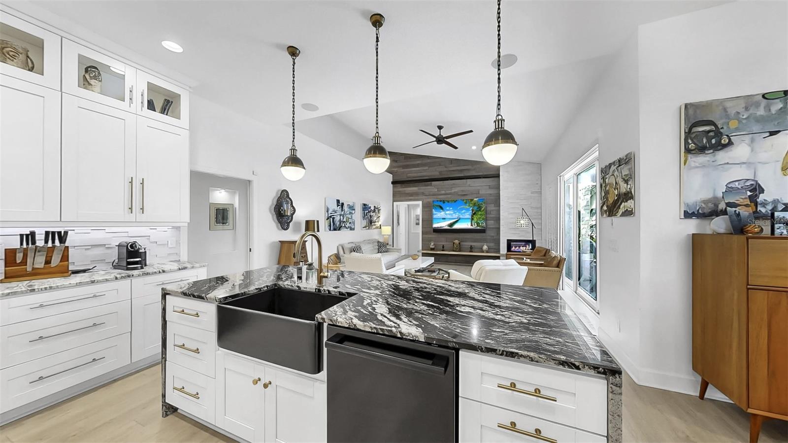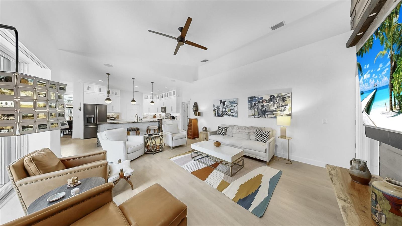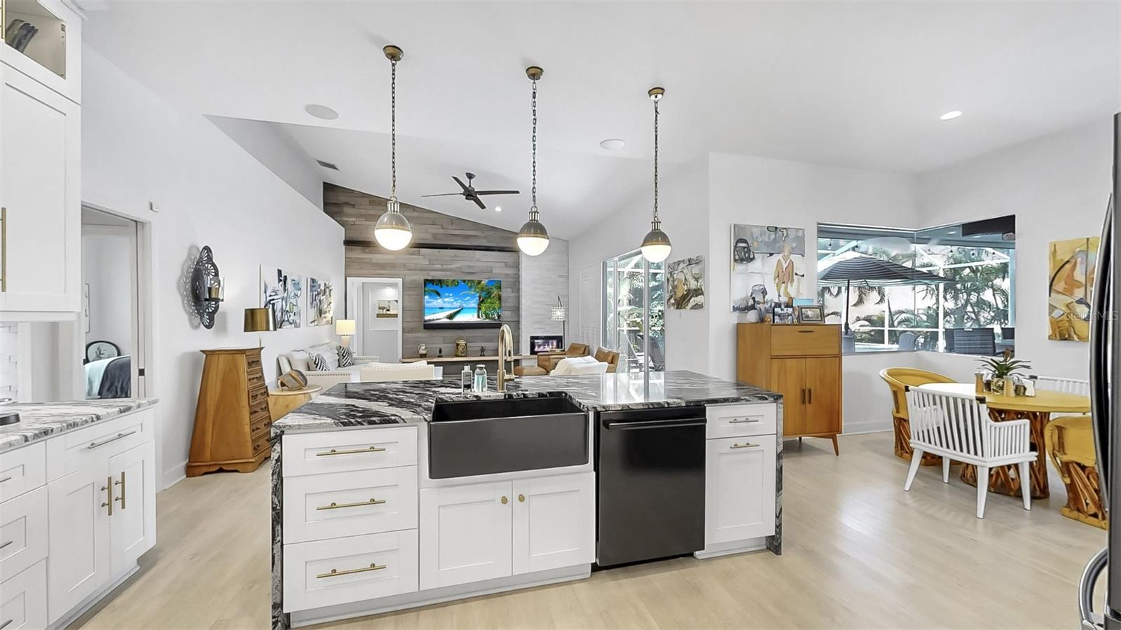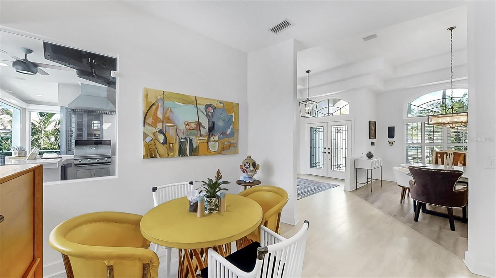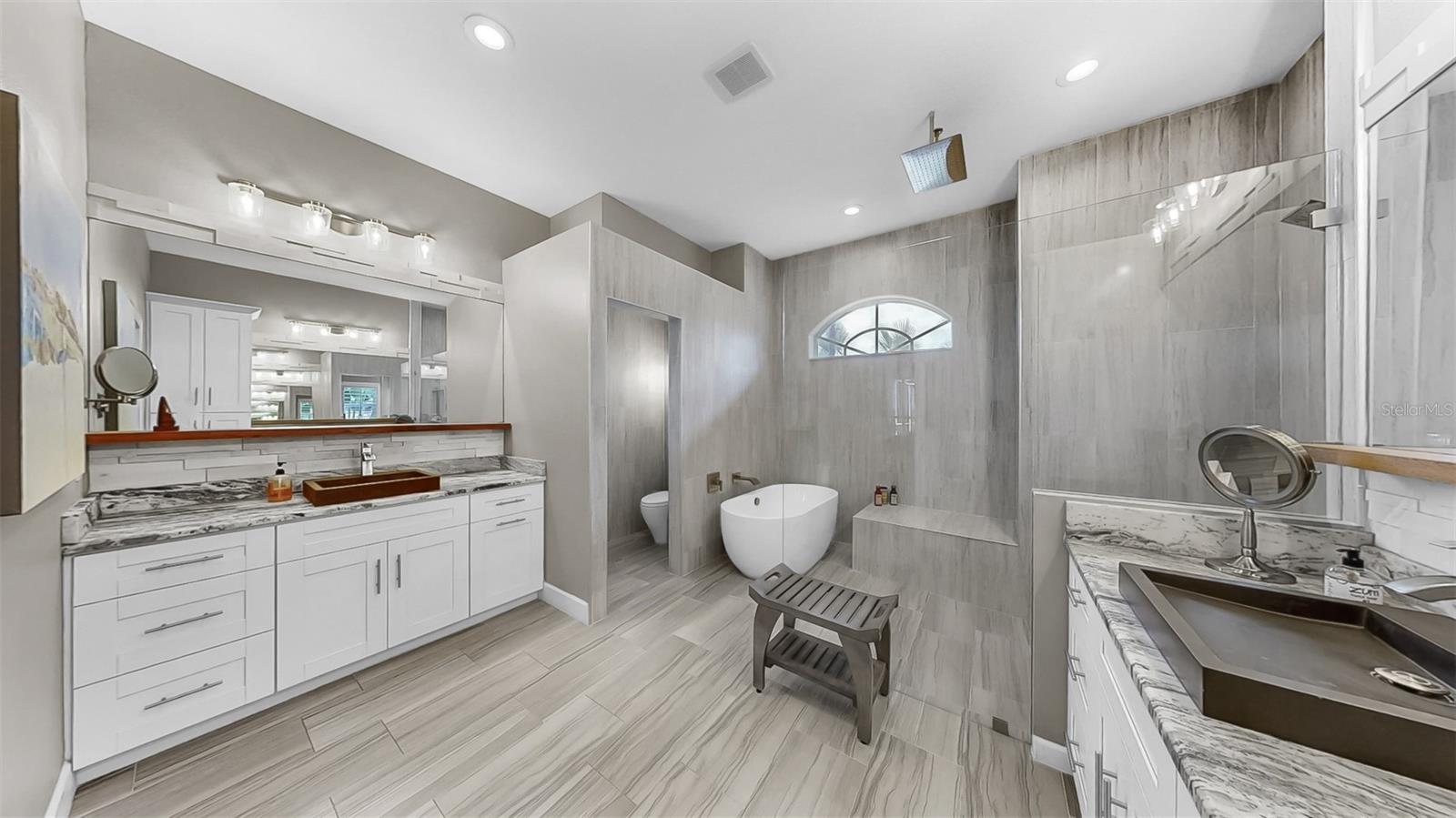 Discover the epitome of elegance and sophistication in this meticulously crafted waterfront home nestled within the prestigious Symphony Isles community. Every detail has been thoughtfully selected and upgraded to create a seamless blend of luxury, comfort, and style. From the moment you arrive, you'll be captivated by the beautifully landscaped grounds, featuring lush, well-maintained greenery and a welcoming front porch with classic columns. The pavered driveway leads to a spacious side-entry garage, complemented by a grand double-door entrance that beckons you inside. Step into an expansive open floorplan accentuated by luxurious upgraded laminate flooring, soaring double tray ceilings, and large windows dressed with elegant plantation shutters that flood the space with natural light. Upgraded lighting fixtures add a touch of sophistication throughout. The chef's kitchen boasts imported granite countertops, high-end GE Profile appliances, and sleek white cabinets reaching to the ceiling with tasteful crown molding. The large island provides ample workspace and casual dining options, perfect for entertaining. Relax in the spacious family room featuring a stunning wood accent wall and an electric fireplace—ideal for cozy evenings. For cinephiles, the $35,000 home theater system with Custom high end home theater amplifiers delivers incredible sound throughout the house. This entire home is equipped with smart technology, allowing you to control lighting, the EcoV thermostat, music, and more via Alexa. With three new AC units and a garage mini-split system, you’ll enjoy optimal comfort year-round. The luxurious master suite offers breathtaking water views and direct pool access. It features triple tray ceilings, two large California closets, and a spa-like bathroom with a spacious shower and a standalone soaking tub—your private sanctuary. On the opposite side of the home, you'll find three generous guest bedrooms and two large bathrooms, including one with pool access. Upstairs, a versatile open space awaits—perfect for a media room, hobby area, or art studio. Step outside to your fully renovated saltwater pool and patio area, equipped with Web-Control Aqualink, new pool heater, and automatic pool refill system. New outdoor kitchen, with commercial grade hood, beverage refrigerator, and large bar and siting area! Enclosed with Noseeim screens and a fully fenced yard, this outdoor oasis is perfect for entertaining and relaxing. Enjoy your private dock featuring two electric boat lifts with water and electric hookups—ideal for boating enthusiasts. The Symphony Isles community offers 24/7 manned gated security, private roads, a pristine private beach, clubhouse, and a private boat ramp. Schedule your private tour today and experience this exceptional waterfront paradise in Symphony Isles!