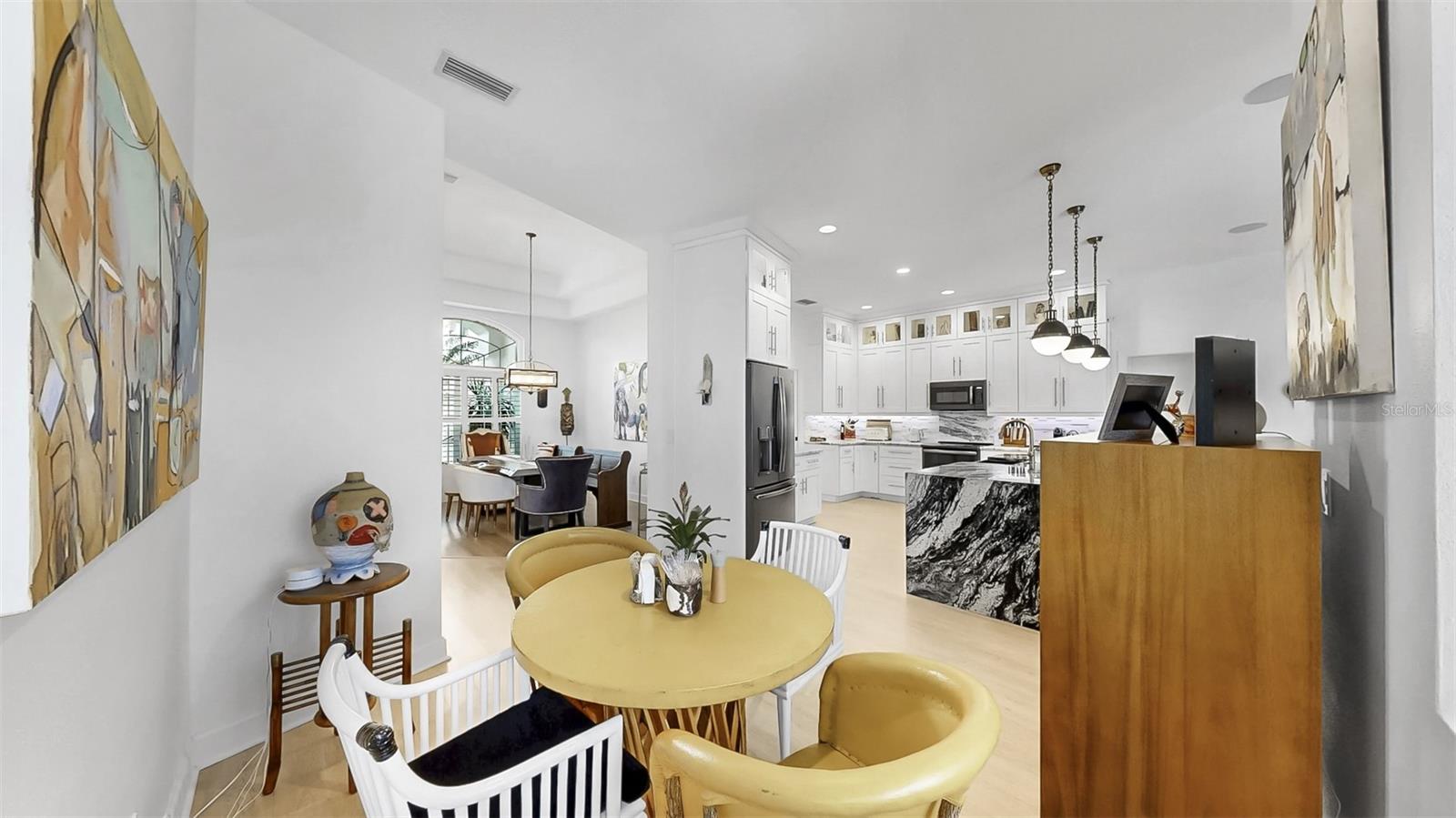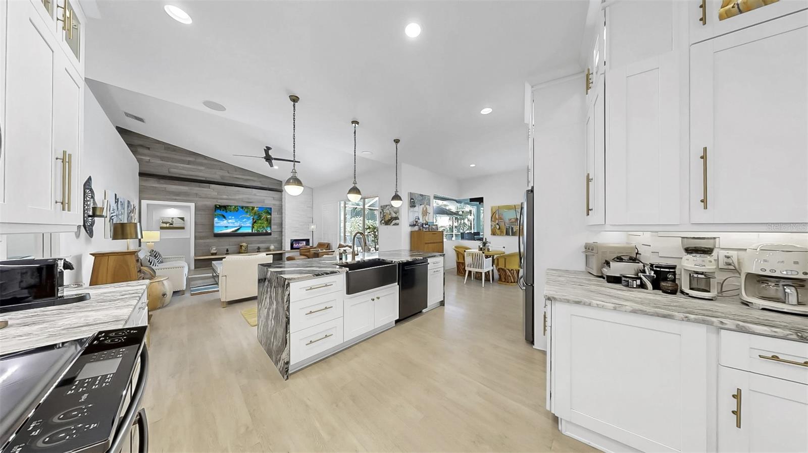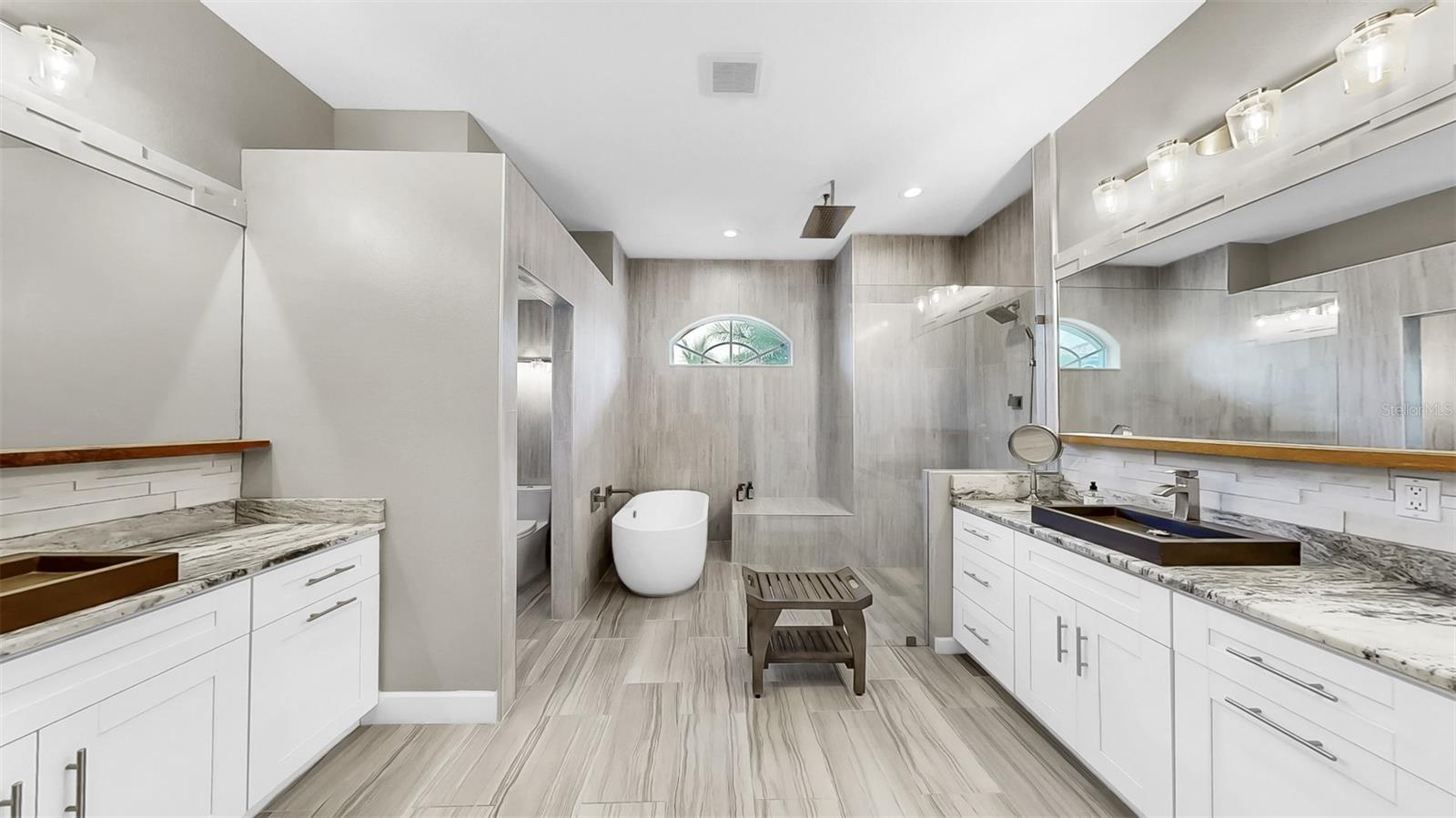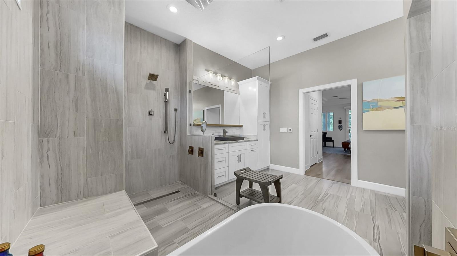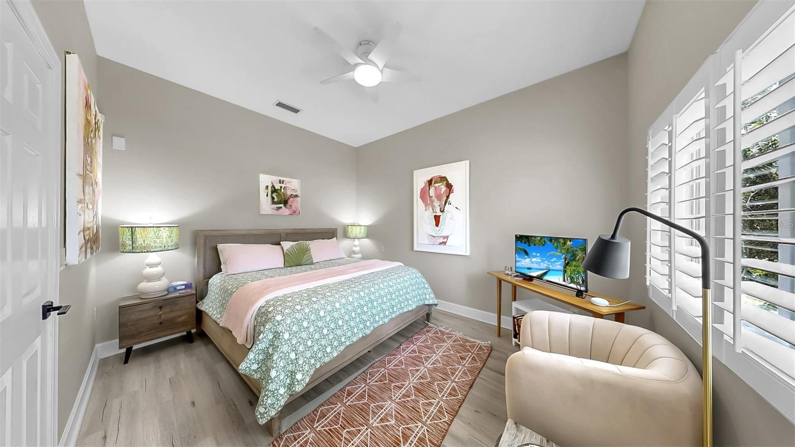 Discover the epitome of elegance and sophistication in this meticulously crafted waterfront home nestled within the prestigious Symphony Isles community. Every detail has been thoughtfully selected and upgraded to create a seamless blend of luxury, comfort, and style. From the moment you arrive, you'll be captivated by the beautifully landscaped grounds, featuring lush, well-maintained greenery and a welcoming front porch with classic columns. The pavered driveway leads to a spacious side-entry garage, complemented by a grand double-door entrance that beckons you inside. Step into an expansive open floorplan accentuated by luxurious upgraded laminate flooring, soaring double tray ceilings, and large windows dressed with elegant plantation shutters that flood the space with natural light. Upgraded lighting fixtures add a touch of sophistication throughout. The chef's kitchen boasts imported granite countertops, high-end GE Profile appliances, and sleek white cabinets reaching to the ceiling with tasteful crown molding. The large island provides ample workspace and casual dining options, perfect for entertaining. Relax in the spacious family room featuring a stunning wood accent wall and an electric fireplace—ideal for cozy evenings. For cinephiles, the $35,000 home theater system with Custom high end home theater amplifiers delivers incredible sound throughout the house. This entire home is equipped with smart technology, allowing you to control lighting, the EcoV thermostat, music, and more via Alexa. With three new AC units and a garage mini-split system, you’ll enjoy optimal comfort year-round. The luxurious master suite offers breathtaking water views and direct pool access. It features triple tray ceilings, two large California closets, and a spa-like bathroom with a spacious shower and a standalone soaking tub—your private sanctuary. On the opposite side of the home, you'll find three generous guest bedrooms and two large bathrooms, including one with pool access. Upstairs, a versatile open space awaits—perfect for a media room, hobby area, or art studio. Step outside to your fully renovated saltwater pool and patio area, equipped with Web-Control Aqualink, new pool heater, and automatic pool refill system. New outdoor kitchen, with commercial grade hood, beverage refrigerator, and large bar and siting area! Enclosed with Noseeim screens and a fully fenced yard, this outdoor oasis is perfect for entertaining and relaxing. Enjoy your private dock featuring two electric boat lifts with water and electric hookups—ideal for boating enthusiasts. The Symphony Isles community offers 24/7 manned gated security, private roads, a pristine private beach, clubhouse, and a private boat ramp. Schedule your private tour today and experience this exceptional waterfront paradise in Symphony Isles!