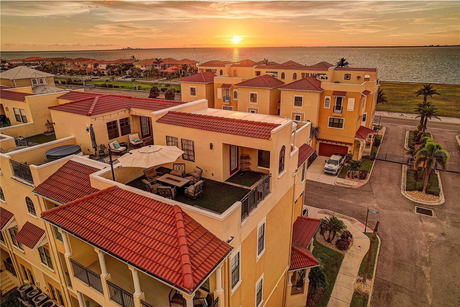 A rare opportunity at this price point! To live in the exclusive community of Brisa Del Mar. This property is the "Most Amazing Property" available in this community. This home offers extraordinary water views throughout the home and even more impressive, astonishing panoramic views of St Petersburg, the Skyway Bridge, Tampa's skyline as well as daily breath-taking sunsets with occasional Cruise /Cargo Ships sightings. The home has 3 Bedrooms and 4 Bathrooms totaling over 2700 sqft. Your “Private Elevator” allows easy access to all main levels of this Tri-level home. Features Include: 1st FLOOR: Offers a welcoming foyer for greeting guests, 1/2-bathroom, office, flex room (currently used as a the (4th Bedroom) a private Lanai. 2nd FLOOR: Offers a formal dining room, living room, family room and a beautiful kitchen with 42in crown molded cabinetry, granite countertops with a Bar, laundry room (with vanity and cabinets), 1/2 bathroom and a private Lanai. 3rd FLOOR: Owners retreat (Primary Bedroom) with double door entrance and a unique sitting area. The owner's space is a luxurious retreat with a glassed enclosed shower, granite top- double vanity, garden bathtub, and a large walk-in closet. The 2nd and 3rd Bedrooms, Full Bathroom as well as a Private Lanai are also on this floor. ROOF-TOP- Be amazed, thrilled and relaxed with a covered and open "Rooftop Terrace" for sitting, lounging, sun-tanning, parties and weekly views of cruise ships, daily boating traffic and a different "Breathtaking " sunset everyday as a bonus. So many designer and luxurious features in this home to include extraordinary water views from different levels of the home, crown molding throughout home for added elegance, marvelous wooden floors, decorative wall accents, plantation shutters, decorative ceiling fans, tinted sliders and 10ft ceilings/ 8 ft doors through-out the home. The double car garage with 13ft ceilings (with storage racks) provides more than significant storage space and parking. Bring your golf cart, electric scooters, or bicycles as the community is a short car/golf cart ride or walk to the best restaurants in the area, "Circles" and “Finn’s” as well as 2 Boat Marina’s. An added bonus to living here, is the close proximity to shopping centers, Manatee Viewing Venter and the Apollo Beach Nature Preserve which is a treasured destination. (The walkthrough video for this home is a must see). This home will not last long- schedule you’re showing today!