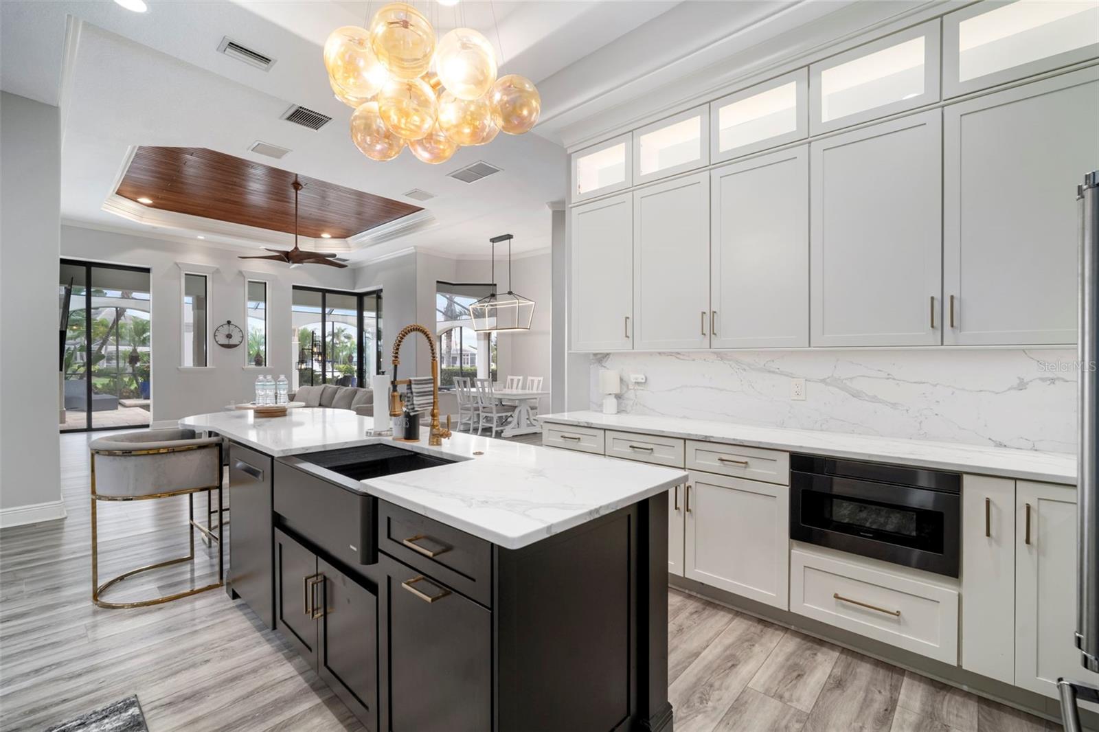 Exquisitely Updated Waterfront Estate in MiraBay’s impressive Bay Estates Experience the ultimate in Florida waterfront living with this stunning John Cannon custom home, perfectly positioned on a private cul-de-sac lot with approximately 200 feet of water frontage. Complete with a private dock and boat lift, this estate offers direct access to the lagoon and the best of the MiraBay lifestyle. Designed primarily as a single-story home, the layout blends elegance and livability. A long list of updates includes a new tile roof, new HVAC, new tankless water heater, new pool heater, wood flooring, designer lighting, and updated baths. At the heart of the home is a chef’s kitchen featuring top-of-the-line appliances, quartz countertops, custom cabinetry, an oversized island with seating, and a breakfast nook. The adjoining family room brings the outdoors in with fully retractable pocket sliding doors, opening to the lanai for seamless indoor-outdoor living. The first floor offers a thoughtful split-bedroom design: • A luxurious primary suite with sitting area, direct pool access, spa-style bath with oversized soaking tub, signature walk-in shower, and custom closets. • A full guest suite with its own private bath. • A third bedroom and a pool bath with direct lanai access, perfect for effortless entertaining and convenience. Formal living and dining rooms, plus a custom entertaining bar with wine storage, make hosting gatherings a delight. Upstairs, a remodeled guest suite with bath, spacious bonus room, and balcony provide privacy, comfort, and sweeping water views. The backyard oasis is truly exceptional. A resort-style heated pool and spa with travertine decking anchor the outdoor living space, complemented by a newly updated outdoor kitchen, covered dining area, cozy fireplace, extensive professional landscaping. Here, every evening feels special—whether you’re relaxing by the pool or taking in amazing sunsets over the lagoon. Additional features include: • Private office and wine closet • Custom closet systems • Tray ceilings • 2-car garage with epoxy floors and storage upgrades Living in MiraBay means more than just a home, it’s a lifestyle. This rare estate offers the perfect balance of luxury, comfort, and waterfront living—all set on one of the most sought-after cul-de-sacs lots in Bay Estates. As a resident of this gated resort-style coastal community, you will feel like you are on vacation every day. This home is located in the Beautiful waterfront, resort-style community of MiraBay!!!! Residents enjoy a clubhouse, resort-style pool, fitness center, tennis courts, parks, playgrounds, and a community boat lift allowing lagoon vessels up to 35 feet to access Tampa Bay. This resort-style community has a community clubhouse, heated-resort-style Olympic swimming pool, 136 ft water slide, parks, 3 playgrounds, gym, cafe with a full liquor license, basketball courts, tennis courts, fitness center, 135-acre lagoon where you can rent kayaks and paddle away, and much, much more. You will feel like you’re living in a 5-star resort! This community has it all. This home is centrally located and convenient to Tampa, Orlando, Bradenton, Sarasota, and St. Petersburg where you can experience the best Florida beaches, shopping, and entertainment. The Florida lifestyle you've been dreaming of awaits you. Paradise awaits! Call today for your private showing.