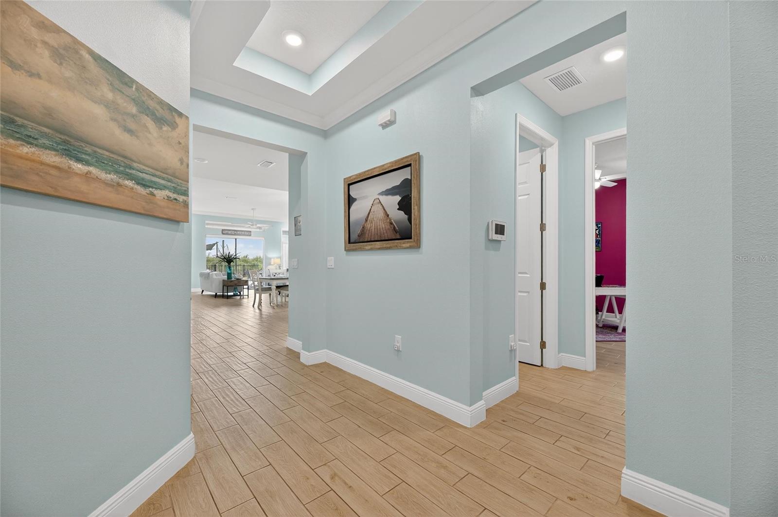6115 Sea Air Drive | 4Bed | Pool | Waterset Amenities Welcome to this 4 bedroom, 2 bathroom pool home with 2,222 square feet of living space in the highly desirable Waterset community of Apollo Beach. This popular Bayview floorplan, built in 2021 by Beazer Homes, offers a perfect mix of modern design, energy efficiency, and the relaxed Florida lifestyle. The open concept layout makes it easy to entertain or enjoy everyday living. The large kitchen is the heart of the home and overlooks the dining area and great room, creating a seamless flow. The kitchen features stainless steel Samsung appliances, granite counters, a large island, and plenty of cabinet space. Oversized windows, plantation shutters throughout, and double sliding doors fill the home with natural light and provide beautiful views of your private pool. The primary suite is tucked away for privacy and includes a tray ceiling, large walk-in closet, and a spa-style ensuite bath with dual sinks, a soaking tub, and a walk-in shower. Three additional bedrooms provide flexible space for a home office, guest suite, or playroom. Step outside and enjoy your own backyard retreat. A beautiful pool with hot tub, brick-paver patio, and spacious covered lanai extend your living space outdoors, while the fully fenced yard offers both privacy and security. This lanai was designed to accomodate a large screen enclosure should you desire that option. The roomy front porch overlooks a community greenspace, giving you an inviting view with no immediate front neighbors right from your doorstep. Premium features in this home include 6x24 wood-look tile throughout, Plantation shutter window treatments, 8’ entry and interior doors, a tray ceiling in the foyer and primary bedroom, flush-mount LED lighting in the great room, and custom interior paint throughout. Nestled on a cul-de-sac street, the home offers additional peace and privacy. Built to meet and exceed the latest ENERGY STAR® standards, the home also provides outstanding efficiency, and flood insurance is not required in Waterset. Living in Waterset means enjoying resort-style amenities, including 2 clubhouses, café, two gyms, scenic walking and biking trails, sports courts, multiple pools, playgrounds, and a busy calendar of community events. With nearby shopping, dining, and top-rated schools, plus easy access to Tampa, St. Petersburg, and Sarasota, this home blends comfort, convenience, and lifestyle in one of Apollo Beach’s most popular neighborhoods.