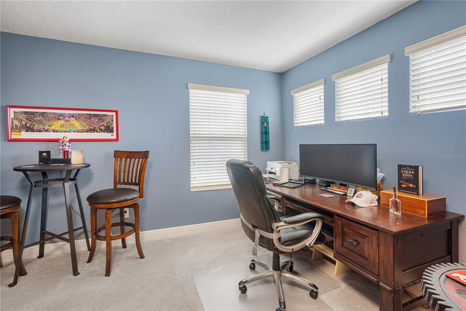 Welcome to this stunning residence located in the highly sought-after WaterSet community, where elegance meets modern convenience. Step inside to find beautiful granite countertops, crown molding, and plantation shutters that bring timeless charm to every room. The open layout is enhanced by soaring vaulted ceilings, creating a light and airy atmosphere throughout. Upstairs, a spacious bonus room offers the perfect retreat for a home office, playroom, or media space. This home was designed for both comfort and functionality, featuring a three-car garage for ample storage and parking. Enjoy lower electrical payments with solar panels! Outside, enjoy peaceful views from the large screened-in lanai, surrounded by thoughtful landscaping and backing to private conservation for added serenity. Gutters and other details add to the ease of maintenance, ensuring every detail has been considered. Located in WaterSet, you’ll have access to exceptional community amenities, including pools, trails, parks, and more—all within minutes of shopping, dining, and top-rated schools. This home combines refined finishes with an unbeatable location, offering the perfect Florida lifestyle.