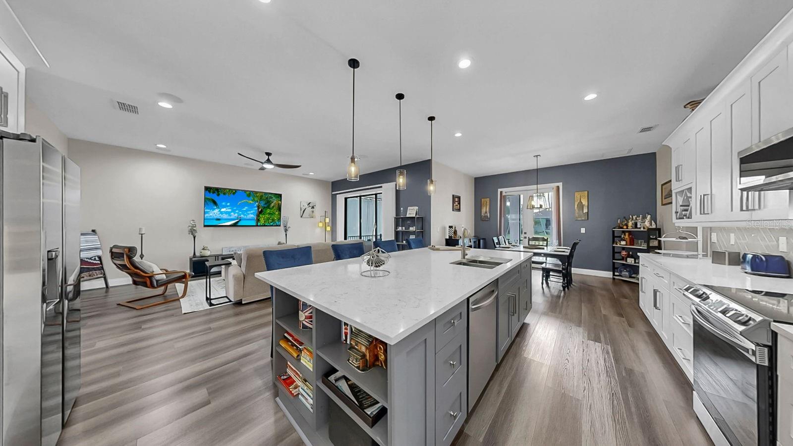 Welcome to this custom-built POOL home in the waterfront, guard gated community of Andalucia. Offering five spacious bedrooms (primary and one guest bedroom with ensuites on lower floor), four and a half bathrooms, and a private office. Luxury vinyl flooring throughout the main living spaces, with high-end wood laminate in the downstairs bedrooms. The chef's DREAM kitchen is the heart of the home, featuring a 10-foot island with storage, TWO ovens - a range with oven plus a built-in wall oven, a vented microwave to the outside, and an abundance of cabinetry including a large walk-in pantry. The dining area features French doors to the outdoors, while the living room boasts triple sliders that stack completely to the wall, extending your living space onto the screened lanai. Perfect for entertaining, the lanai overlooks a sparkling pool, fenced yard, and serene pond views, with a paved patio offering additional space for gatherings. The bright primary suite includes triple windows, two large walk-in closets, and a modern ensuite with dual sinks and a glass-enclosed shower. The guest suite downstairs features its own private bath and walk-in closet, while upstairs offers another ensuite bedroom plus two additional bedrooms with a full bath. Back downstairs, a spacious office with barn doors, a convenient half bath, and a large walk-in storage area under the stairs complete the thoughtful layout. Technology meets lifestyle with surround sound in the living area and lanai, plus built-in WiFi extenders throughout. Tile roof with gutters. 5 foot extra bumped out space in garage for extra storage with EXTENDED driveway for 4 cars. Full home inspection already completed. Andalucia residents enjoy resort-style amenities including a Bayfront clubhouse with pool and sunset views, a private marina (slips for rent or purchase - please check availability), tennis courts, a playground, and basketball. This home blends luxury, functionality, and community in a way that is hard to find. Ideally located just minutes from Tampa, MacDill AFB, Brandon, St Pete, Sarasota, and Bradenton. Quick access to I-75, US Hwy 41, Hwy 301 with easy drives to Florida's top beaches, Orlando attractions, and several airports.