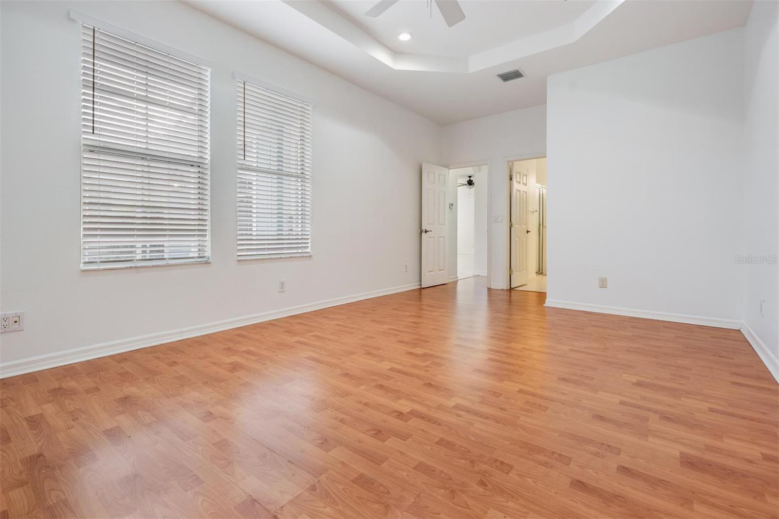 One or more photo(s) has been virtually staged. MOTIVATED SELLER!! Welcome to this stunning 2-bedroom, 2-bath, plus office (can be used as a 3rd bedroom) villa —move-in ready and packed with upgrades! Step inside to soaring 10-foot tray ceilings, an open, light-filled layout, and elegant touches throughout. Choose your perfect spot to unwind: a private rear courtyard connecting the home to the garage or a front screened patio overlooking a peaceful, park-like setting. The chef’s kitchen and baths feature granite countertops and solid cherry cabinets, complemented by custom blinds, a spacious laundry room, and plenty of storage. Enjoy easy living with an epoxied garage floor, tile flooring on both porches, and the privacy of a prime end lot. Major updates—newer roof & AC (2022) and new water heater—mean worry-free ownership. Nestled in the sought-after gated waterfront community of MiraBay, you’ll have access to resort-style amenities: a fitness club, tennis & racquetball courts, sparkling pool, poolside café, clubhouse, boat rentals, and more. This is one of the best values in MiraBay—impeccably maintained, full of charm, and ready to welcome you home!