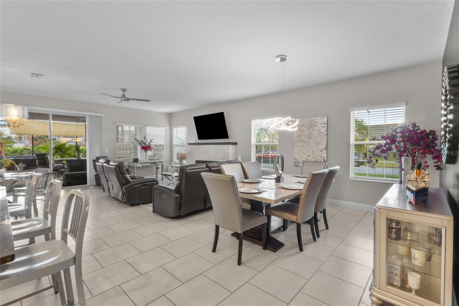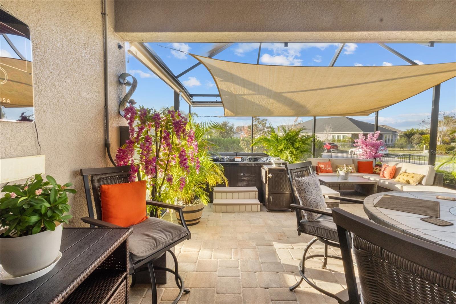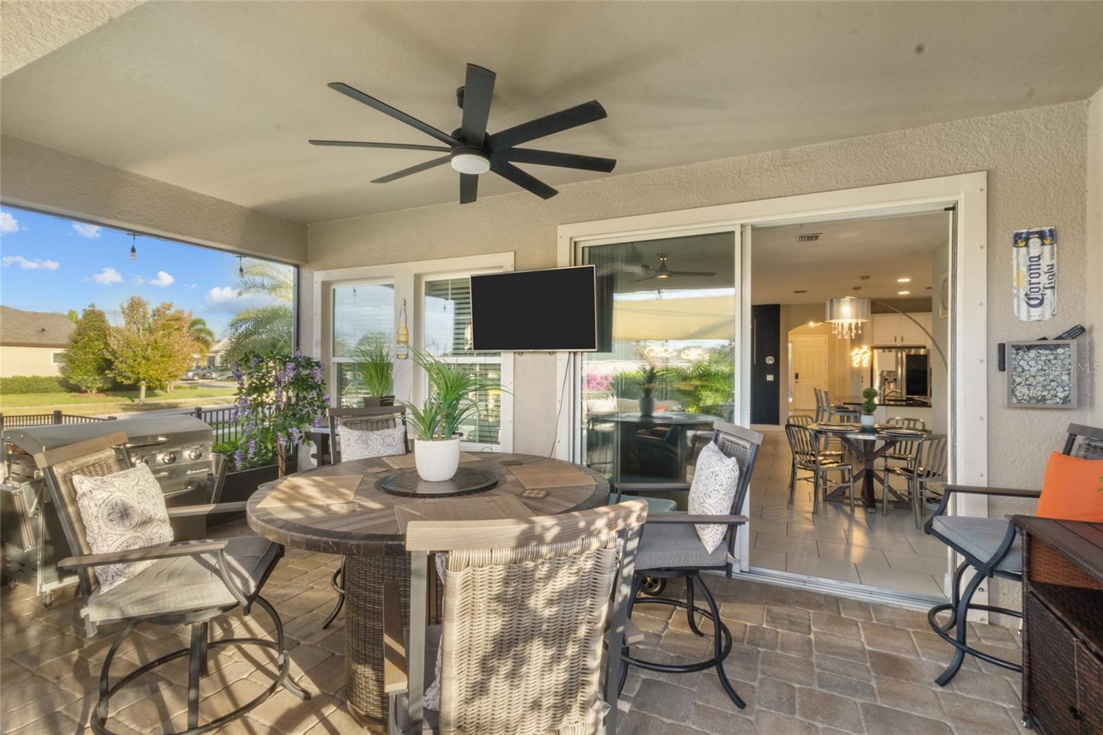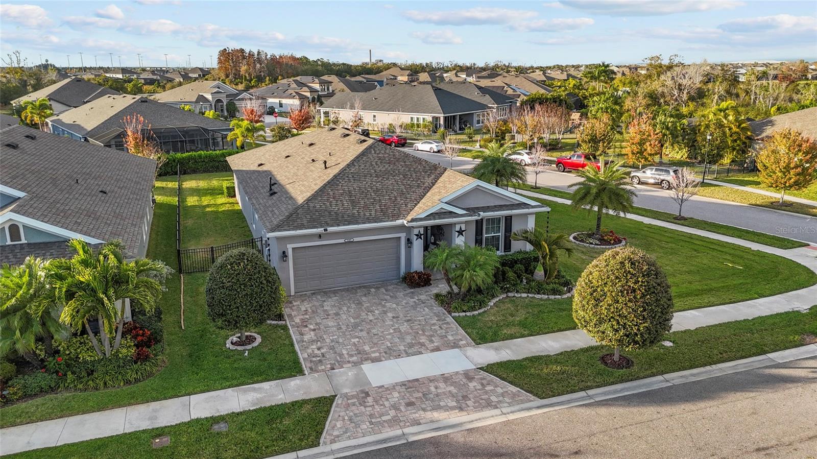 Welcome to this beautifully maintained 4-bedroom, 3-bath home offering 2,135 sq ft of modern living in the highly sought-after, resort-style community of Waterset in Apollo Beach. Perfectly positioned on a premium corner lot, this home offers extra privacy, additional outdoor space, and beautiful curb appeal from the moment you arrive. Inside, you’ll find a bright and spacious open-concept floor plan with tile flooring throughout, providing a clean, elegant, and low-maintenance living experience. The gourmet kitchen features stainless steel appliances, solid wood cabinetry, ample storage, and a large island that flows seamlessly into the dining and living areas—ideal for entertaining family and friends. This home offers a desirable split-bedroom layout, including a private en-suite bedroom with its own bathroom—perfect for guests, in-laws, or older teens. Every room is generously sized, offering comfort and flexibility for any lifestyle. Step outside to enjoy a fully fenced backyard and a screened-in lanai, creating the perfect space for morning coffee, evening relaxation, or weekend gatherings. Whether you’re grilling, playing, or simply unwinding, this outdoor area truly enhances Florida living. Located in the award-winning Waterset community, residents enjoy unmatched amenities, including multiple resort-style pools, water slides, fitness centers, tennis and basketball courts, playgrounds, dog parks, scenic walking and biking trails, community events, and a beautiful clubhouse. With easy access to major roads—including I-75, US-41, and US-301—commuting to Tampa, MacDill AFB, Brandon, or St. Pete is quick and convenient. Shopping, restaurants, entertainment, schools, and beaches are all just minutes away.