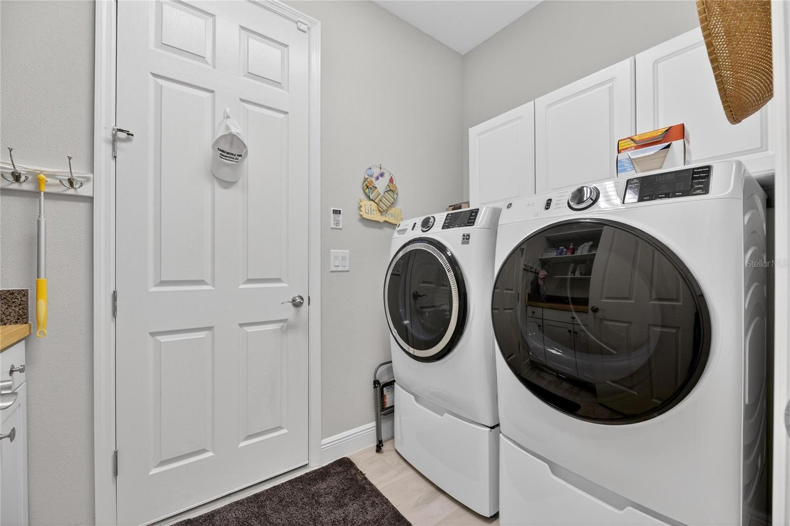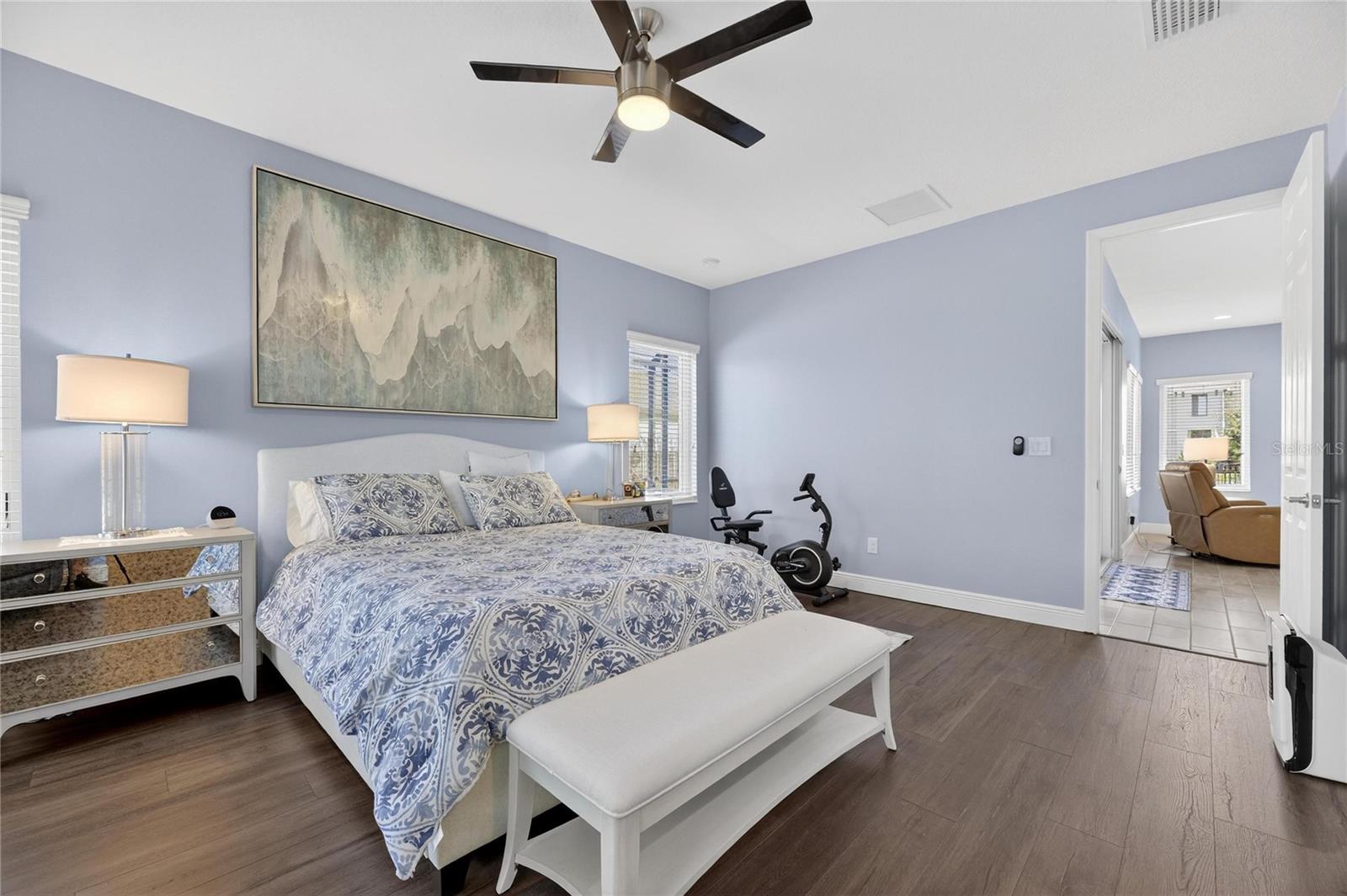 WHEN YOU KNOW, YOU KNOW! If you want and recognize quality upgrades well beyond most in an already upscale neighborhood, HERE is the home for you within wonderful Waterset! Inside and outside this Sandpiper by West Bay Homes, you'll find improvements and extras from a 400-SF screened lanai to $65,000 in Anderson brand-name, hurricane-impact, casement-style windows. These original owner expenses can be your advantages next as this beauty comes back to the market. Tile and luxury vinyl plank floors, decorator fans and fixtures, seamless gutters, salt-free water softener, 8-foot doors including full-glass French doors to the office and a frosted-glass entry with sidelight, Ring security system with cameras front and back, even an electric vehicle charger in the garage await you. The kitchen was gorgeous to start, featuring Zodiac quartz counters and Kinsdale cherry slate cabinets, but the owner chose higher-end appliances such as a Bosch dishwasher, Samsung 4-door black stainless refrigerator, and GE electric induction range (knowing the home is prepared for either electric or gas). Smart storage solutions were added throughout the property, from shelving systems in every closet to slide-out drawers in lower cabinets to countertopped cabinets in the laundry room. In the customized office, a space designed optionally as a 4th bedroom in the Sandpiper, the seller is including twin bookshelf towers and the attached file drawers between them. All this is provided in a professionally landscaped property with a stone-pavered walkway and patio connecting front to back, where flowering plants add privacy inside a picket fence of powder-coated black alloy. Waterset is a 1,319-acre master-planned development still expanding with thoughtfully designed public spaces and conservation areas, walking paths and playgrounds, neighborhood pools, a splash pad, and parks including dog runs. It's conveniently close to good schools, shops, restaurants, day care and health care, as well as major routes along Florida's Gulf Coast. See this home to decide what level of comfort you truly deserve!