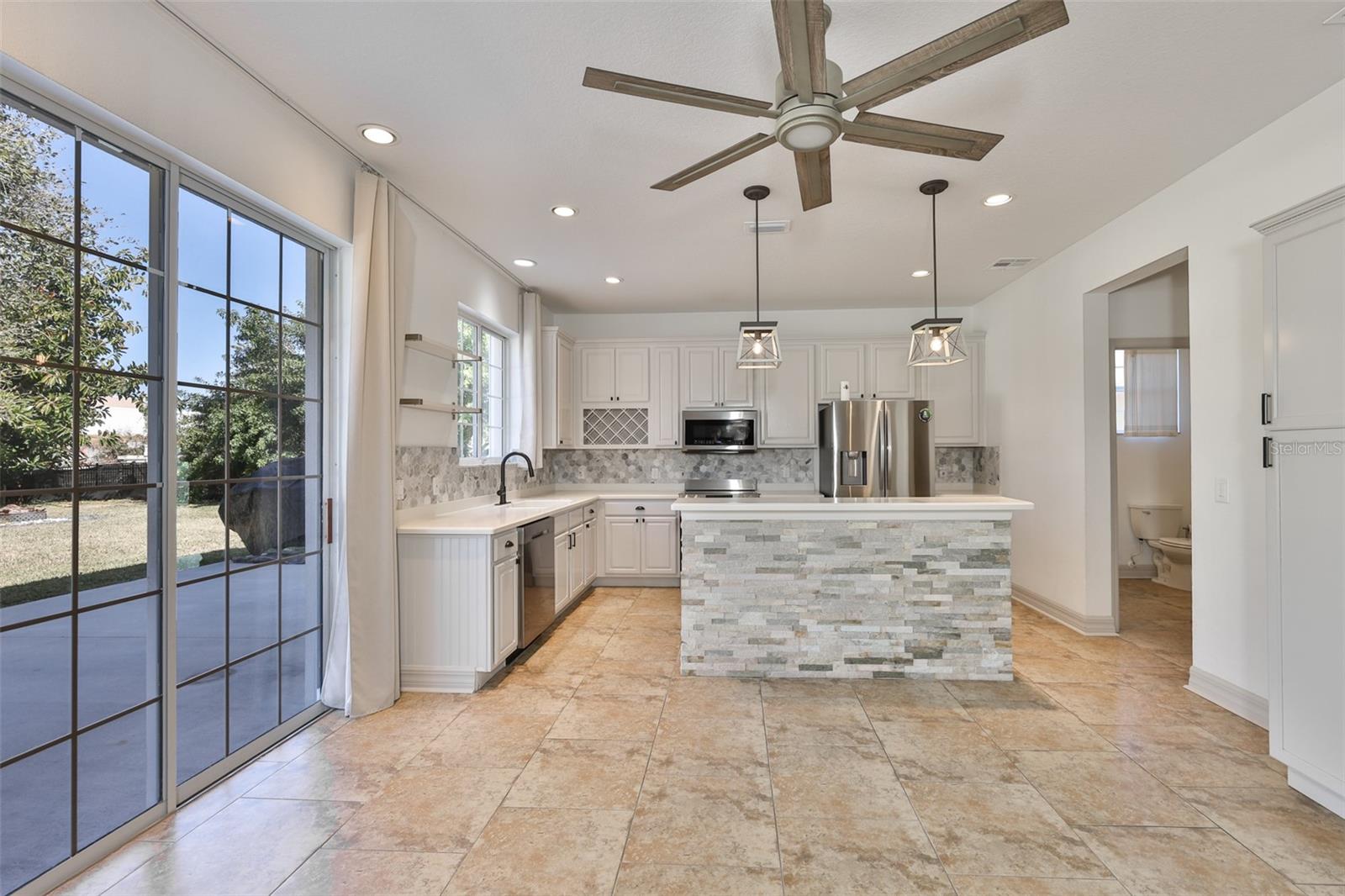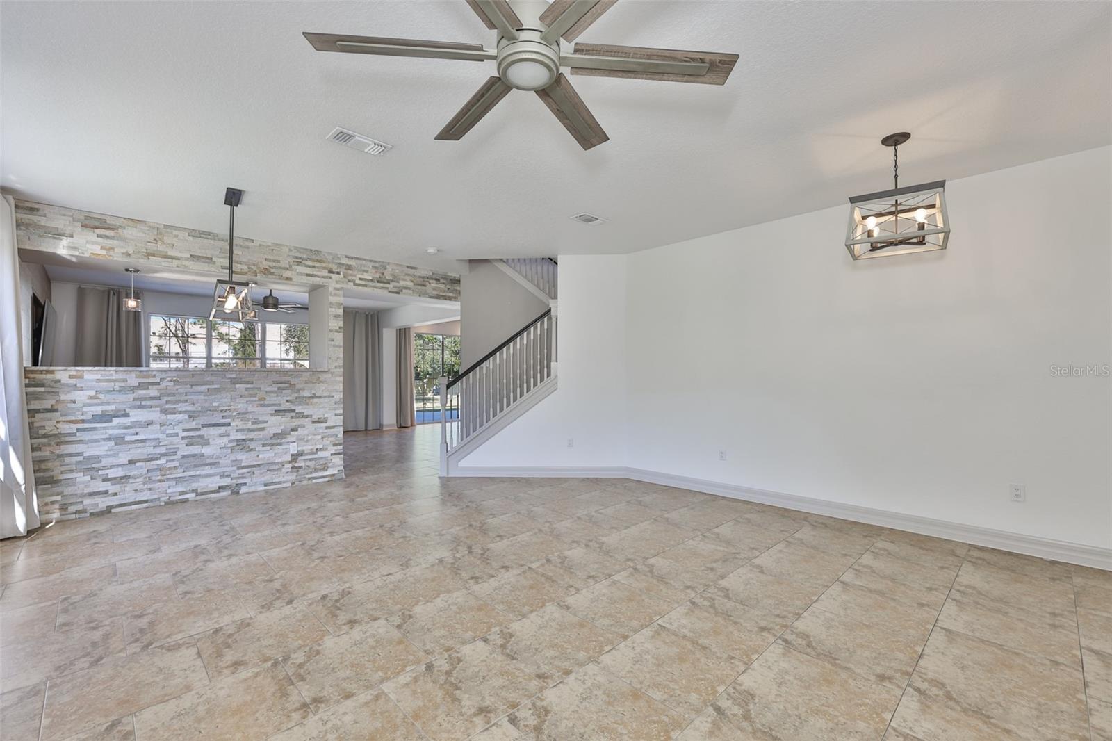 Welcome to this beautifully upgraded 4-bedroom, 2.5-bathroom home located in the highly desirable Harbour Isles community. Designed with both comfort and entertaining in mind, this move-in-ready property showcases stylish finishes and thoughtful upgrades throughout. Step into the open-concept living area featuring striking rock wall accents and a stunning inset 75-inch Samsung electric fireplace set within a custom wood feature wall. A custom-built bar with integrated lighting and wine bottle storage creates the perfect space for hosting and relaxing. The spacious kitchen offers a breakfast bar, all Samsung appliances replaced in 2021, and flows seamlessly into the family room for easy everyday living. A separate laundry room is conveniently located on the main floor. Upstairs, you’ll find all four bedrooms along with an additional family room/loft space, ideal for a media room, play area, or home office. The primary suite features a walk-in closet and a beautifully remodeled en-suite bathroom. All three bathrooms in the home have been tastefully updated, and each bedroom includes custom-built closets for enhanced organization. Additional upgrades include a new roof installed in 2024 with a transferable limited warranty, two new A/C units with transferable limited warranties, an extended three-car driveway, and a concrete pad in the backyard. The home is finished throughout with Harro waterproof and scratch-proof flooring, matching lighting fixtures, and self-leveling ceiling fans. The garage also features a Safe Rack ceiling storage system for added functionality. This exceptional home offers modern upgrades, flexible living space, and quality craftsmanship in one of the area’s most sought-after neighborhoods. Don’t miss the opportunity to make it yours.