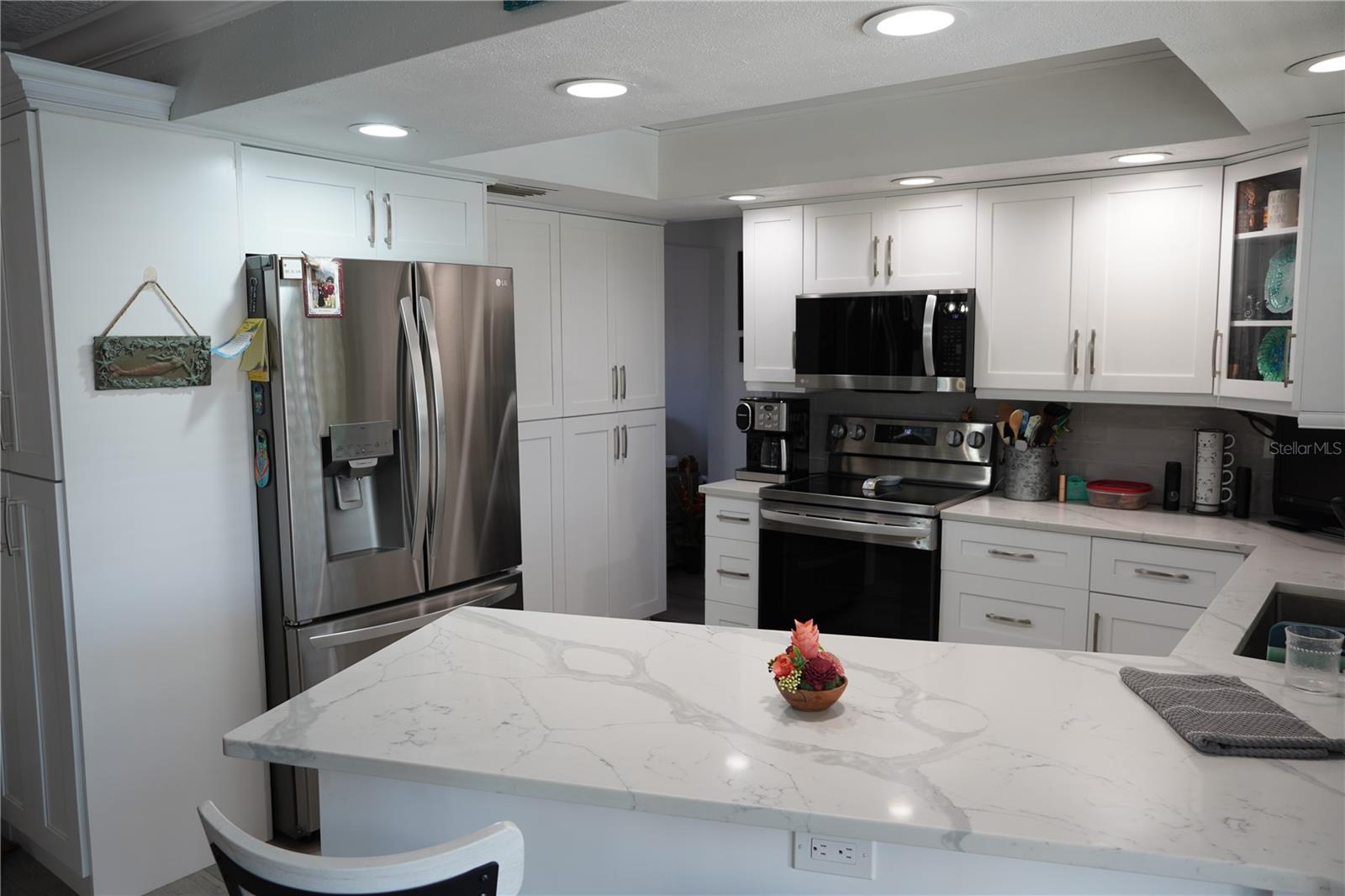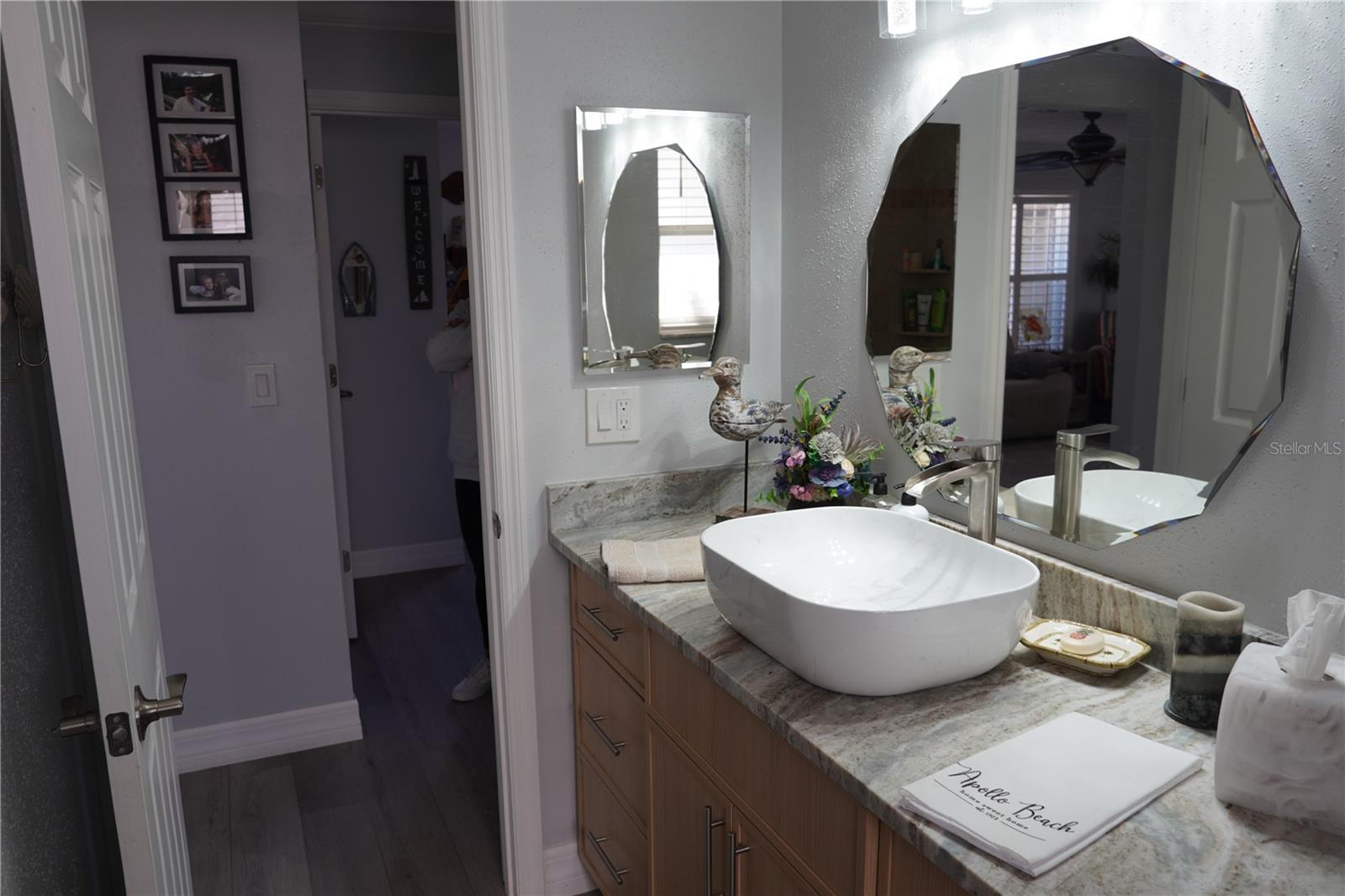 Tranquil waterfront living in this meticulously updated home. The upgrades have been well thought out to ensure a relaxed lifestyle. As you enter, you'll appreciate the open concept with waterproof luxury flooring throughout. Stainless steel appliances compliment the beautiful gray toned granite counter tops. A large stainless sink and soft close drawers are an added bonus in the kitchen. You'll notice the added touches like crown molding, plantation shutters on most window, French doors in master leading to your 16'x32' x 8' deep pool, extra wide pavered driveway for additional parking, and electrical outlets set at 2ft, plus so much more that you're going to want to go see for yourself. Hop in your boat and go to lunch at one of the many waterfront restaurants around the Tampa/St Pete area and of course Gasparilla too!! It's a lifestyle many only dream of.