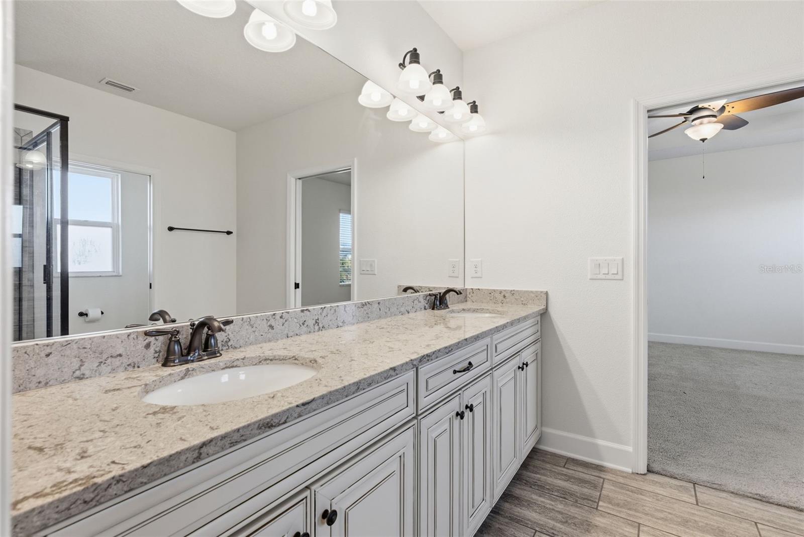 Welcome to this beautiful two-story home located in the highly sought-after Waterset community. Offering 4 bedrooms and 3 full bathrooms, this thoughtfully designed home features an open-concept layout perfect for both everyday living and entertaining. The main level boasts Mohawk hardwood flooring throughout and includes a convenient first-floor bedroom and full bath, ideal for guests or a home office. The kitchen is the heart of the home, showcasing antique off-white cabinetry, a large center island, and seamless flow into the living and dining areas. Enjoy Florida living at its best with two sets of sliding glass doors that open to a large covered, screened-in patio overlooking a fully fenced backyard that is perfect for relaxing or entertaining year-round. Upstairs, the spacious primary suite features a private ensuite bathroom and a large walk-in closet. Two additional bedrooms share a Jack-and-Jill bathroom, providing both functionality and privacy. Located in Waterset with access to resort-style amenities, walking trails, and community events, this home also offers easy access to Tampa, MacDill AFB, major highways, shopping, dining, and area beaches, making it ideal for both commuters and those looking to enjoy everything the Tampa Bay area has to offer. This home combines comfort, style, and an exceptional Florida lifestyle.
