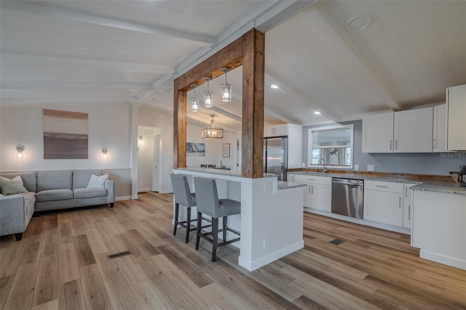 Welcome to Caribbean Isles, an exclusive 55+ resident-owned waterfront gated community located in Apollo Beach with direct canal access to Tampa Bay. This beautifully renovated home was completely rebuilt in 2025, offering modern finishes, quality upgrades, and true Florida waterfront living. This 3 bedroom, 2 bathroom home features approximately 1,387 SF in public record, plus an additional fully insulated and air-conditioned four-season lanai, bringing total usable space to approximately 1,800 square feet. The open layout includes cathedral ceilings, luxury vinyl plank flooring, granite countertops, custom kitchen island, stainless steel appliances, separate laundry room and pantry. Situated on an 8,665 square foot canal-front corner lot, the property includes a private floating wood dock with direct access to Tampa Bay — perfect for boating, kayaking, and enjoying manatees and dolphins right from your backyard. Community amenities include a heated pool, clubhouse, boat and kayak launch, RV and boat storage, dog parks, fitness activities, and more. Conveniently located near Apollo Beach Nature Preserve, Tampa, and Tampa International Airport. Some of the additional amenities include bocce-ball, shuffleboard, and horseshoes. Inside, the clubhouse has many amenities including a large area for gatherings, dances, bingo, and of course pot-luck dinners to mention a few. Large game room including bar shuffleboard, darts, card table and 3 pool tables. Separate crafting room for ceramics (2 large kilns), quilting and other crafting. There are regular outside the park activities to keep you on the go. Come see why the Caribbean Isles in Apollo Beach is such a wonderful place to live. The home is being sold fully furnished and is truly move-in ready.