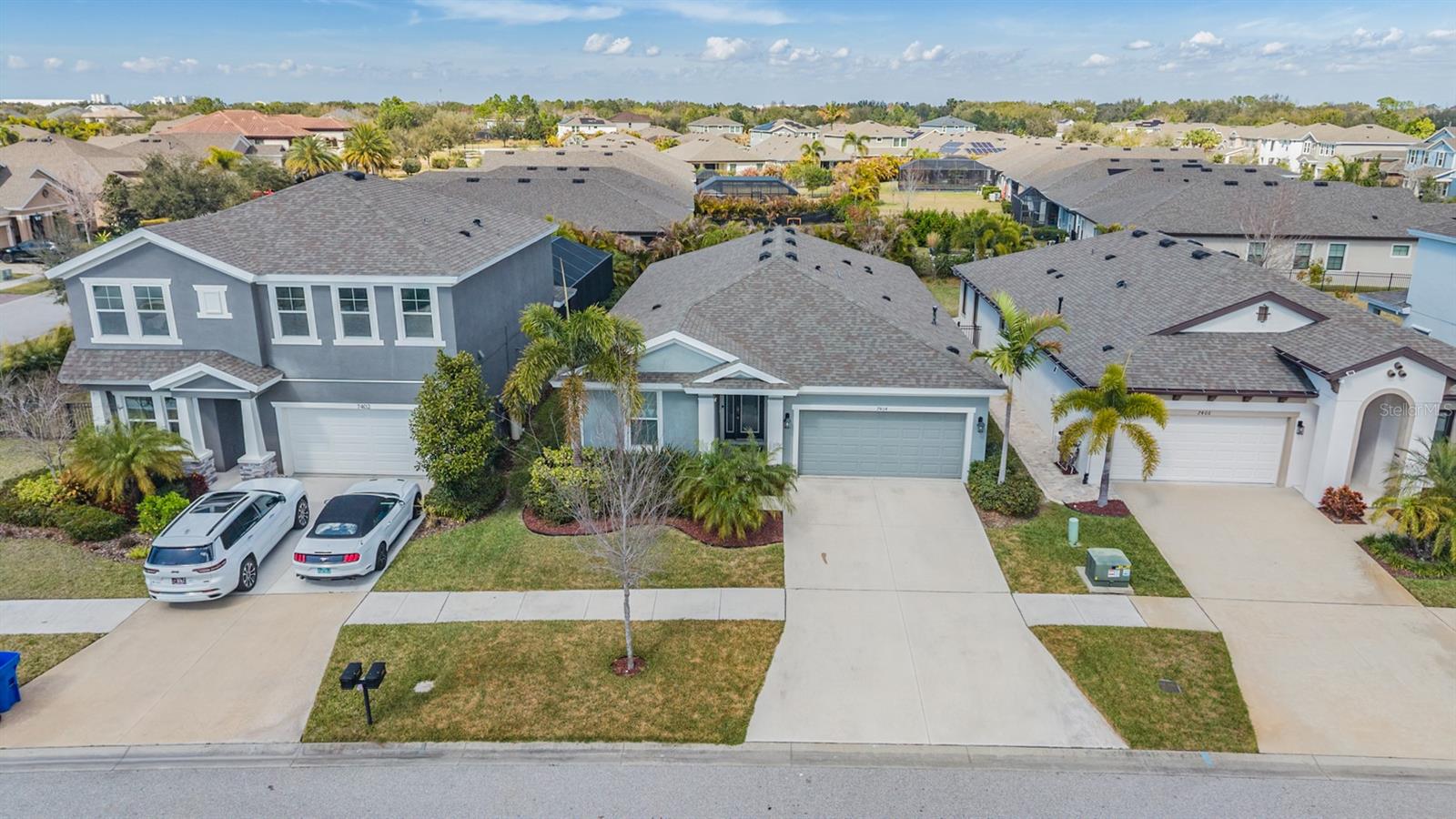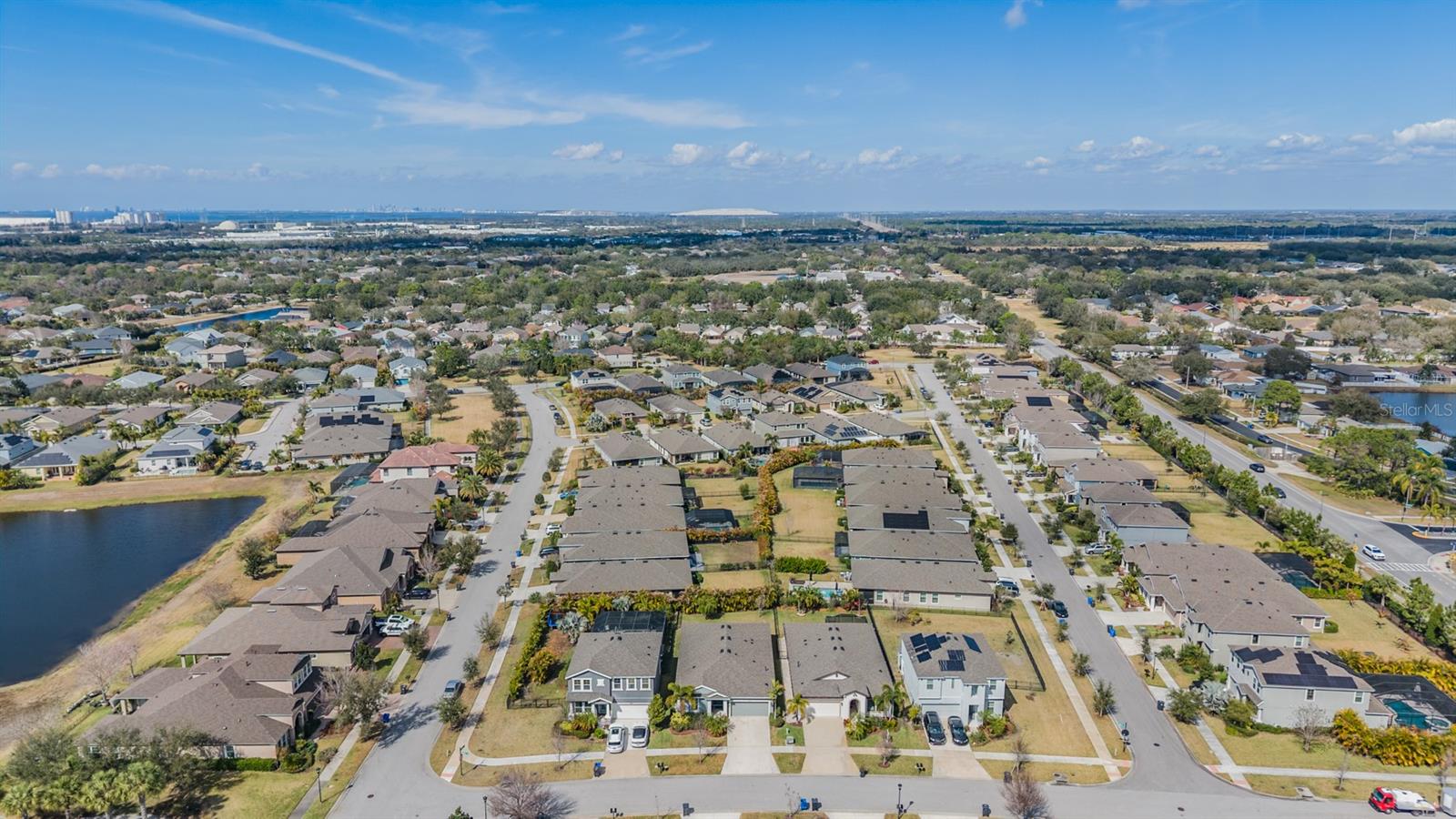 Welcome to Waterset in Apollo Beach! Built in 2020 by Homes by WestBay, this Sandpiper floor plan offers 4 bedrooms, 3 baths, and 2,805 sq ft on a quiet street. The split layout features a spacious primary suite with custom closets and a secondary en-suite bedroom—ideal for guests or in-laws. Enjoy tall ceilings, arched hallways, abundant natural light, and quartz countertops throughout. Upgrades include added laundry storage, overhead garage racks, mature landscaping with St. Augustine grass, privacy palms, and a blooming Bottlebrush tree. The HVAC is regularly serviced and under warranty. Resort-style amenities include pools, clubhouse, café, sports complex, trails, and more—all with a low annual HOA of $151.41.