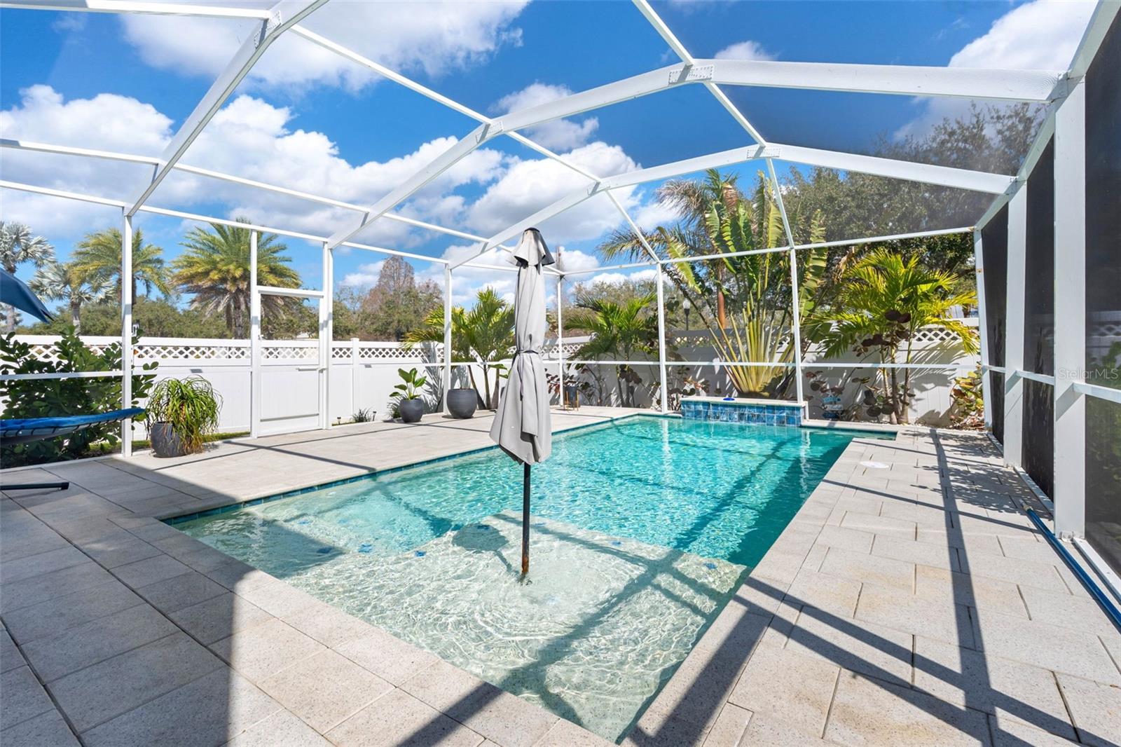 Gorgeous pool home in the gated resort-style community of MiraBay is now ready for a new owner! This well appointed home features many upgrades and designer touches you won't find in your average new construction home. This home boasts 4-bedrooms, 3-baths, a 2 car garage and 2,532 sq ft heated/3,202 SqFt total under roof. There is a bedroom on the first floor currently used as an office with a full bath and 3 bedrooms and a generous sized loft on the second floor with 2 additional bathrooms. This practically new home, built in 2022 by Park Square homes offers a gourmet kitchen, dining, living room open concept with sliders making indoor/outdoor entertaining a breeze. Enjoy beautiful quartz countertops, large format tile backsplash, farmhouse sink, stainless steel appliances, 42" soft gray wood cabinetry, stainless vented hood, gas cooktop and island with counter height seating. The downstairs has soft gray tile throughout. Enjoy swimming year round in your screened-in, heated salt-water pool with shell lock pavers, generous sized covered lanai, mature landscaping and vinyl privacy fence. The staircase has beautiful accent handrails inviting you upstairs to the generous sized loft showcasing a beautiful statement window with views of green space. The spacious master retreat features double door entry, a gorgeous wood coffered ceiling, a walk-in closet with an organization system, an en-suite bath with quartz counters, double sink wood vanity, loads of storage and a gorgeous walk-in shower glass enclosure with elegant floor to ceiling tile. Two more spacious bedrooms are past the loft and share a dual vanity full size bath. Give yourself the gift of resort-style living in MiraBay where you will have access to two pools, an impressive clubhouse, a fitness center with fitness classes, café, lounge, water sports vessels, walking trails, playgrounds, basketball, tennis, and pickleball courts. Golf cart friendly community with friendly neighbors and community events. Make an appointment today so you can start living the lifestyle you deserve.