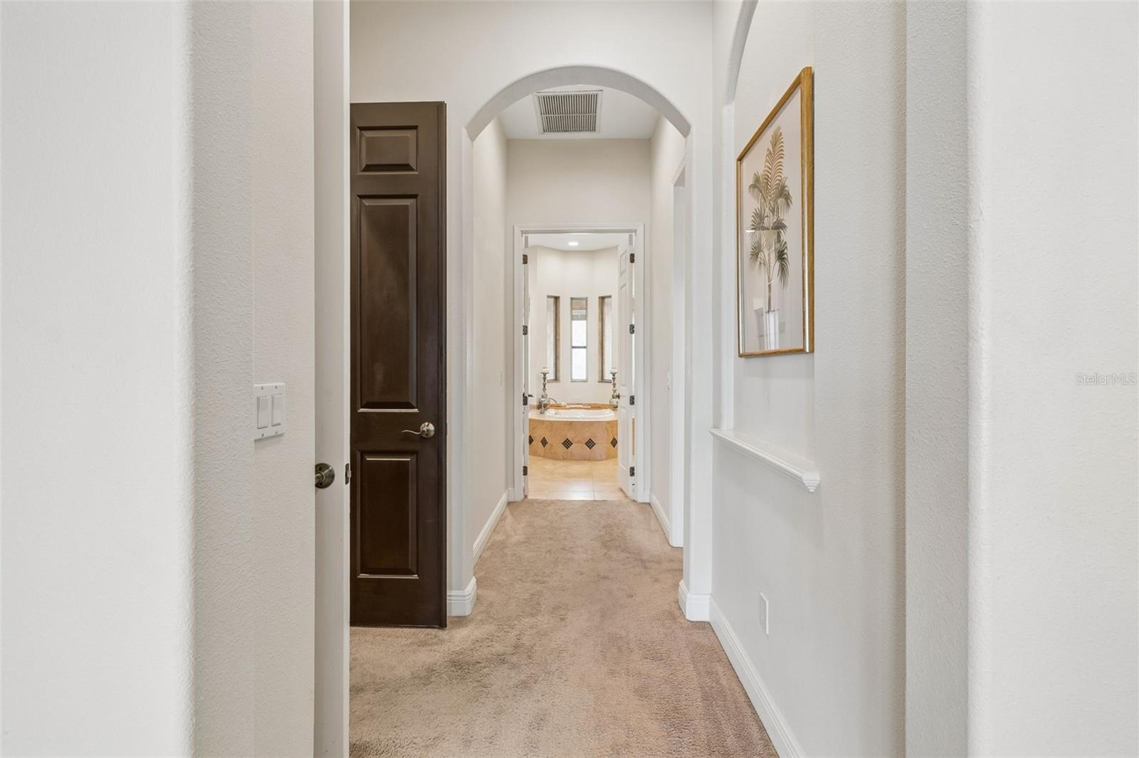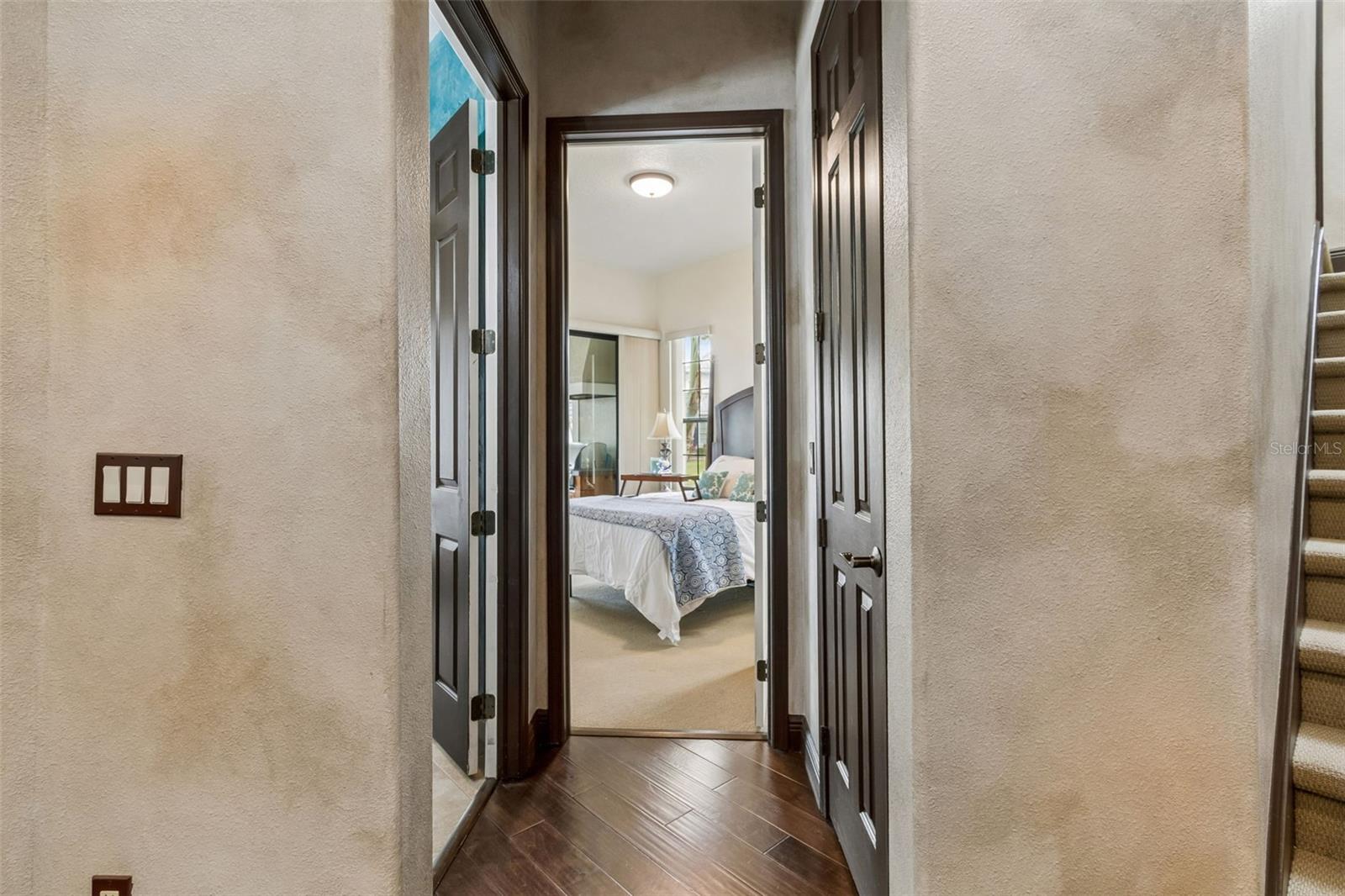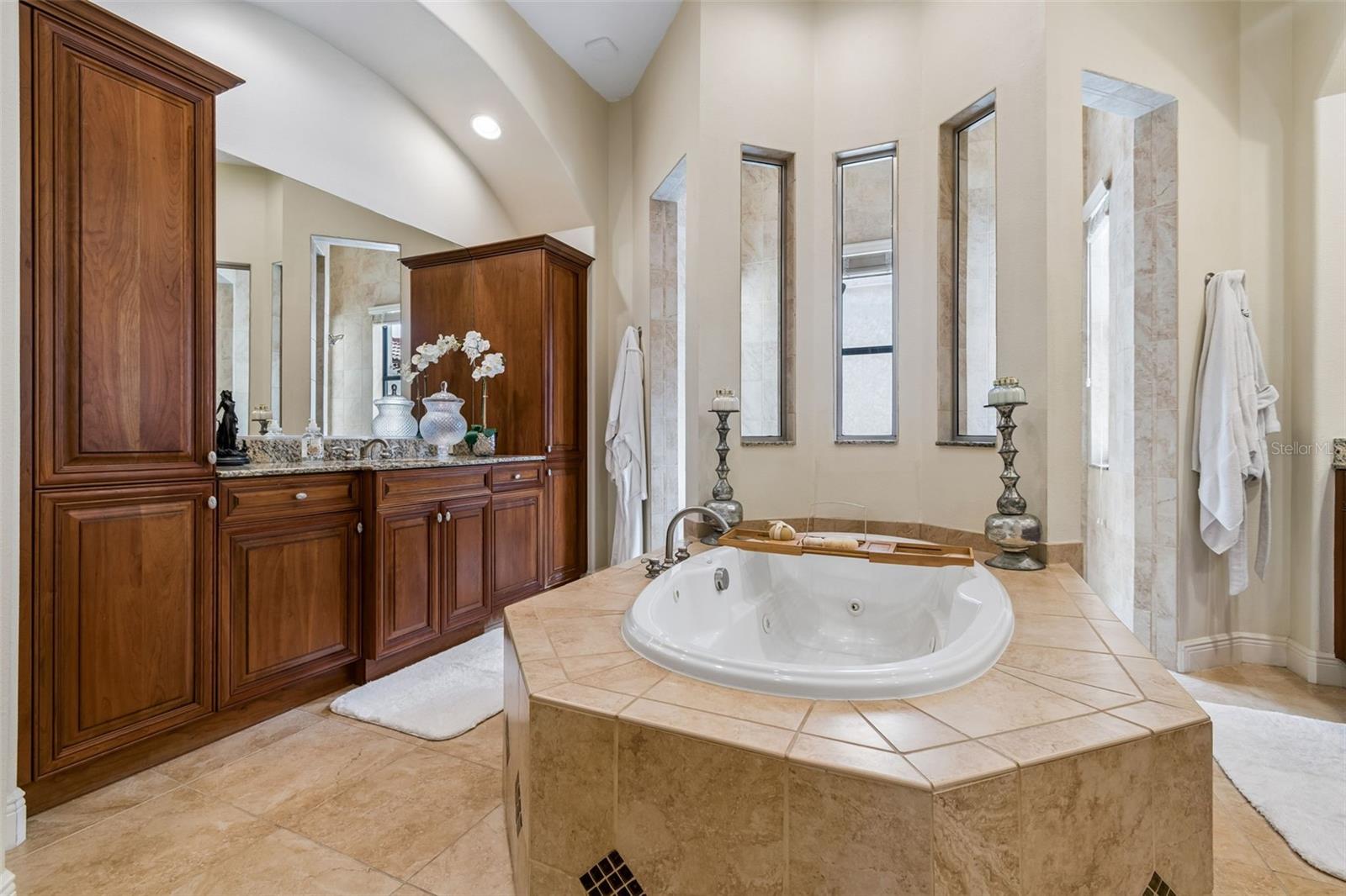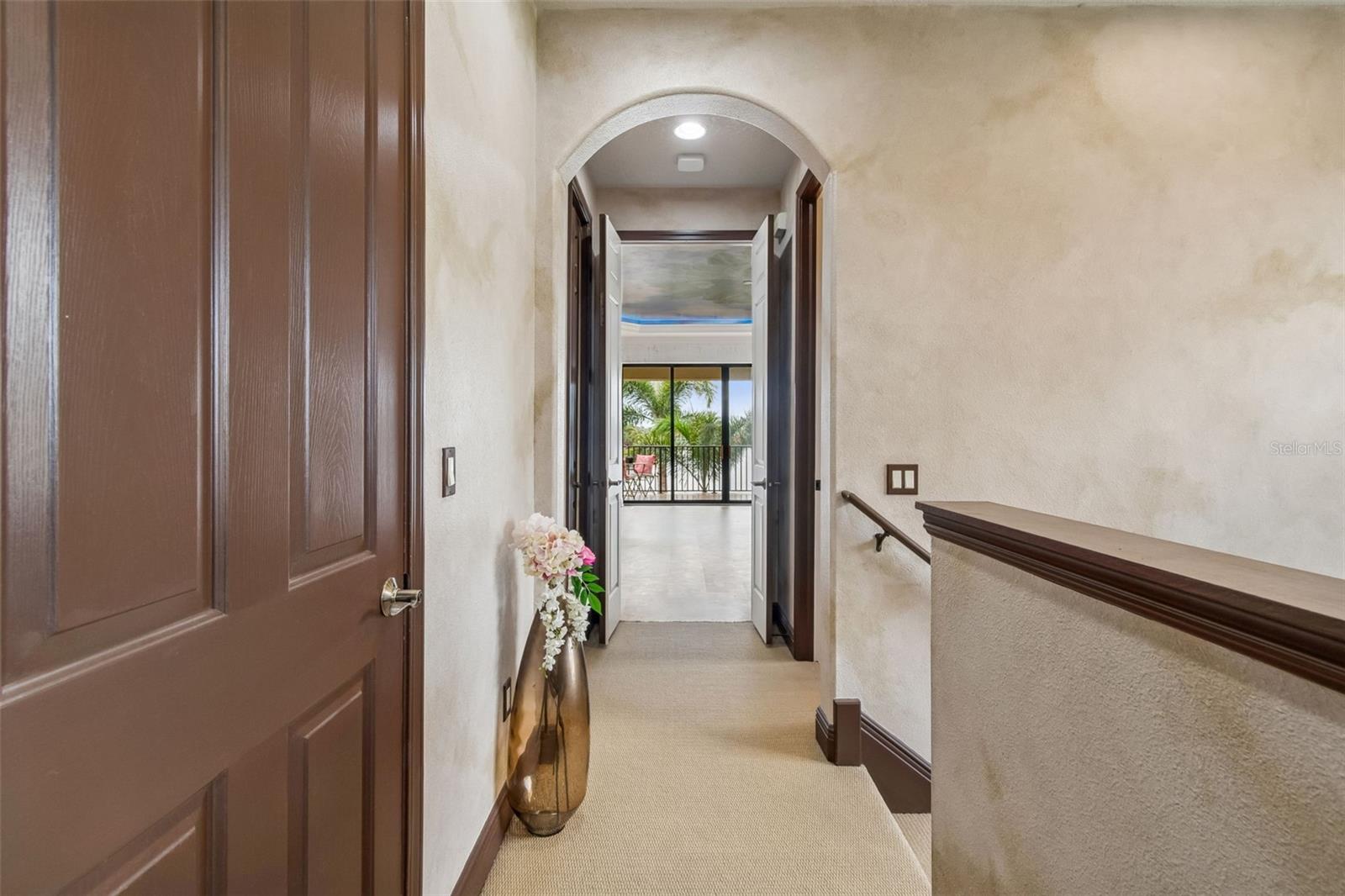 Welcome to a residence where thoughtful design, modern comfort, and timeless character come together in perfect harmony. From the moment you step inside, a soaring foyer draws your eye straight through the living room to the sparkling pool and the tranquil lagoon beyond, a breathtaking first impression that sets the tone for the entire home. Sunset views from the screened-in pool area are nothing short of spectacular. Inside, tall ceilings, custom finishes, and curated textures create a warm, inviting atmosphere that never feels cavernous despite the home’s generous scale. The wine closet, framed by a custom-carved wood detail over glass, pairs beautifully with the striking bar area featuring a mirror-mosaic wall treatment. The family room, kitchen, and eat-in space flow seamlessly together, anchored by an incredible barnwood feature wall with hidden storage, a 77" TV, and an LED fireplace. A woven bamboo ceiling and softly glazed walls add depth and sophistication. The chef’s kitchen is a dream workspace, equipped with Viking appliances, a gas cooktop, a pantry closet, a butler’s pantry, a prep sink, granite countertops, and abundant storage. A mica-accented ceiling inset adds a subtle glow. Nearby, the large laundry room offers a sink and additional storage. Three bedrooms are located on the main level, including the serene primary suite. Overlooking the pool and lagoon, it features a raised sitting area, a massive custom closet, and beautiful lighting. The spa-inspired primary bath includes a walk-in shower facing an outdoor water feature, dual vanities, a makeup area, and a private water closet. The second bedroom includes an ensuite bath and walk-in closet, while the third bedroom offers a large walk-in closet and peaceful water views. The screened-in pool area features brick decking, a gas fireplace, and a fully equipped outdoor kitchen with a brand-new built-in gas grill, tile countertops, and ample storage. The 15,000-square-foot lot includes 100 feet along the lagoon — one of Mirabay’s premier waterfront addresses. A low-maintenance riprap shoreline and a wood dock with power and water make it easy to enjoy kayaking, canoeing, or simply watching the sunset. Upstairs, you’ll find a private fourth bedroom with a walk-in closet, a full bath, and a spacious multipurpose room ideal for a home theater, fitness studio, or game room. Hand-painted ceiling details, textured walls, and a balcony overlooking the water add charm and character. Recent updates include three new AC units (2024 and 2026). The exterior is equally impressive, with lush tropical landscaping, split garages (one-car and two-car), and a wide paver driveway perfect for guests. A custom vertical fountain near the entry sets a soothing tone before you even step inside. There are custom decorative finishes throughout the home. Control4 home automation (multi-room audio, home theater, HVAC, partial interior lighting, monitored security, video surveillance, garage door control) provides comfort, convenience, and peace of mind. Located within a private gated enclave inside Mirabay, residents enjoy world-class amenities: pickleball, tennis, and basketball courts; a resort-style pool; a community restaurant; gym and sauna; playgrounds; yoga, stretch, and Zumba classes; plus complimentary kayaks, sailboats, and paddleboards. You truly never have to leave. And when you do, you’re just 30 minutes from downtown Tampa or St. Pete, and under an hour to Sarasota.