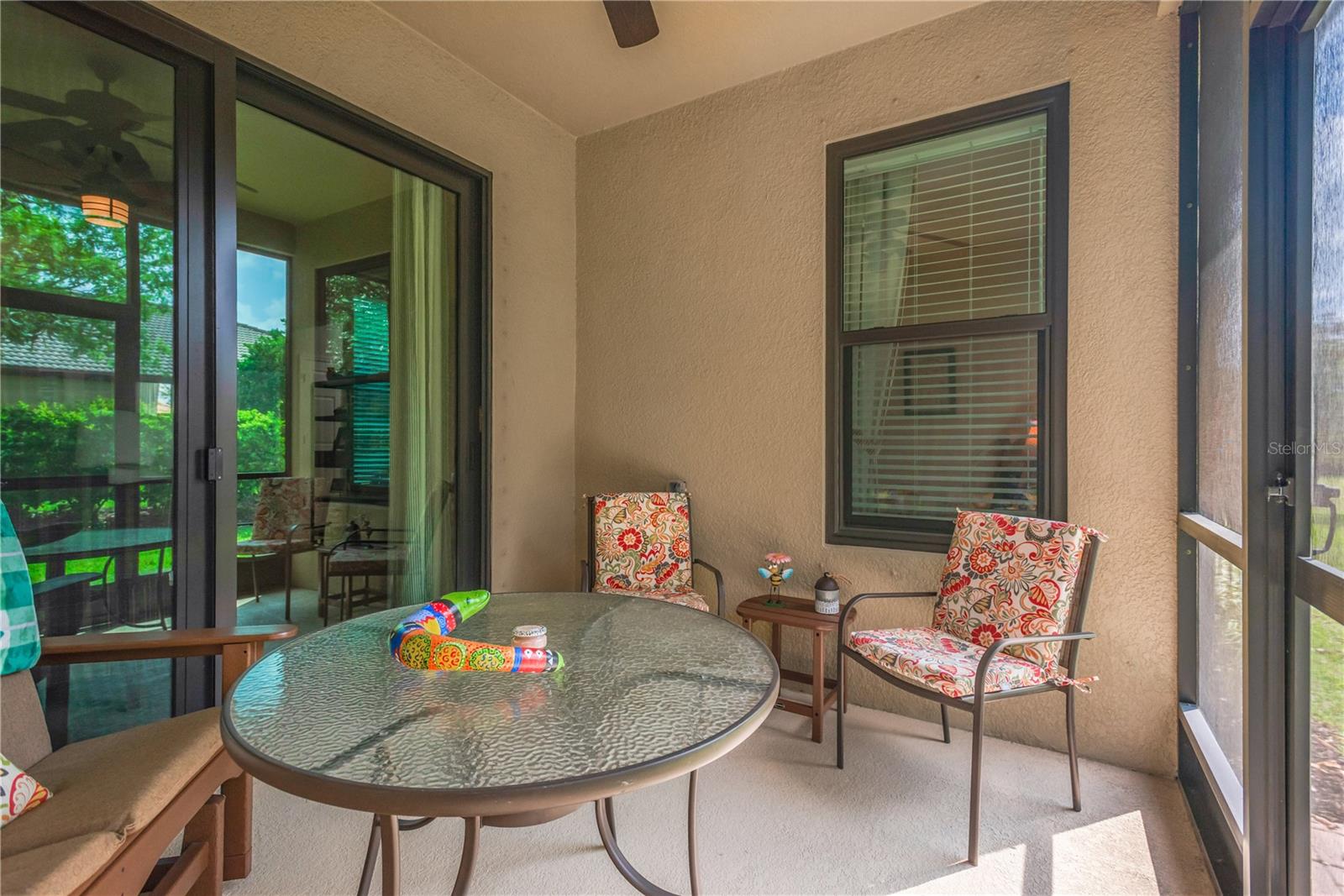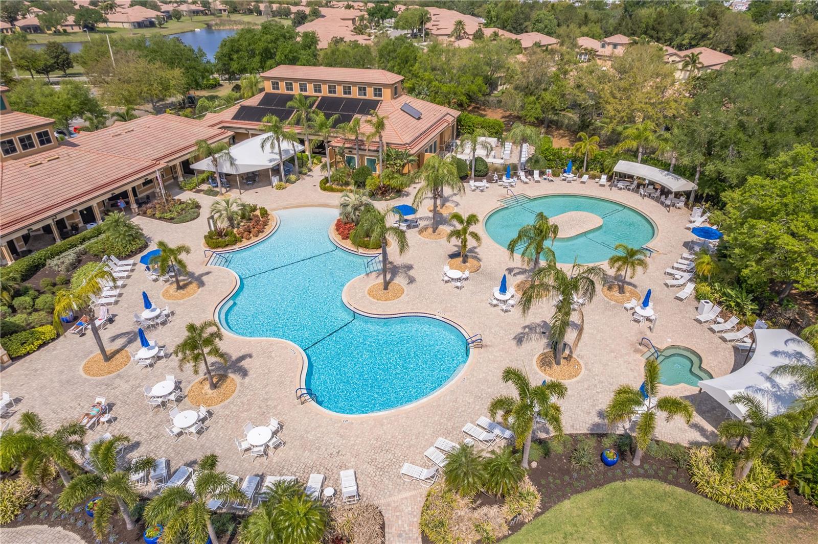 Welcome to the VILLA you NEED TO SEE in the highly sought-after Del Webb Southshore Falls 55+ guard-gated community! Newly installed HURRICANE RATED IMPACT WINDOWS & SLIDER give you peace-of-mind. MODEL PERFECT, meticulously maintained, and lightly lived in only a few months each year by Snowbirds. This “Seagrove” villa is being offered completely TURN-KEY FURNISHED—everything is included! From bedroom sets and living room furniture to TVs, artwork, décor, and even kitchenware—just bring your clothes and start living the Florida lifestyle. Or, if you prefer, the Villa can become yours Unfurnished. Offering 2 bedrooms, 2 bathrooms, plus a versatile flex room (currently set up as a 3rd bedroom), this home features a desirable split floor plan that provides both comfort and privacy for you and your guests. As you step into the welcoming foyer, you’ll immediately feel at home. The open-concept layout leads to an expansive great room and flows seamlessly into the beautifully upgraded kitchen, complete with: Solid wood cabinetry with new pull-out drawers and soft-close doors, Granite countertops, New Appliances (refrigerator, stove, dishwasher, and garbage disposal), New faucet and New Solartube skylight for abundant natural light. Breakfast bar, pantry, and dining area add to this beautiful gourmet kitchen. The primary suite is spacious and inviting, featuring a large walk-in closet and an en-suite bath with granite countertops, dual sinks, a tiled step-in shower, New Seamless Glass Shower Door, updated faucets, and new toilet. The secondary bathroom has also been fully upgraded with matching enhancements. Additional interior highlights include: New carpet and ceiling fans in all bedrooms and den, Neutral painted walls and woodwork throughout, Inside laundry room with new washer, dryer, and added storage cabinets. Step outside to your private screened lanai, a peaceful retreat surrounded by lush landscaping—perfect for morning coffee or evening relaxation. The lanai includes a glider, table, and chairs for your enjoyment. The Front Porch is screened and tiled creating another room for your enjoyment. This home is loaded with valuable upgrades for comfort and peace of mind: New hot water tank, Whole-home water purifier, & Insulated garage door. You'll love the Custom garage floors, stadium-style lighting, storage shelves, table, grill, and ceiling fan to hang out or entertain as these sellers did often. Sun City is nice, but a Large Community. Same with The Villages. If you are looking for a smaller community, consider this one. Located in a 24-hour guard-gated, resort-style community, residents enjoy an unmatched lifestyle with: Lagoon-style heated pool, resistance pool, and spa, State-of-the-art fitness center and water aerobics, Pickleball, tennis, bocce, and golf putting greens, Walking and biking trails, Clubhouse with arts & crafts, billiards, library, card clubs, and internet café, Endless social events, clubs, and entertainment. All of this with low HOA fees and NO CDD, and just a short drive to world-renowned sugar sand beaches, golf courses, boating, Tampa Bay attractions, airports, and top medical facilities. Move-in ready, fully furnished, and absolutely stunning—this is Florida living at its finest. Come experience Del Webb Southshore Falls… and start to Live, Laugh, and Love Life!